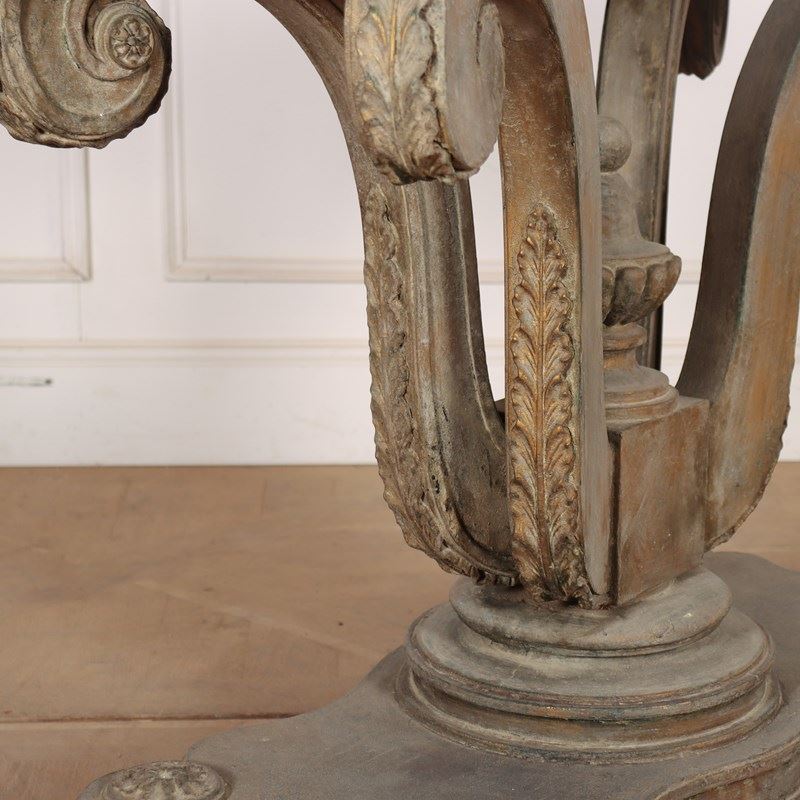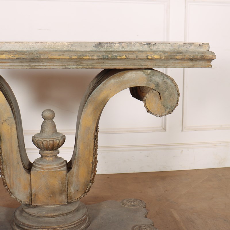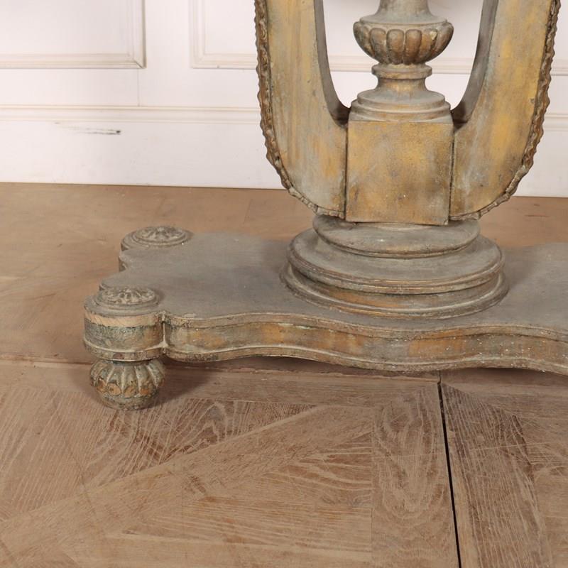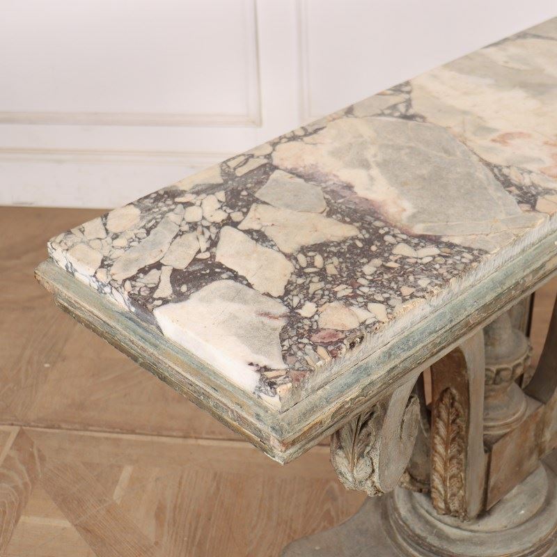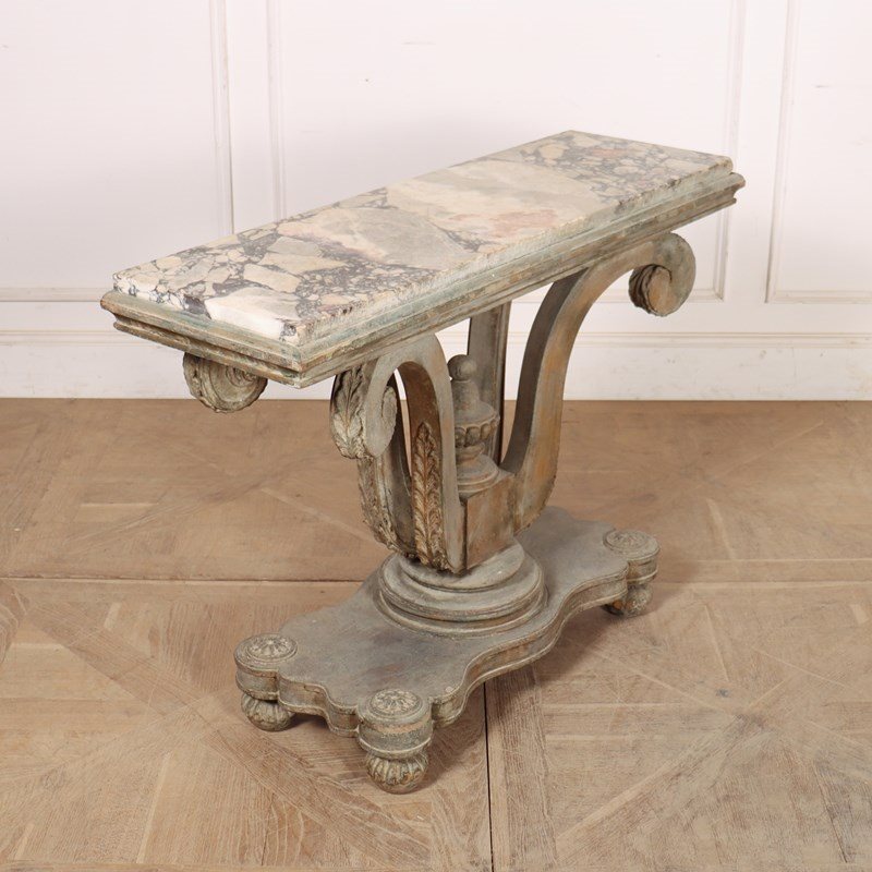 Wonderful early 19th century English carved wood console table with an interesting marble top. 1840.