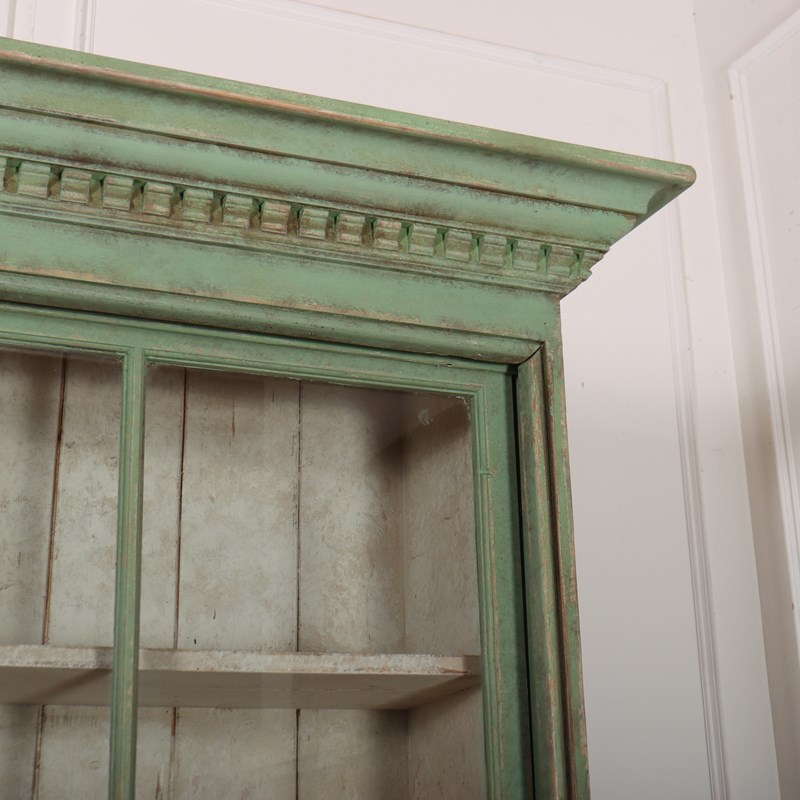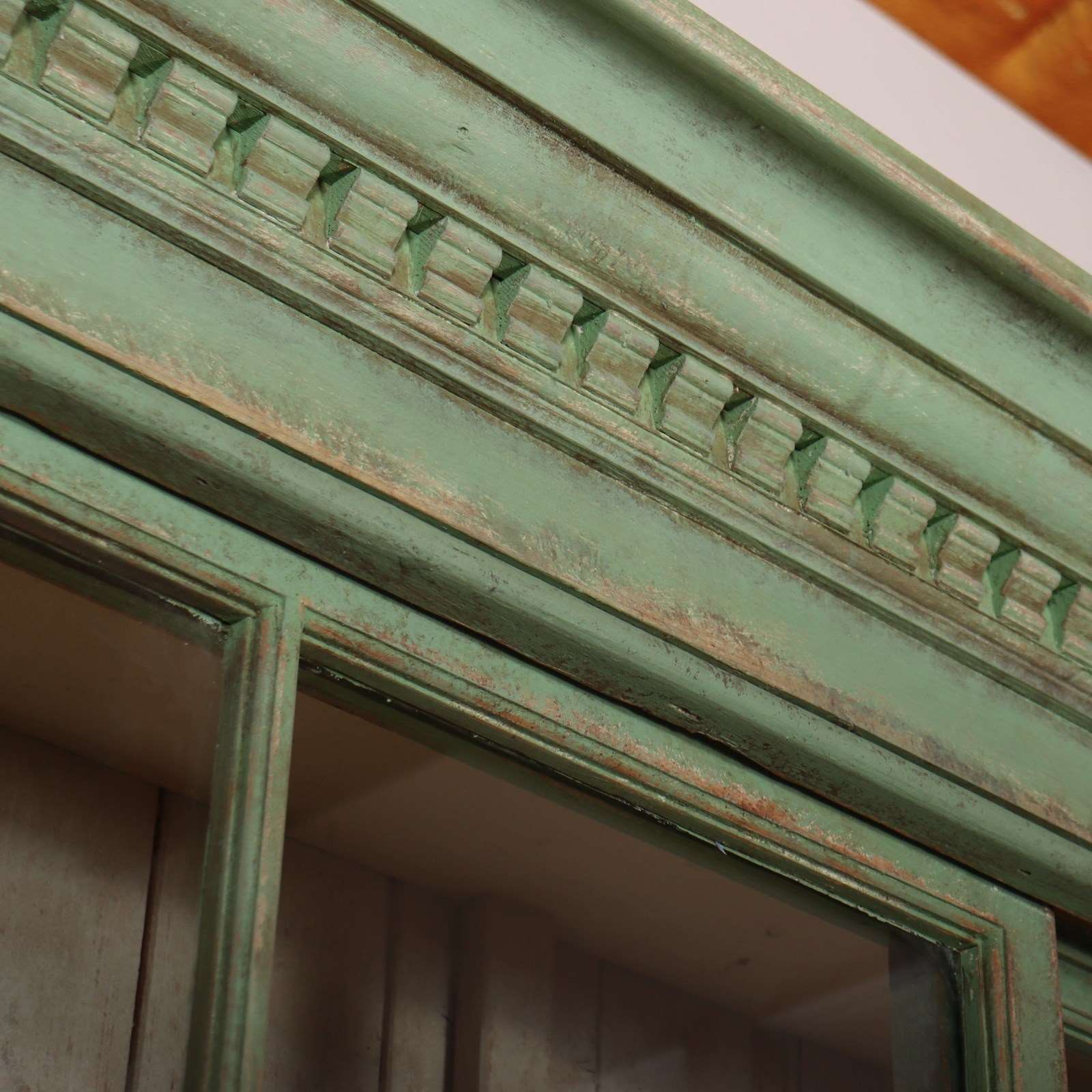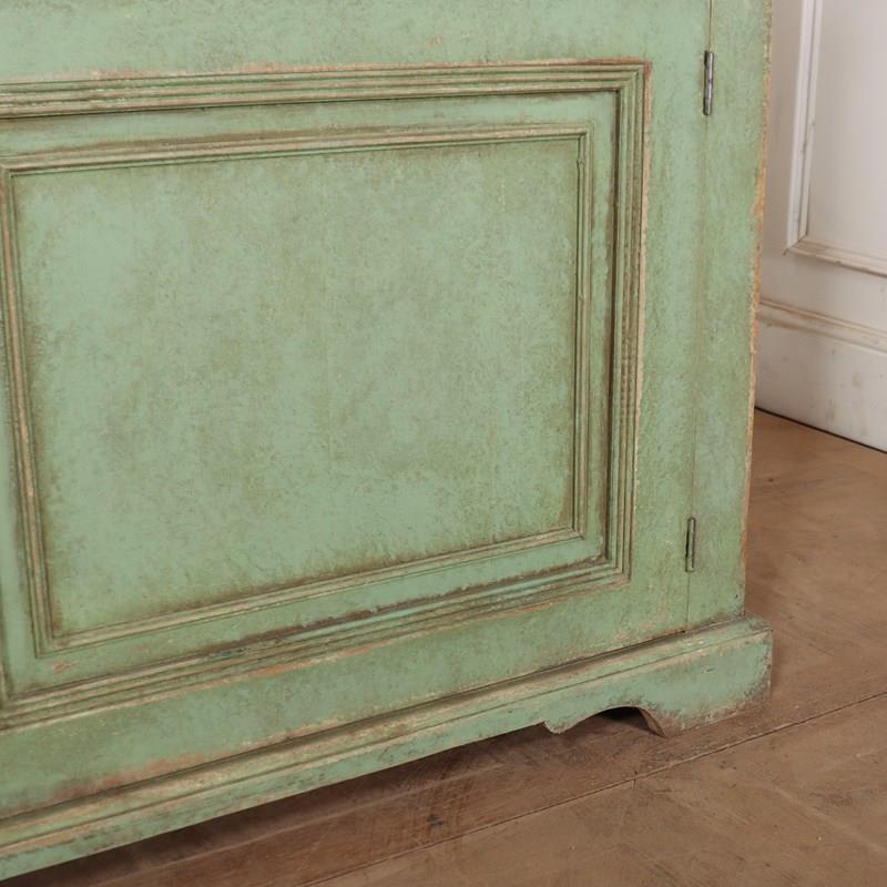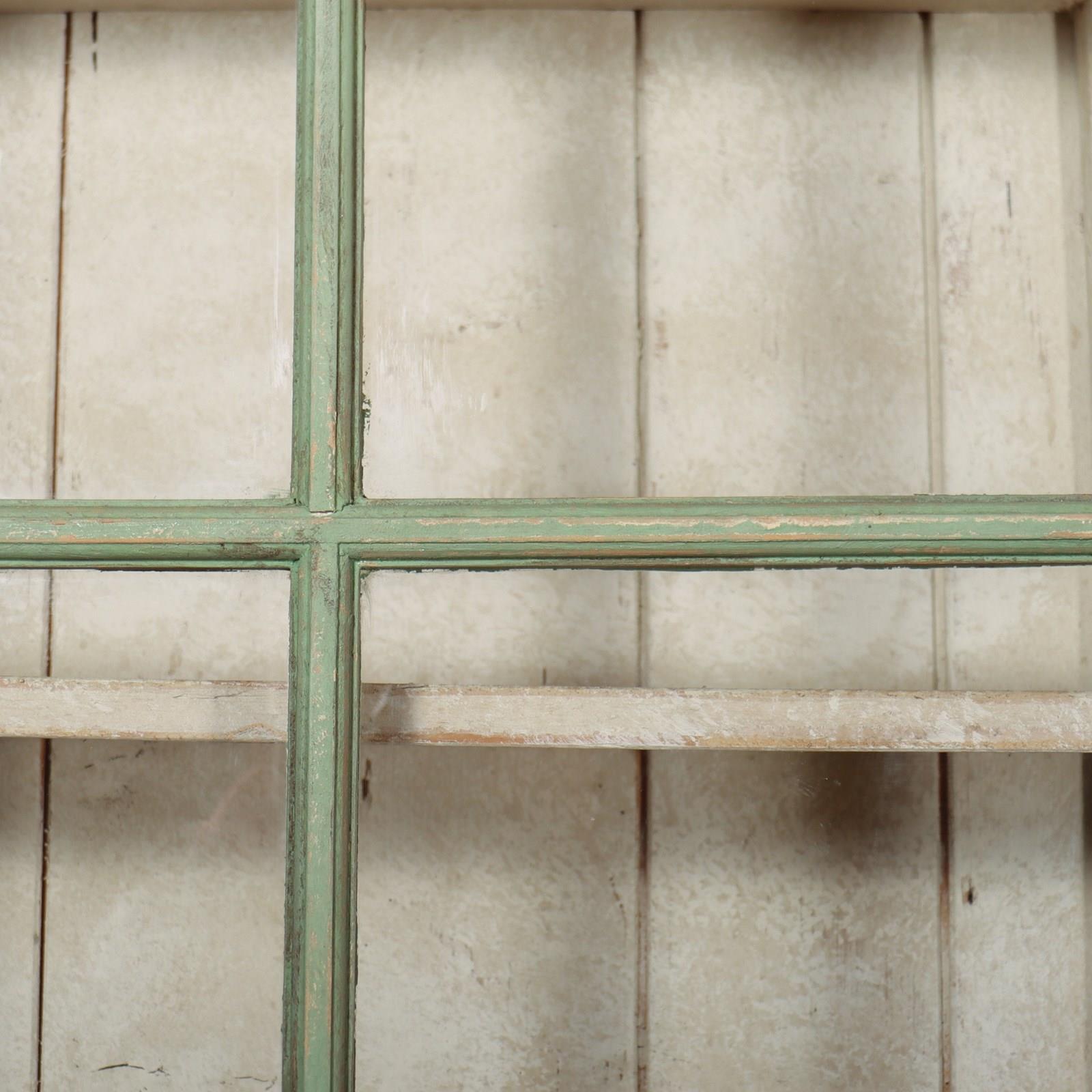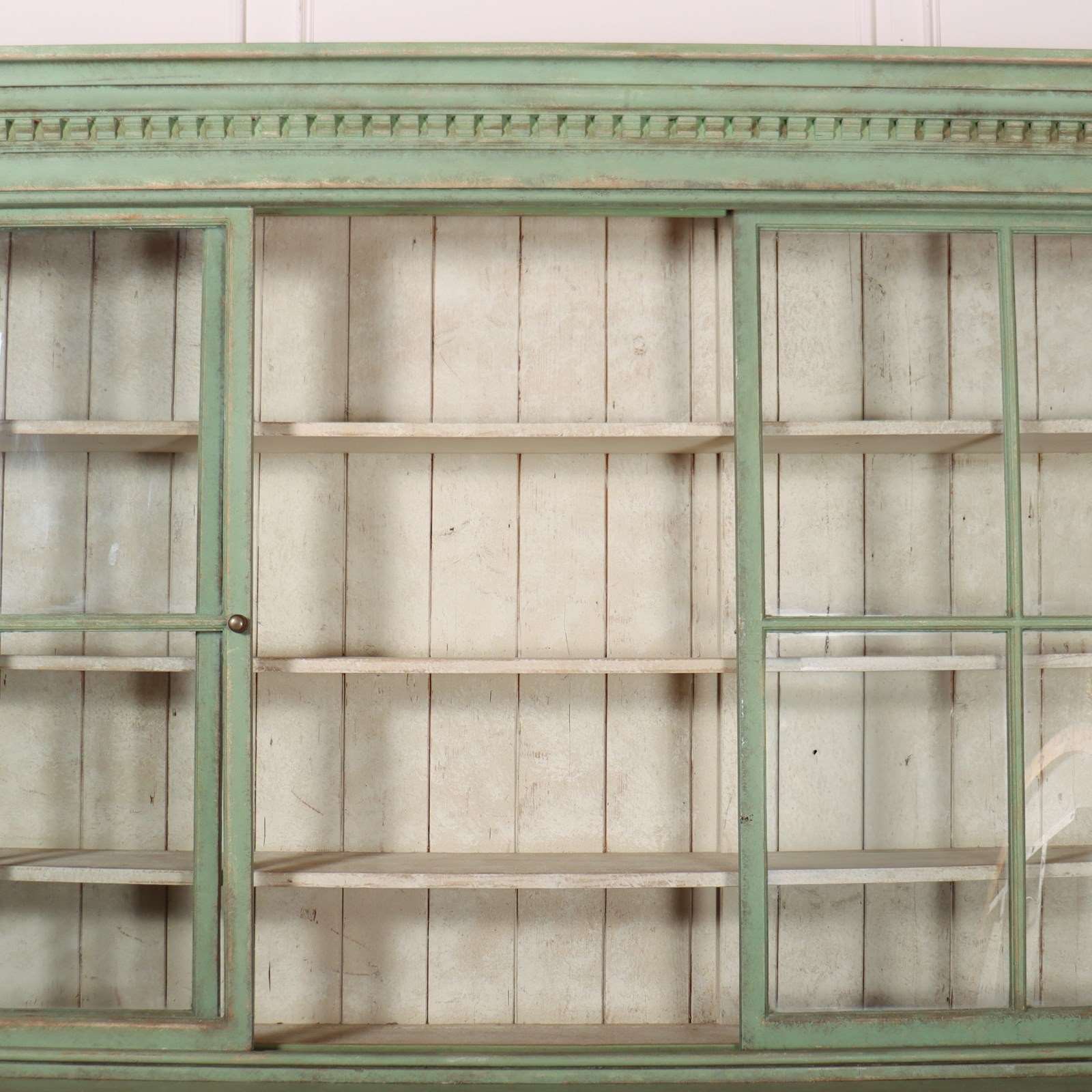 Fabulous English country house painted pine dresser with sliding glazed doors to the top. 1840.