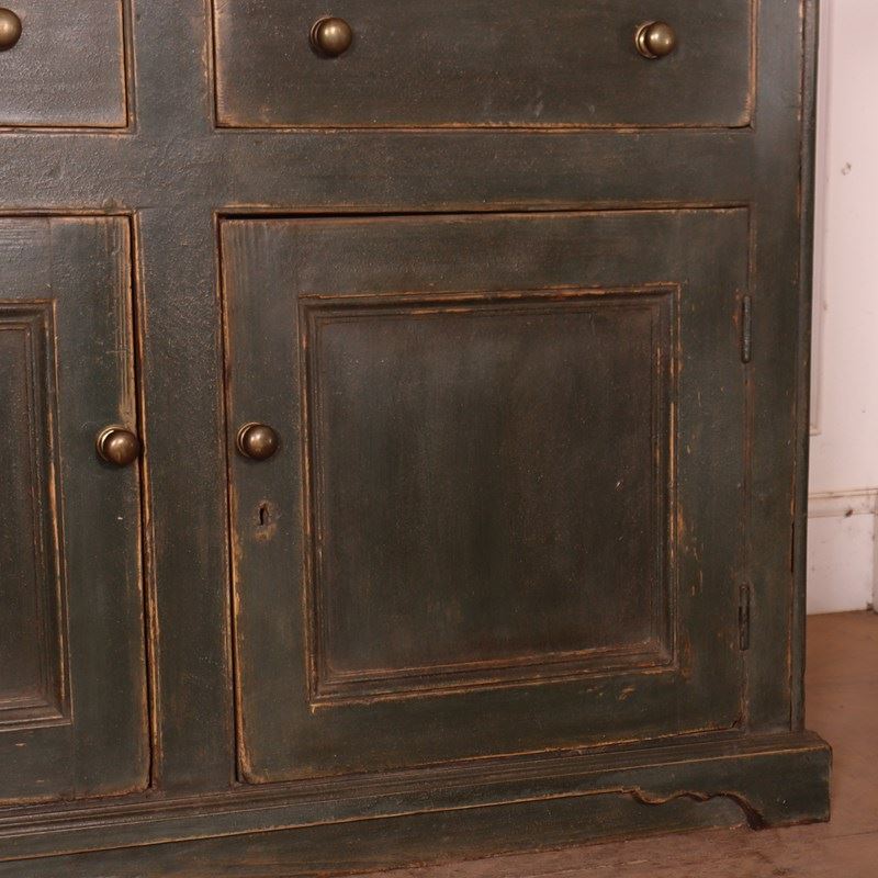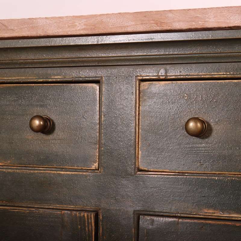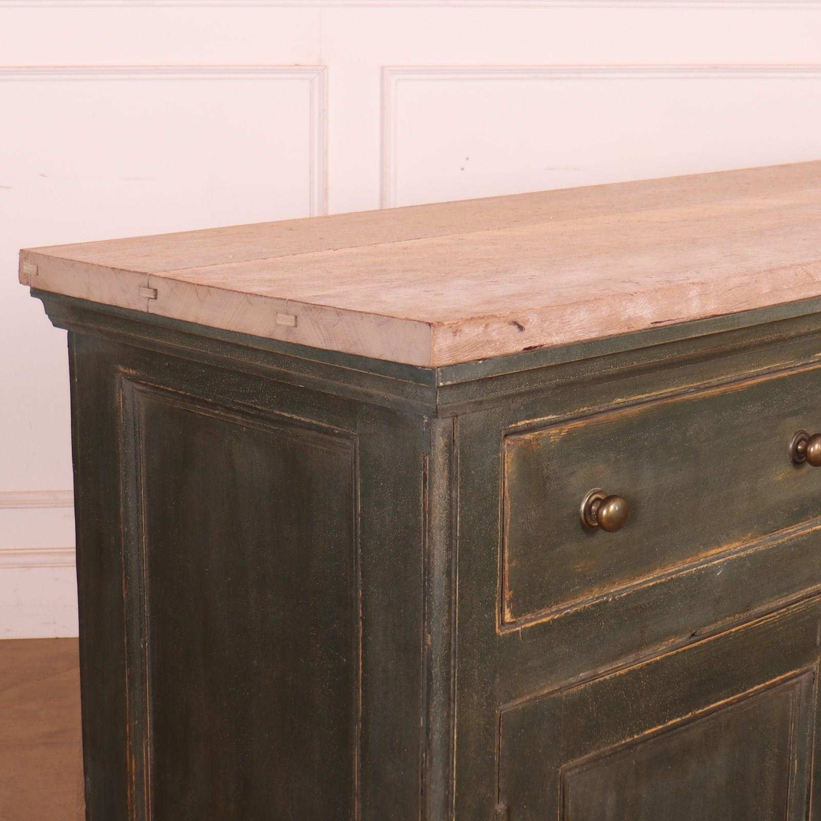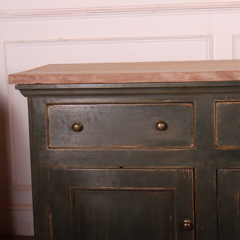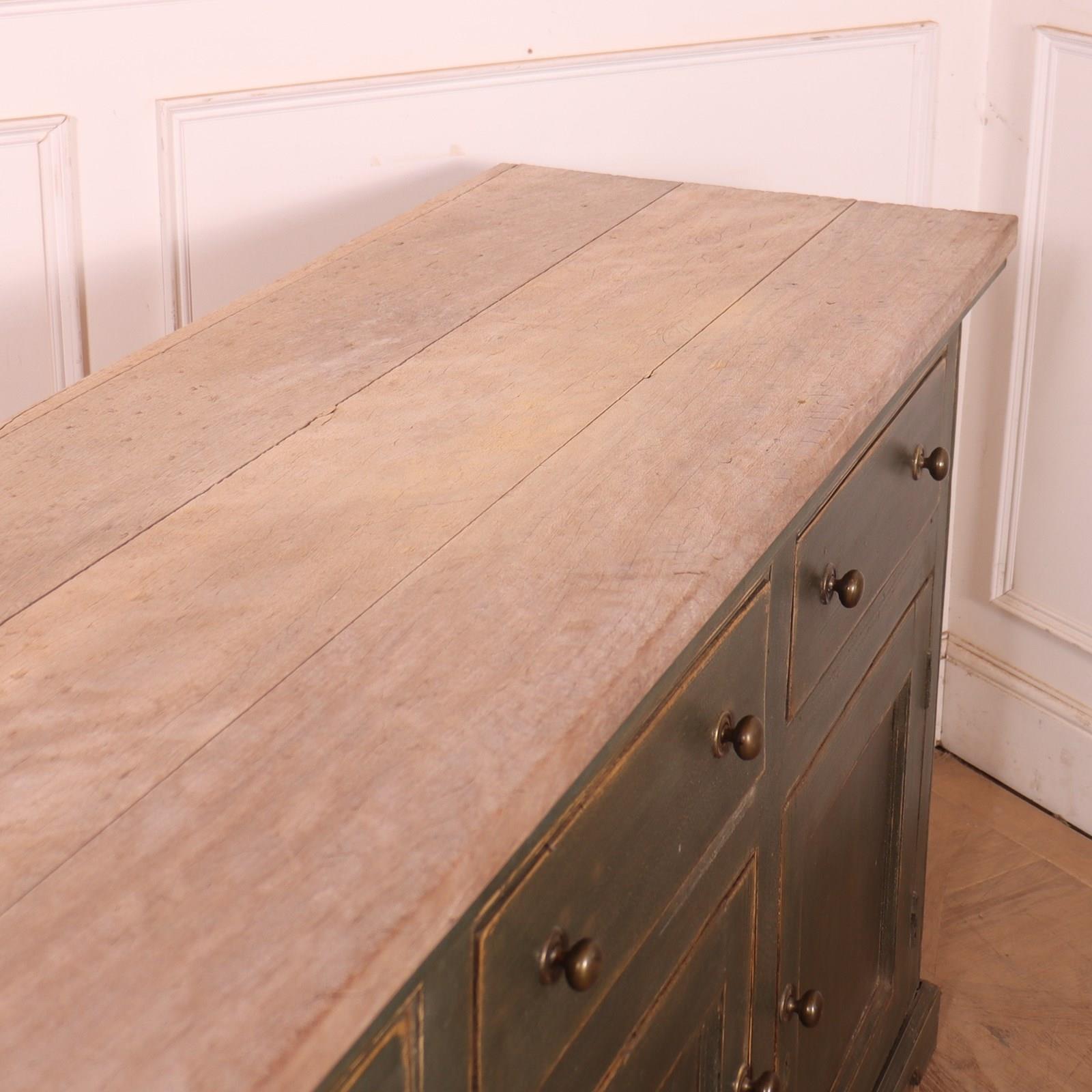 Very good early 19th C painted country house dresser base, with a thick scrubbed painted oak top. 1830