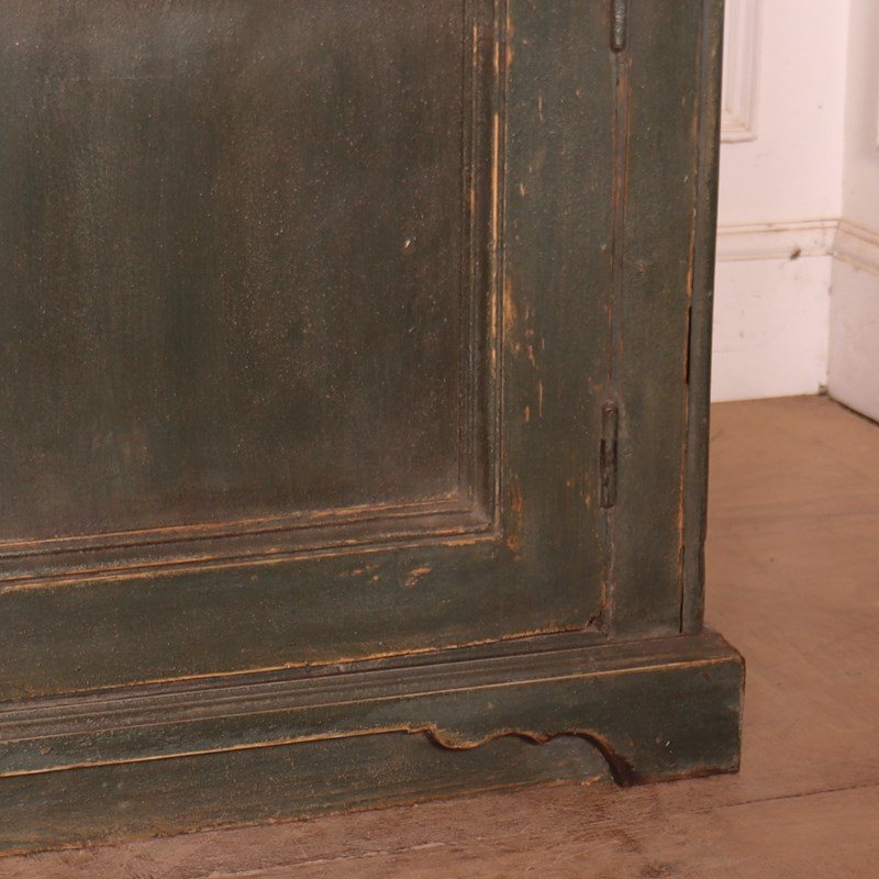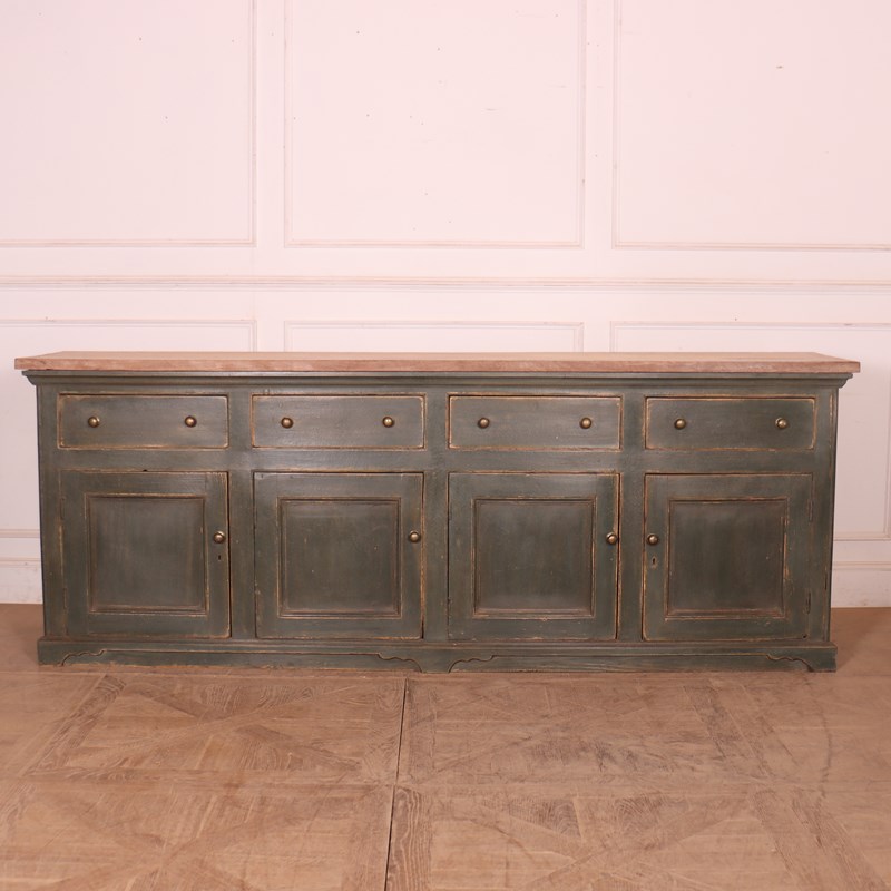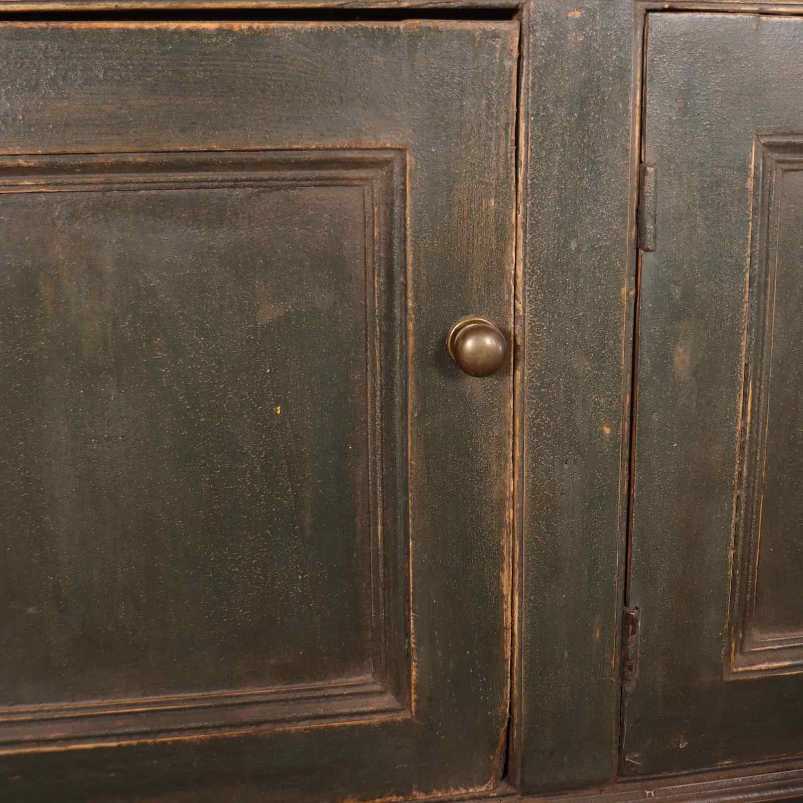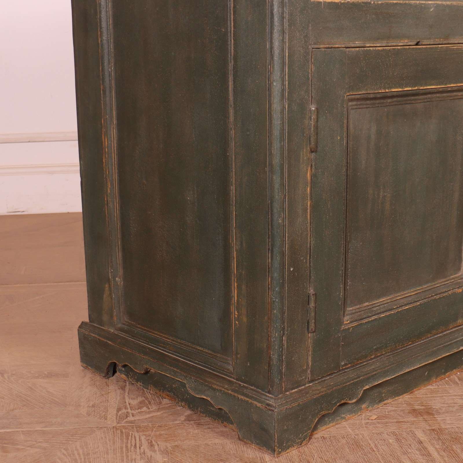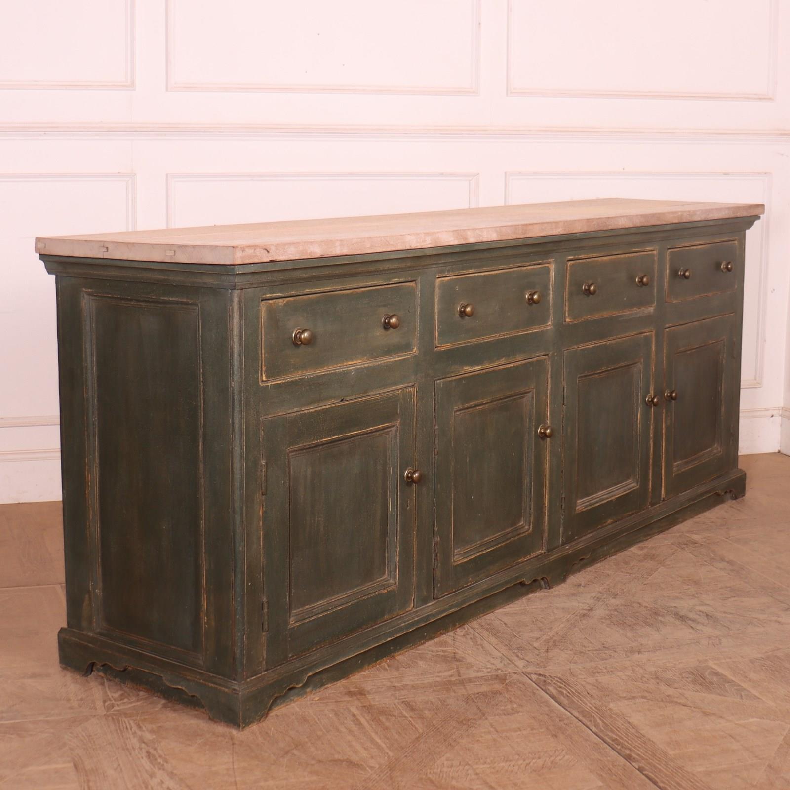 Very good early 19th C painted country house dresser base, with a thick scrubbed painted oak top. 1830