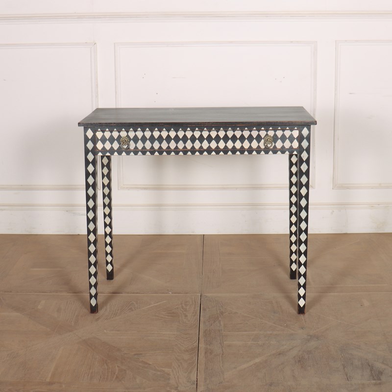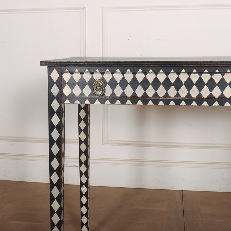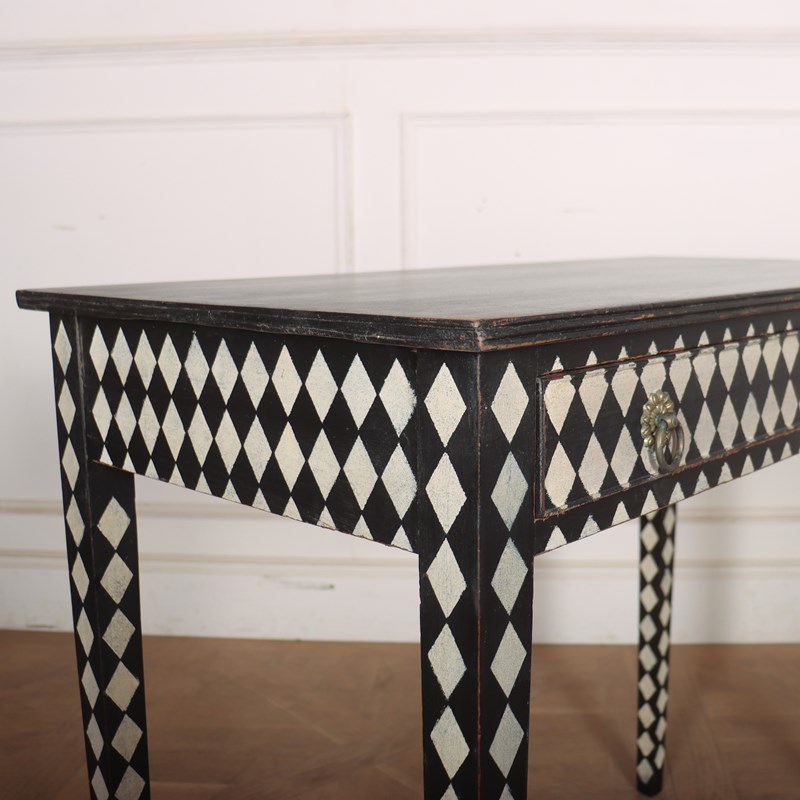 Small English one drawer painted and decorated oak lamp table/ side table. 1880.