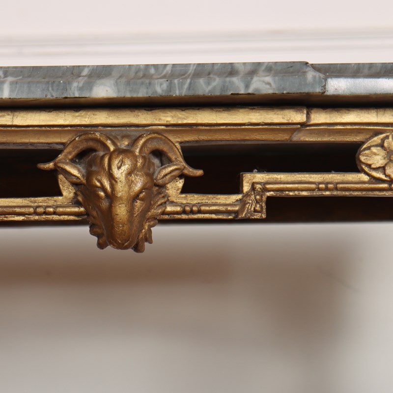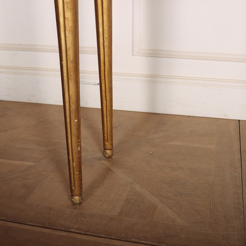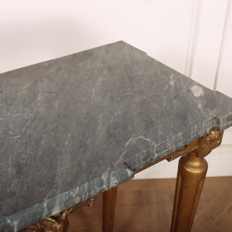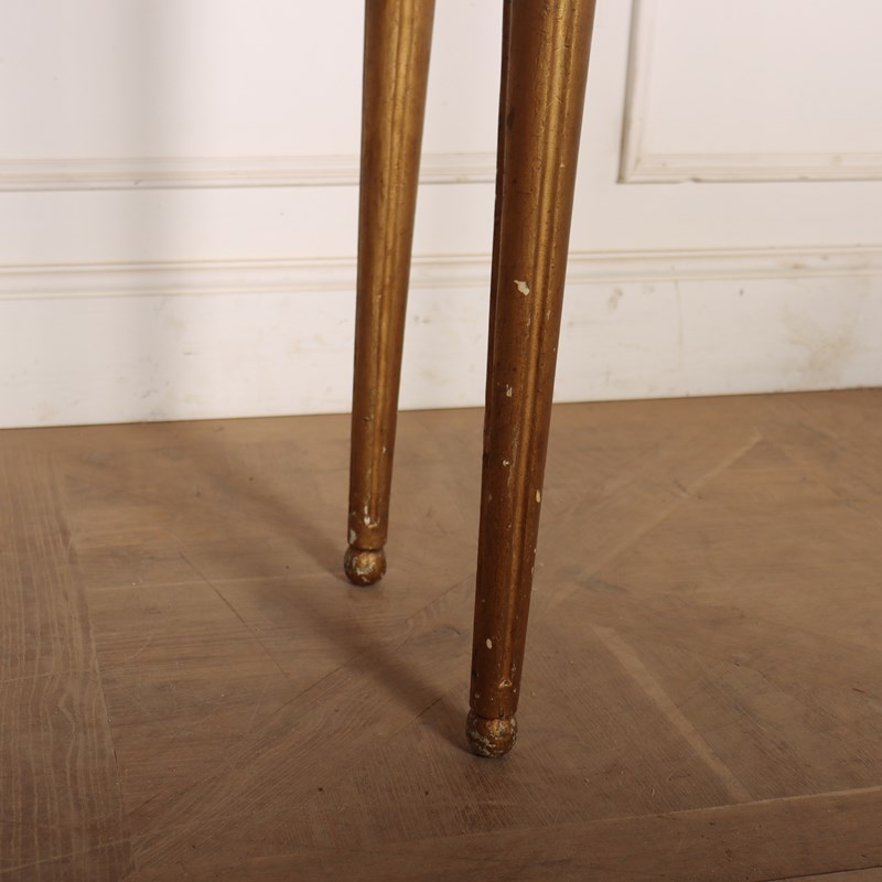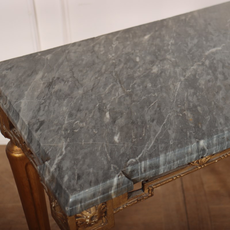 Small 19th century English guilt and marble topped pine console table. 1860.