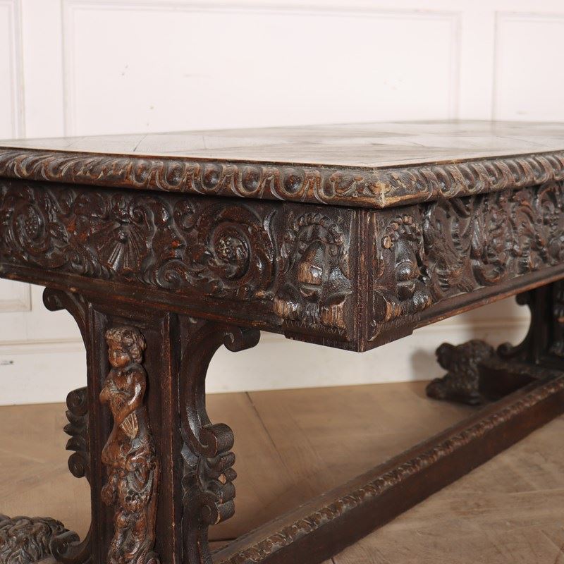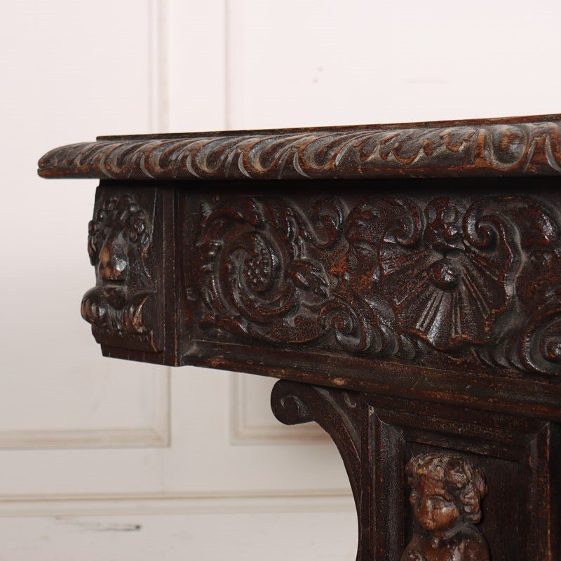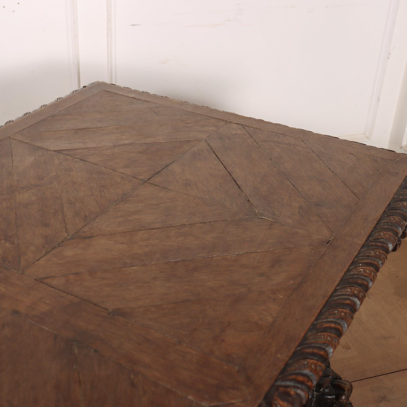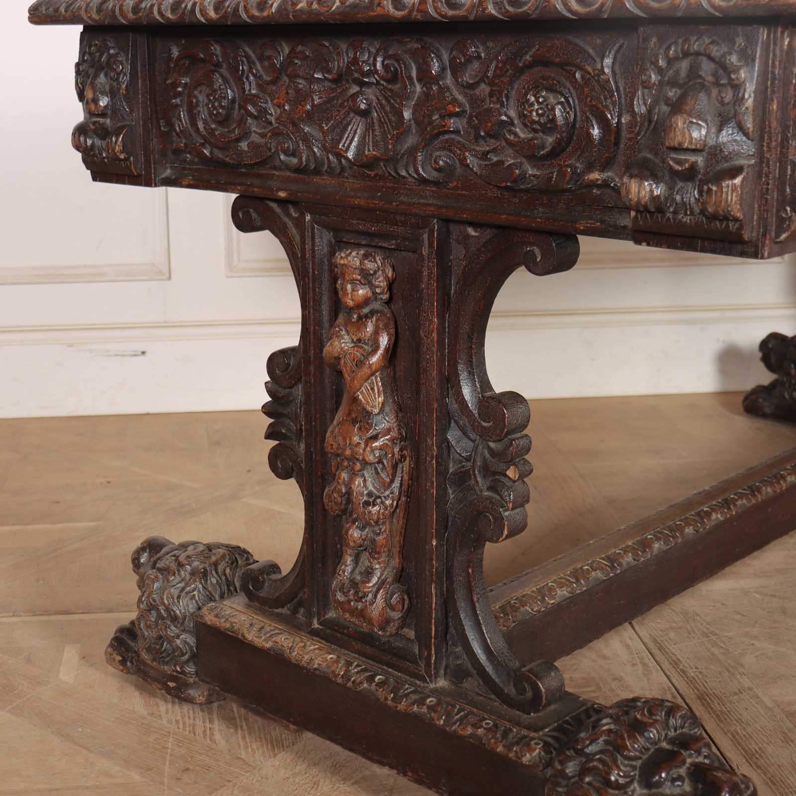 Wonderful 19th century copy of a 17th century English oak centre table with very good carvings. 1880.