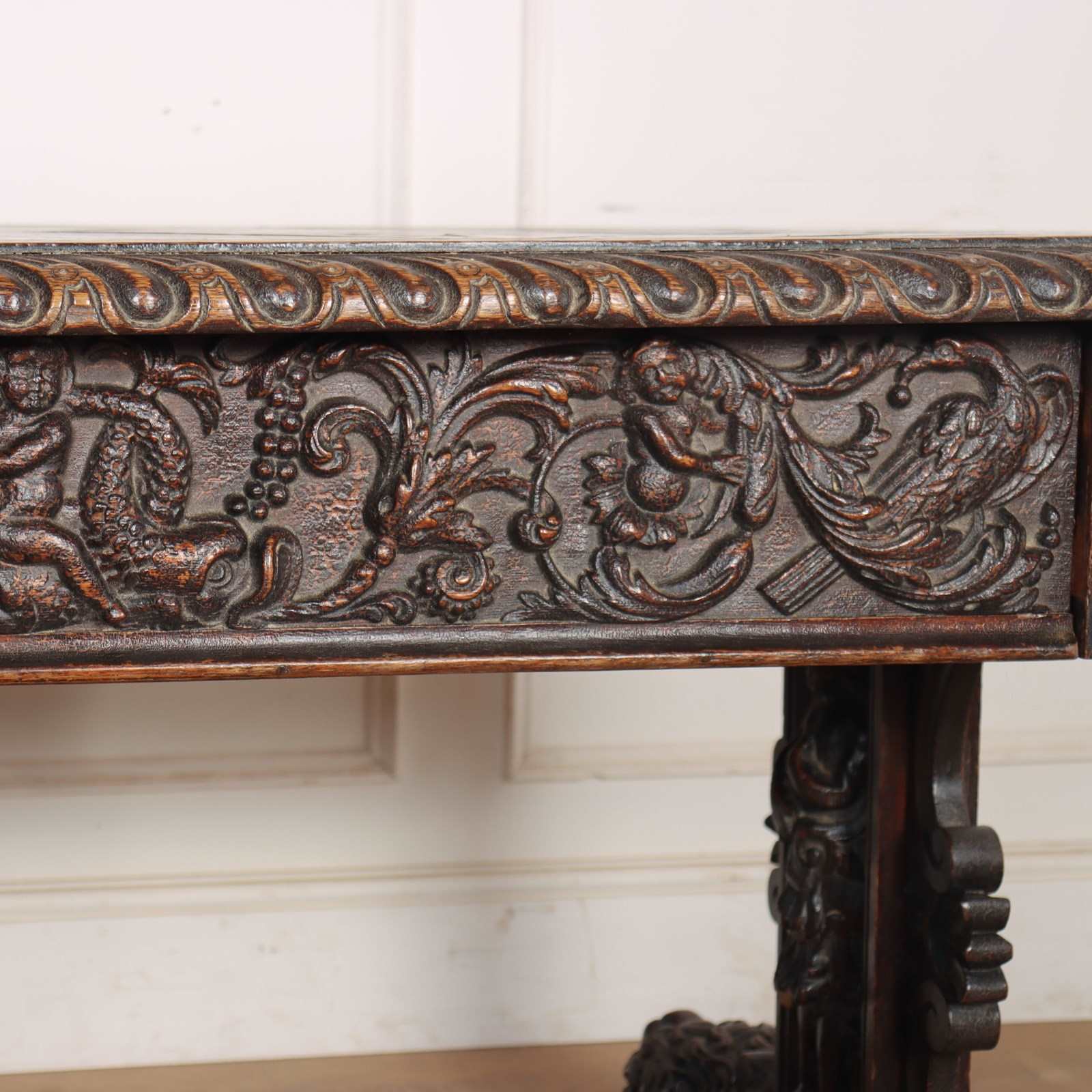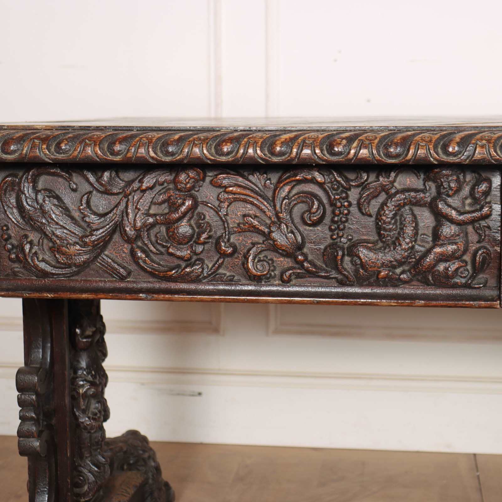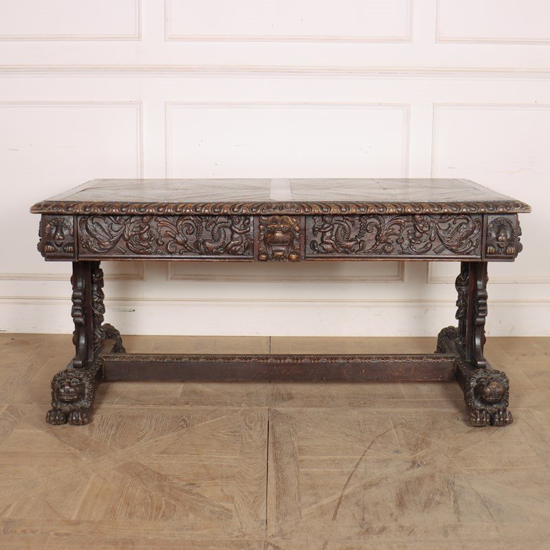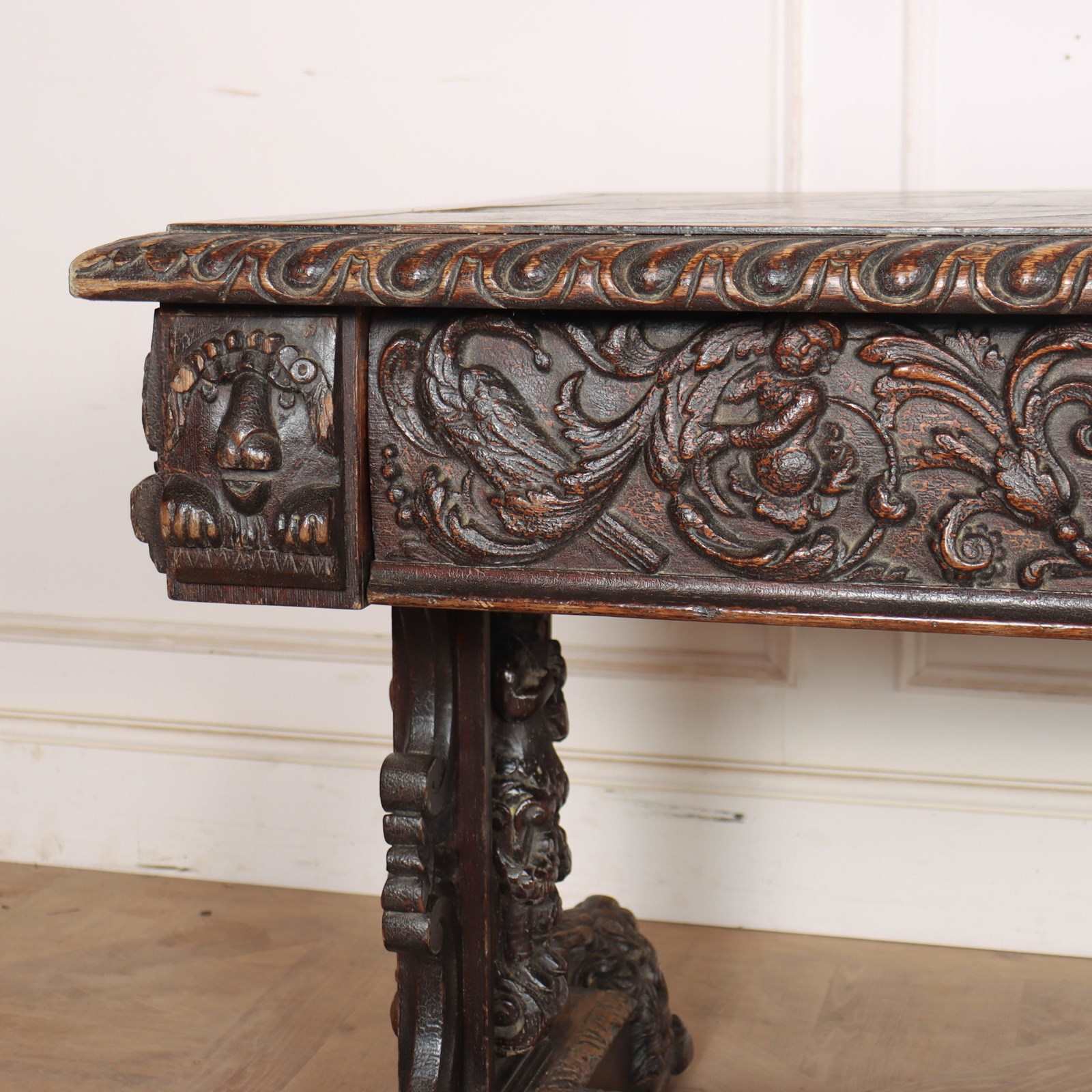 Wonderful 19th century copy of a 17th century English oak centre table with very good carvings. 1880.