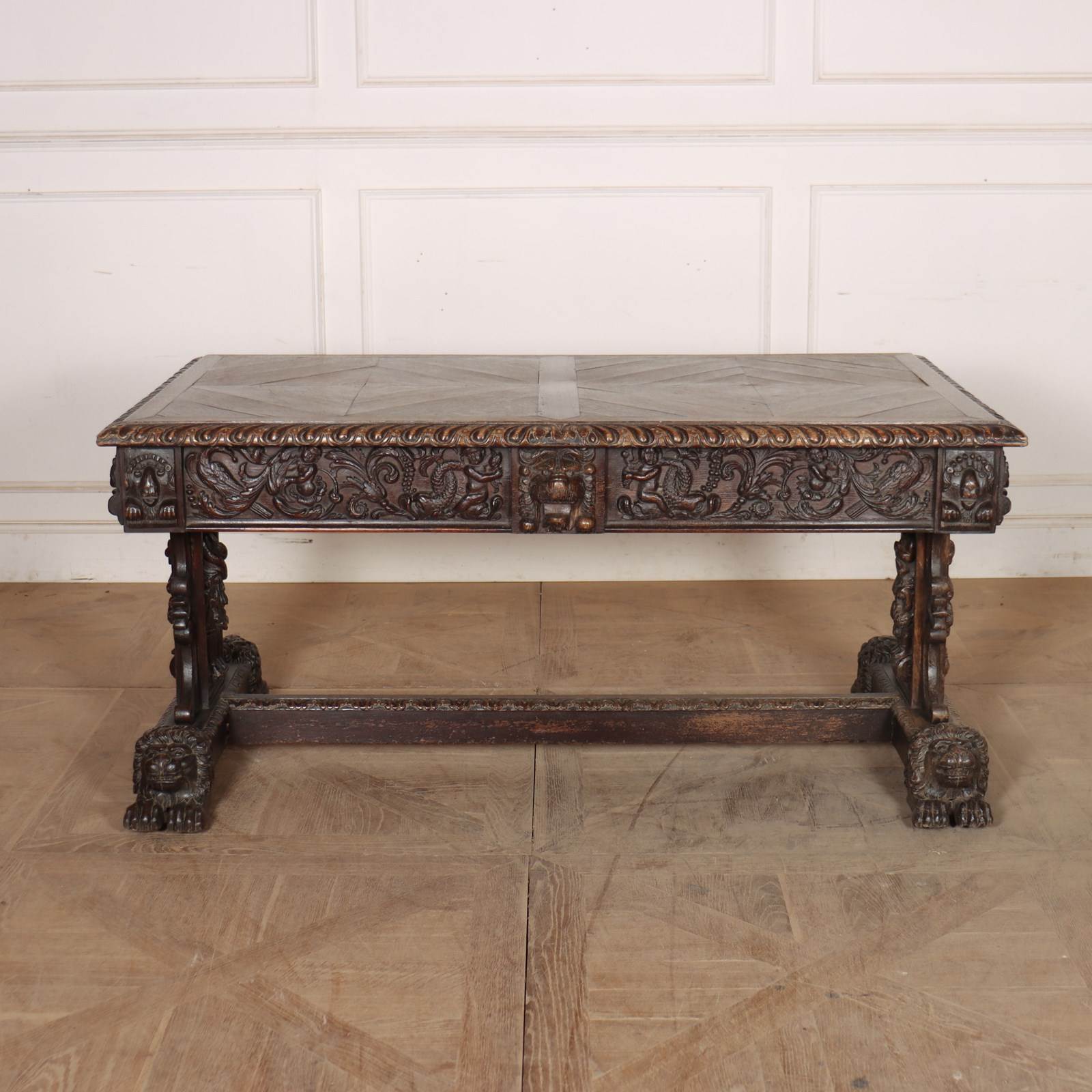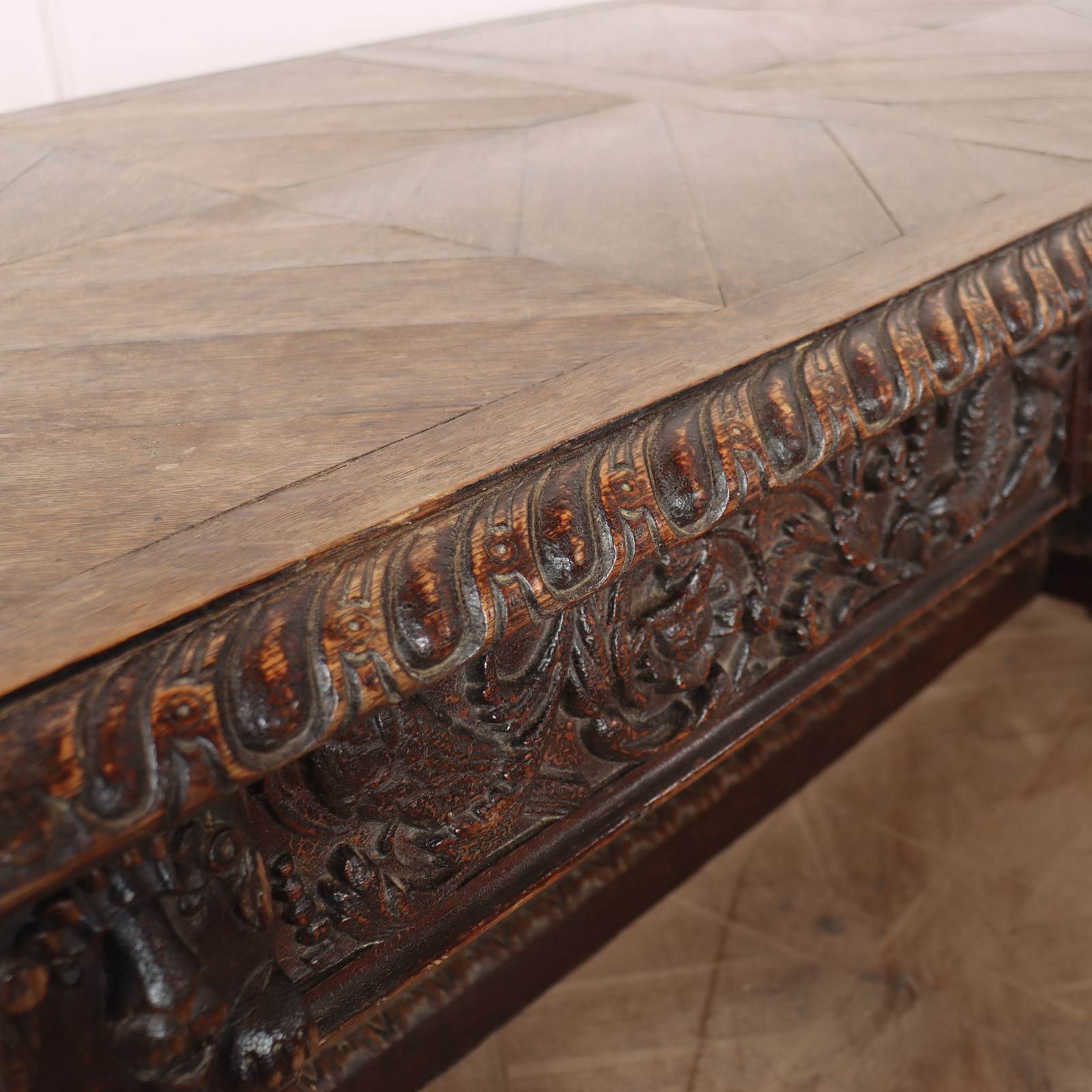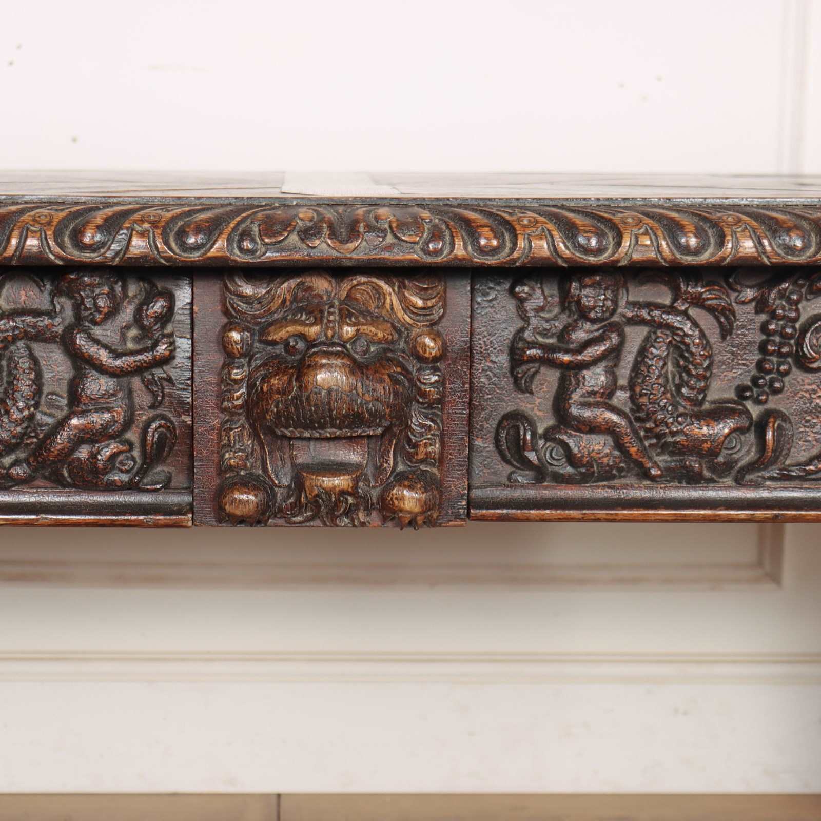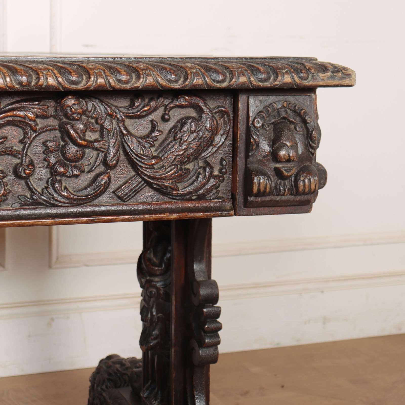 Wonderful 19th century copy of a 17th century English oak centre table with very good carvings. 1880.