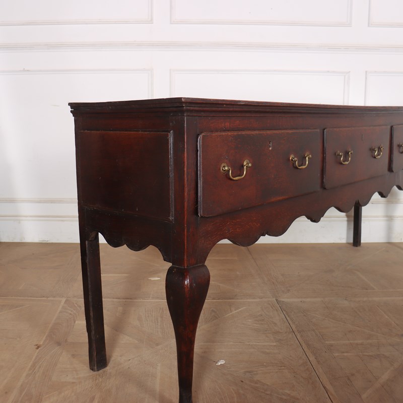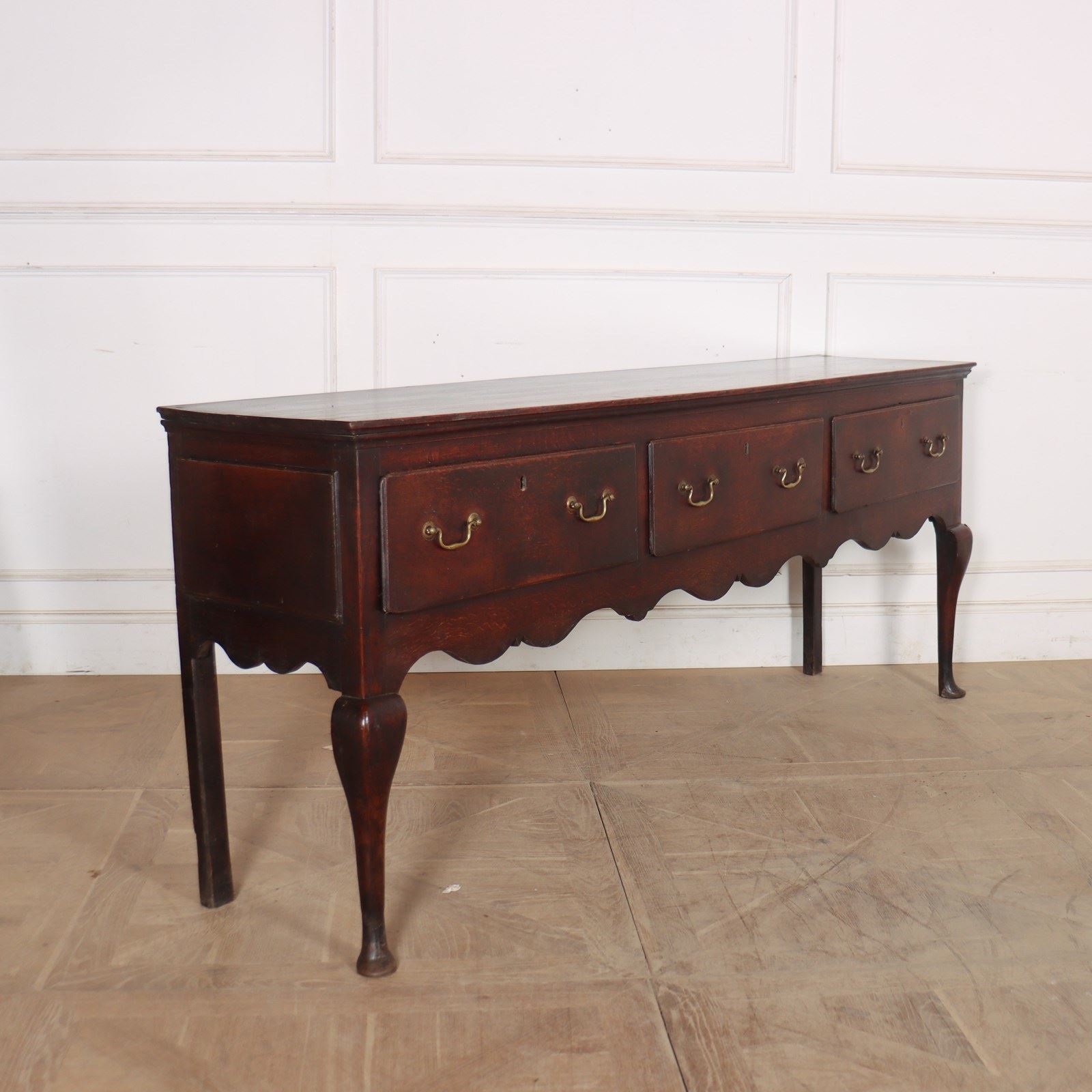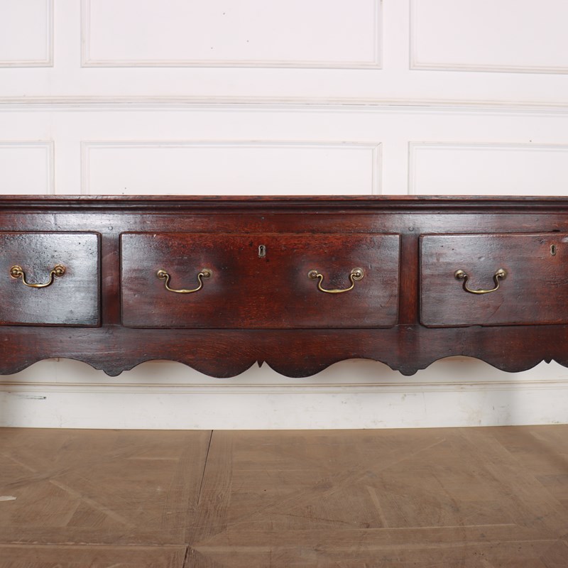Very good 18th Century English oak 3 drawer dresser base. Excellent colour. 1760