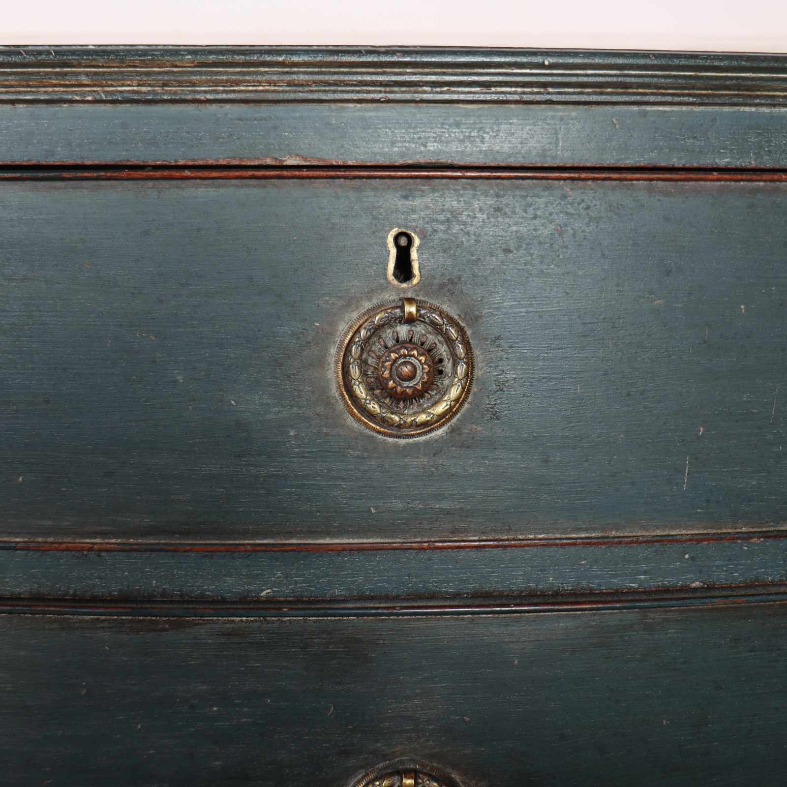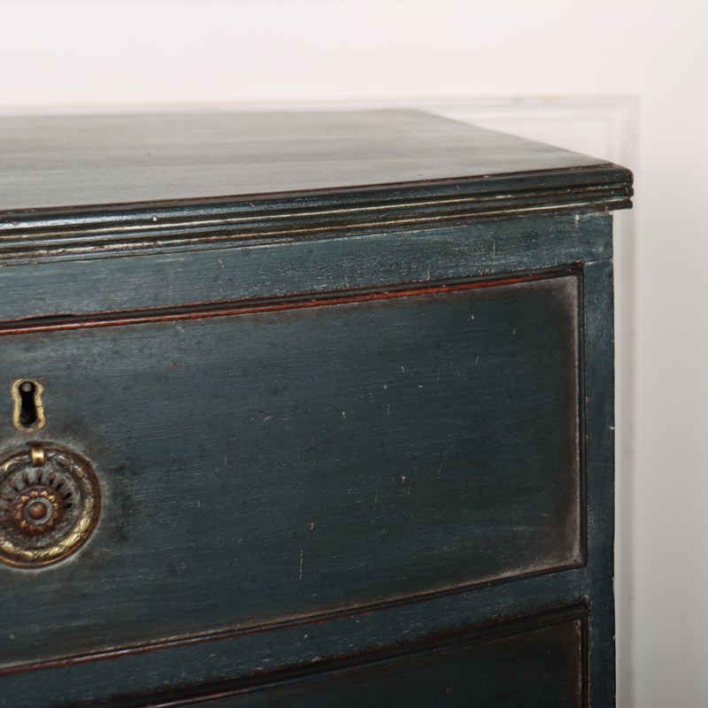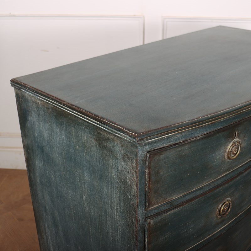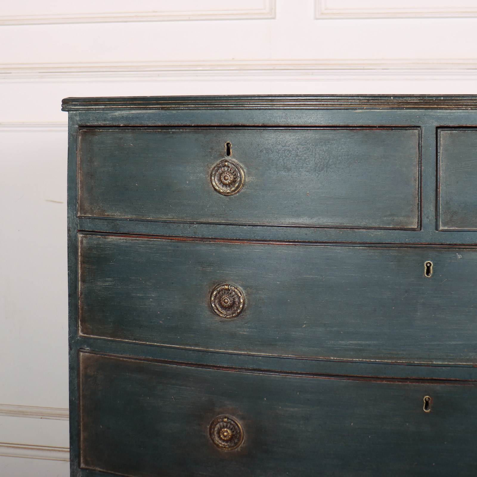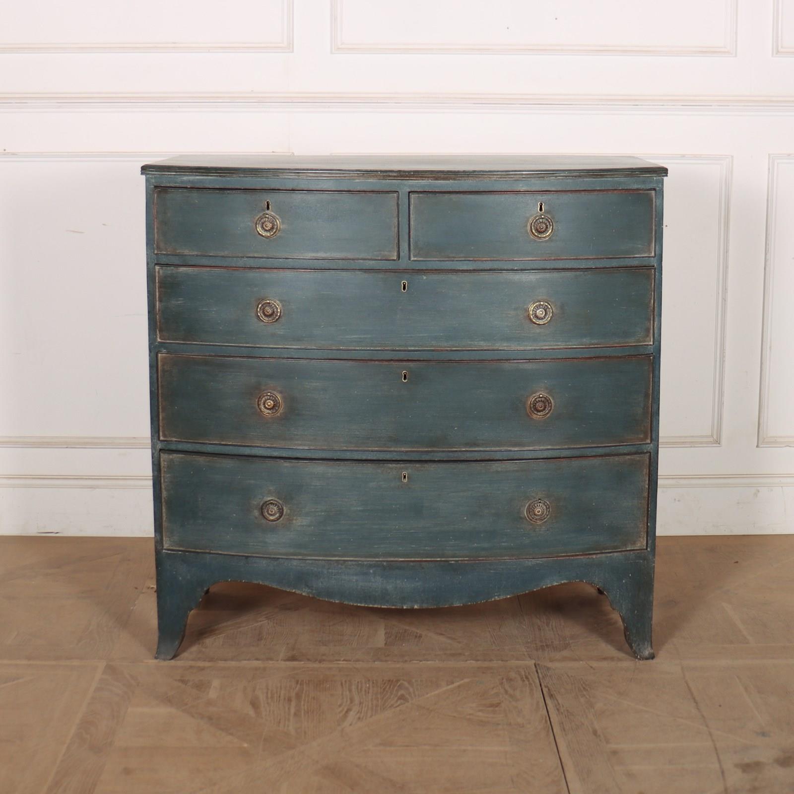 Good early 19th century English painted bow front oak chest of drawers. 1820.