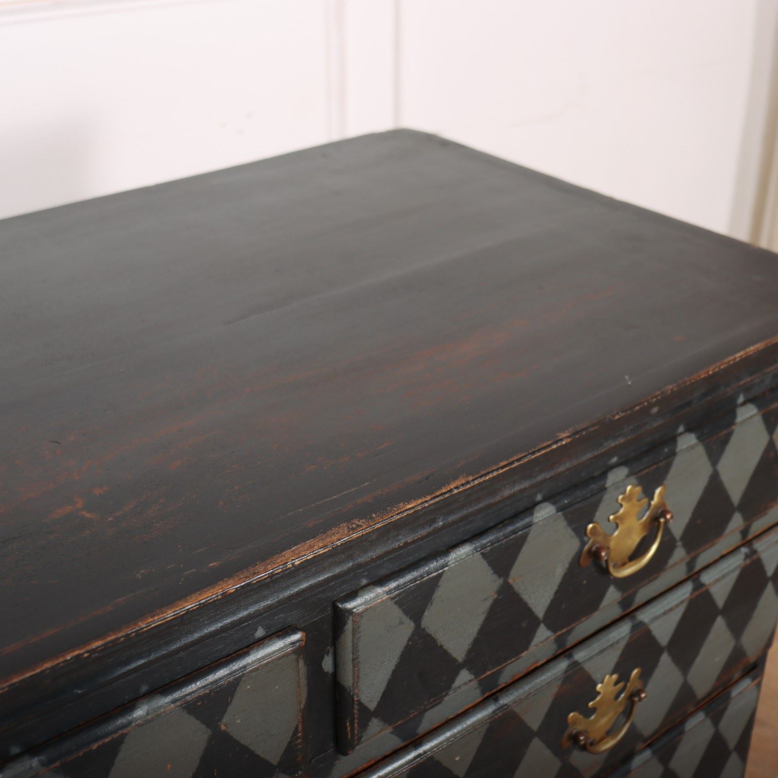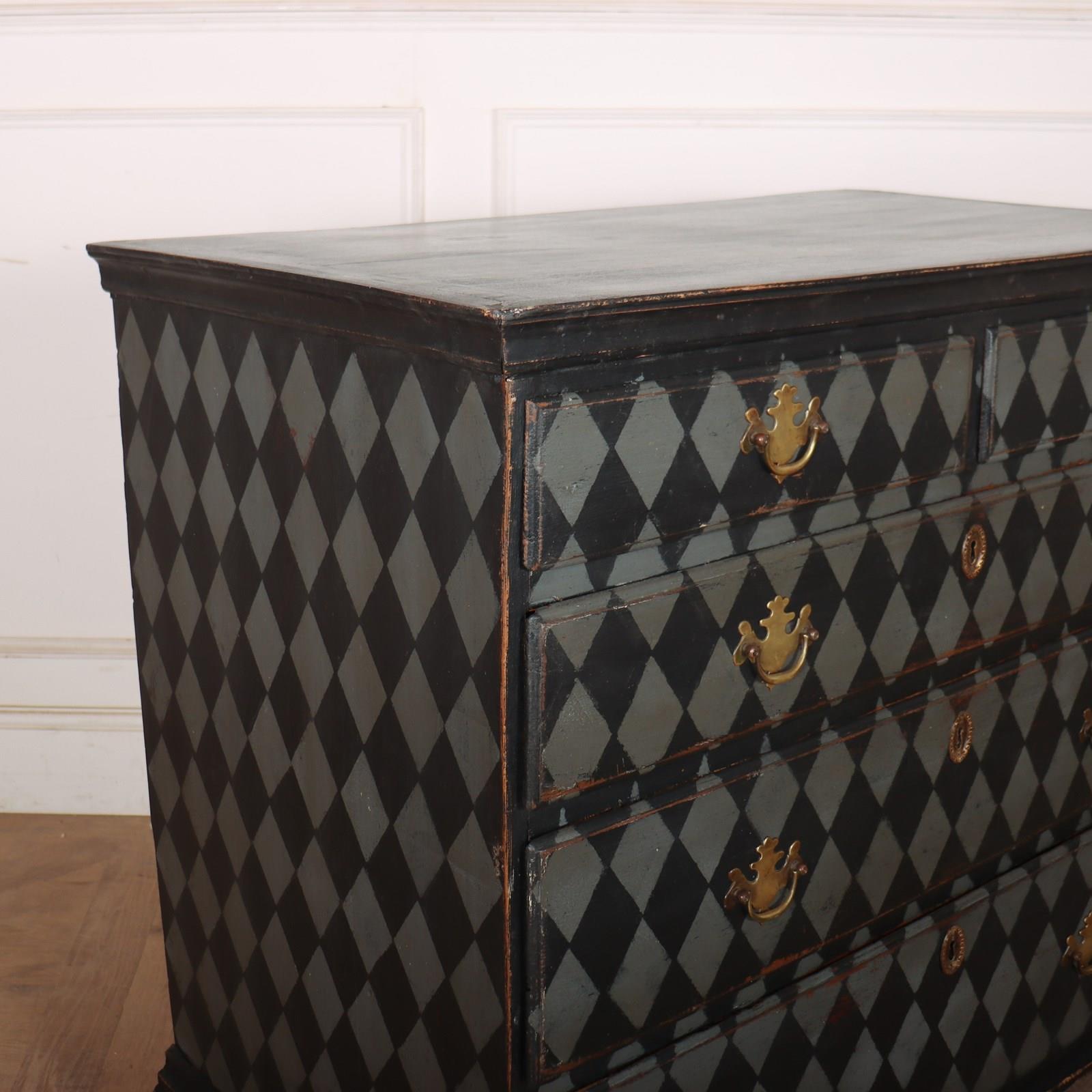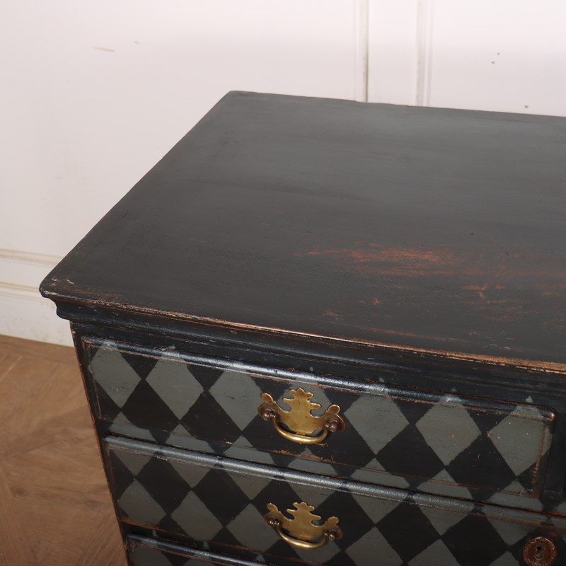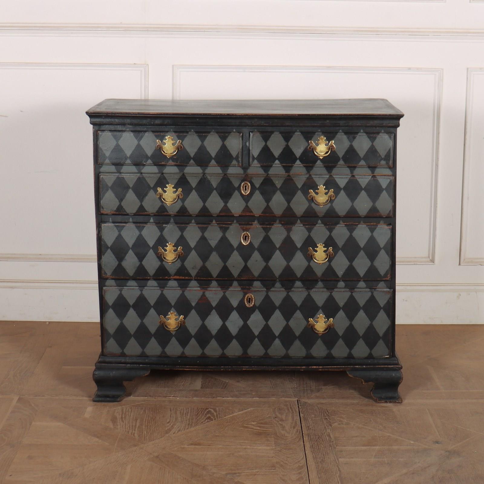 18th century English painted oak chest of drawers with a harlequin design. 1790.