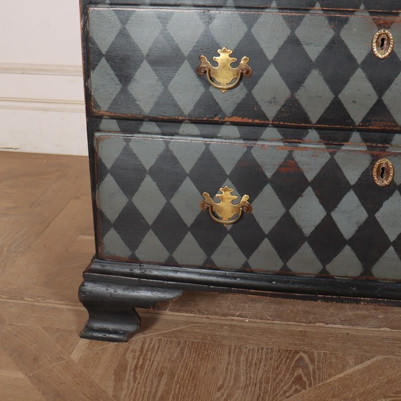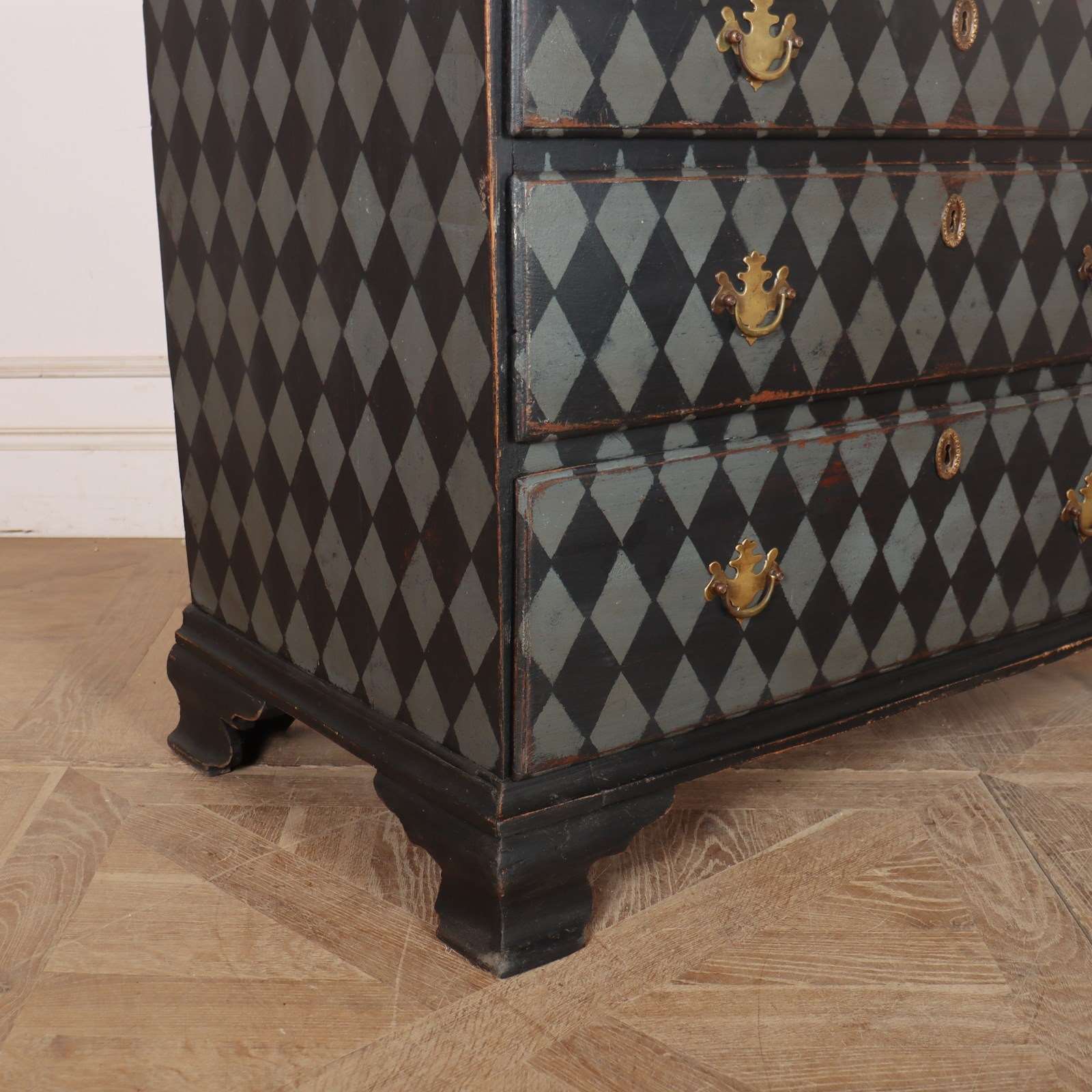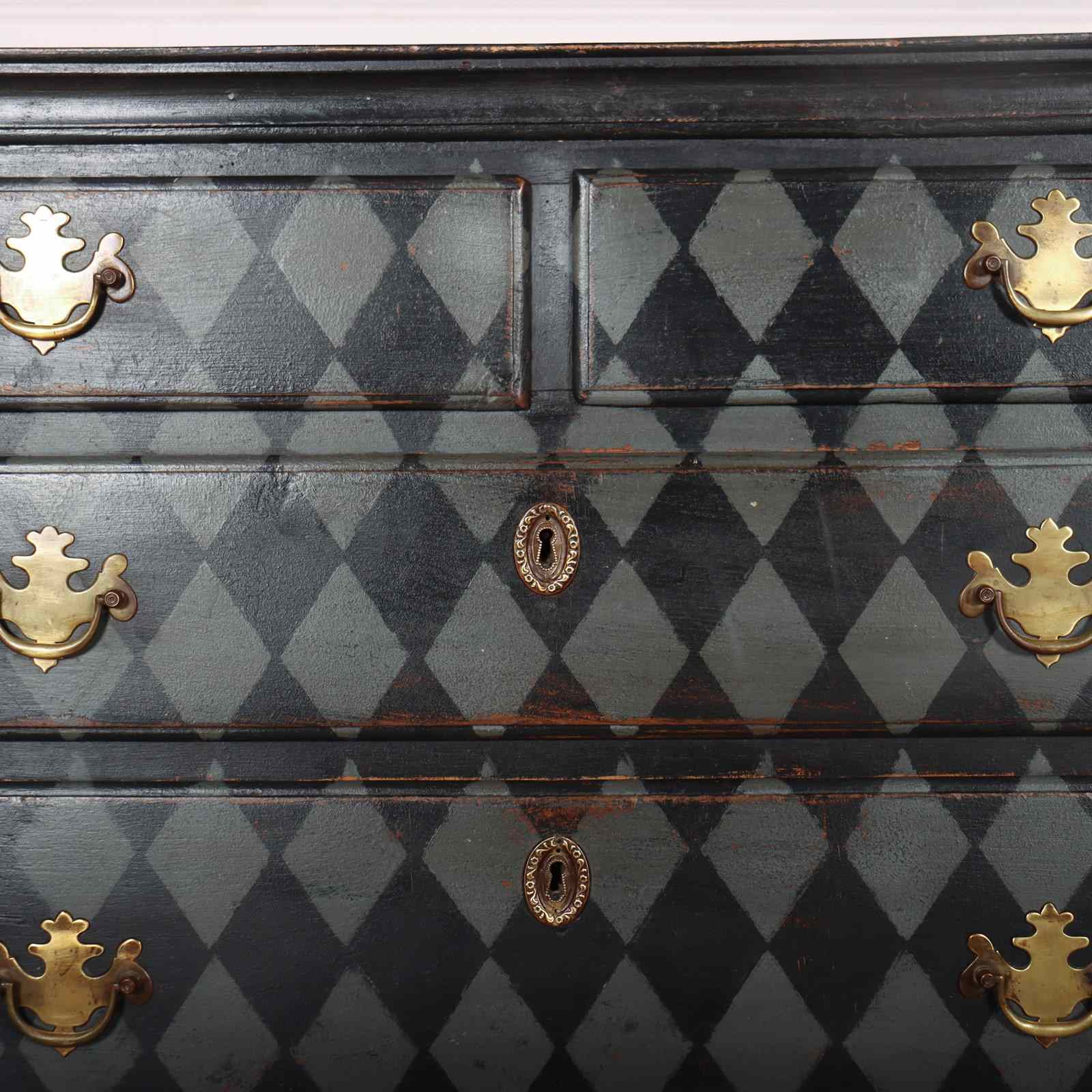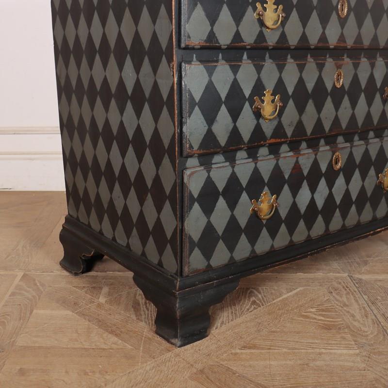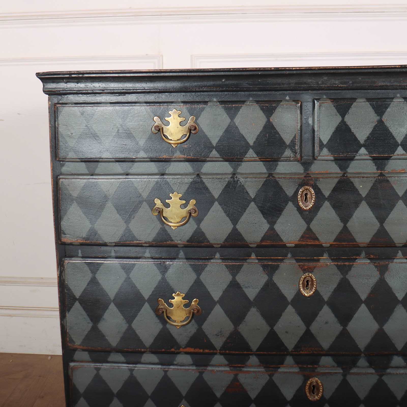 18th century English painted oak chest of drawers with a harlequin design. 1790.