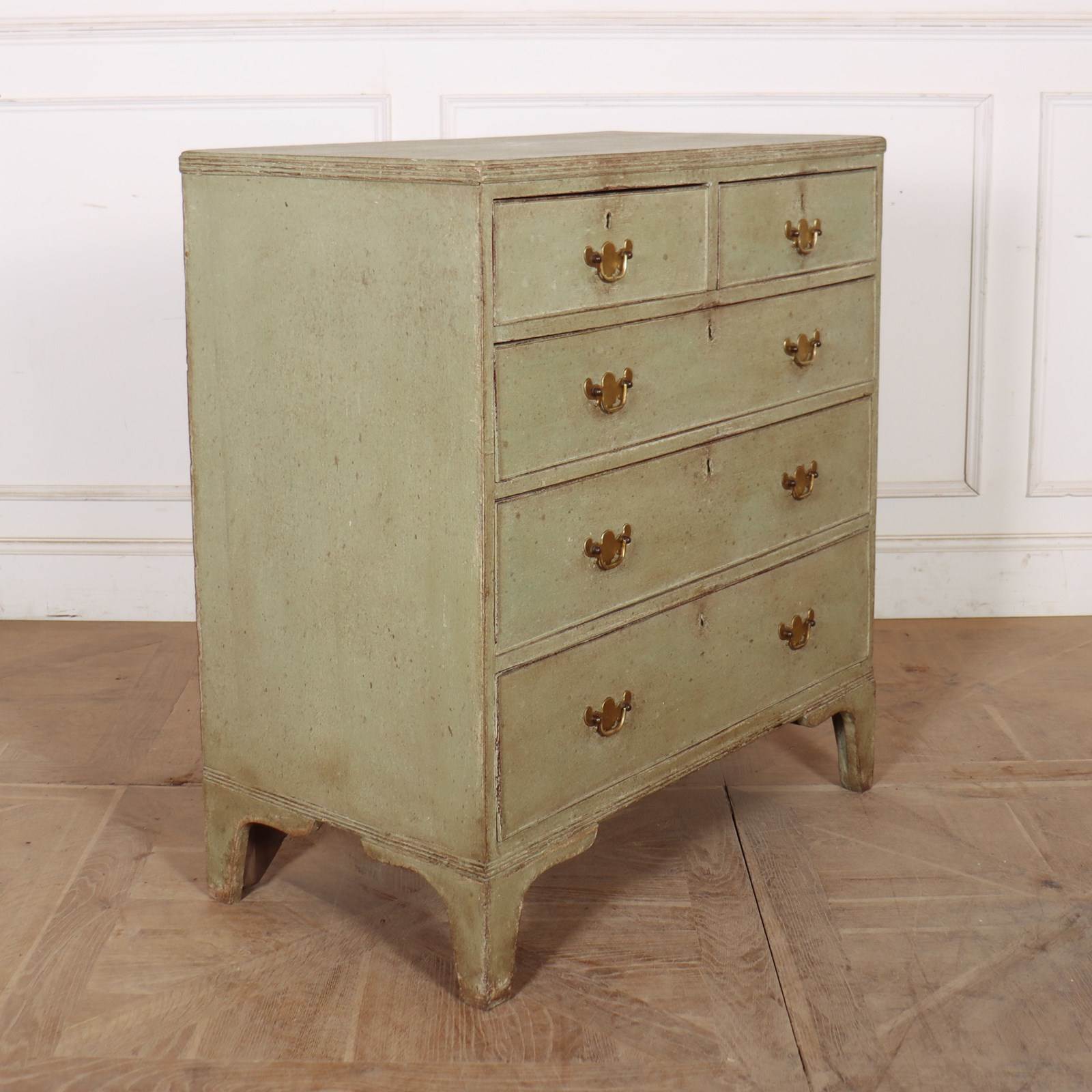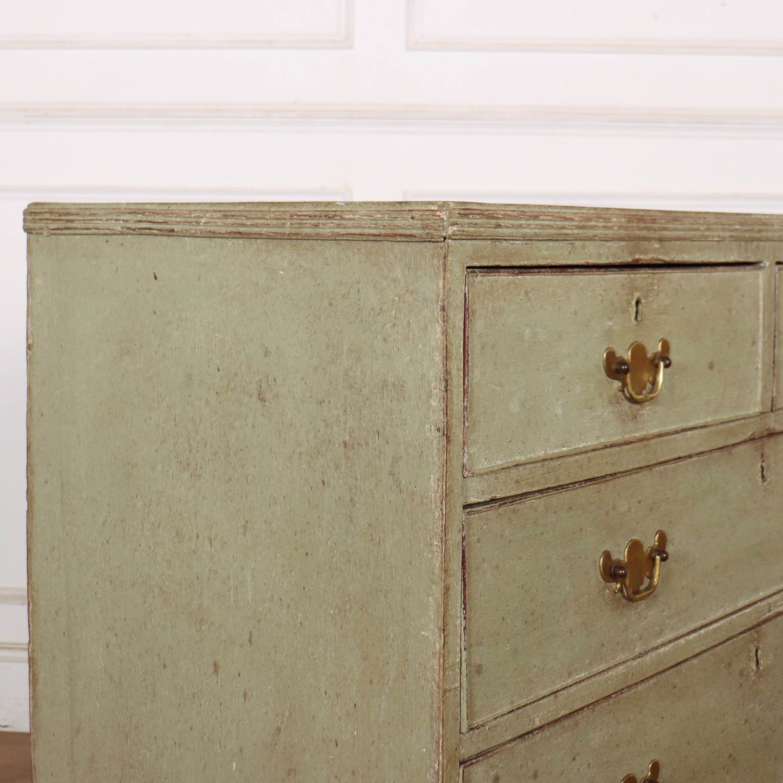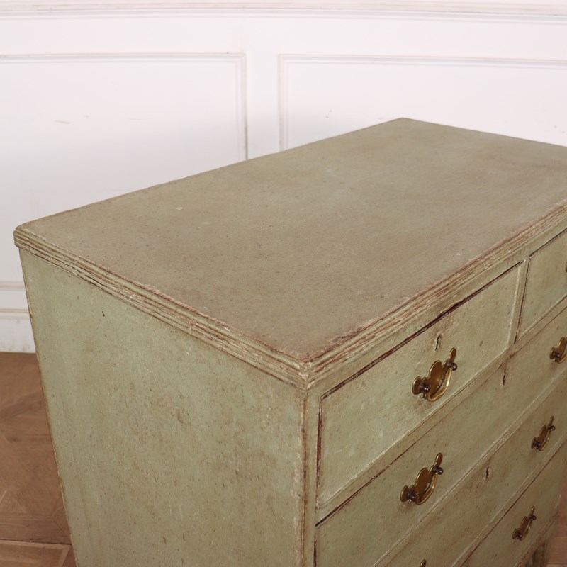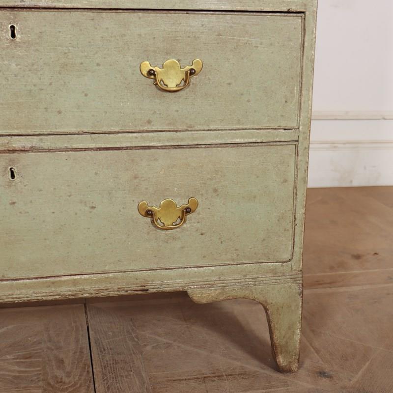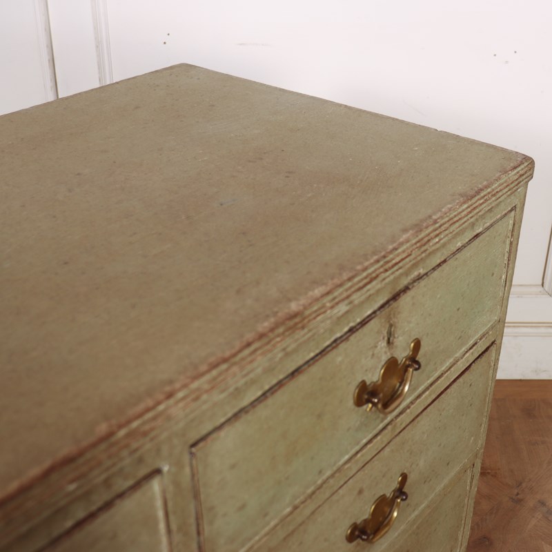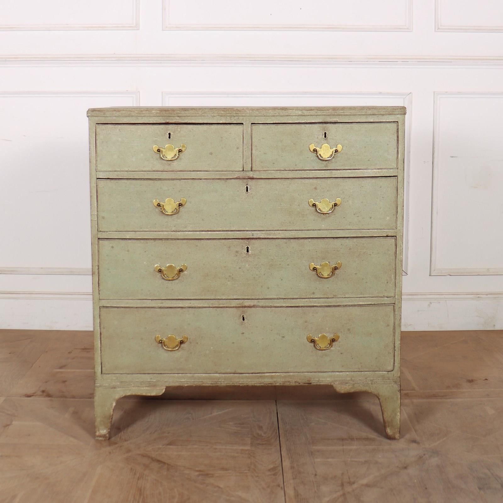 Late 18th Century English painted chest of drawers with original brass handles and later paint.1790