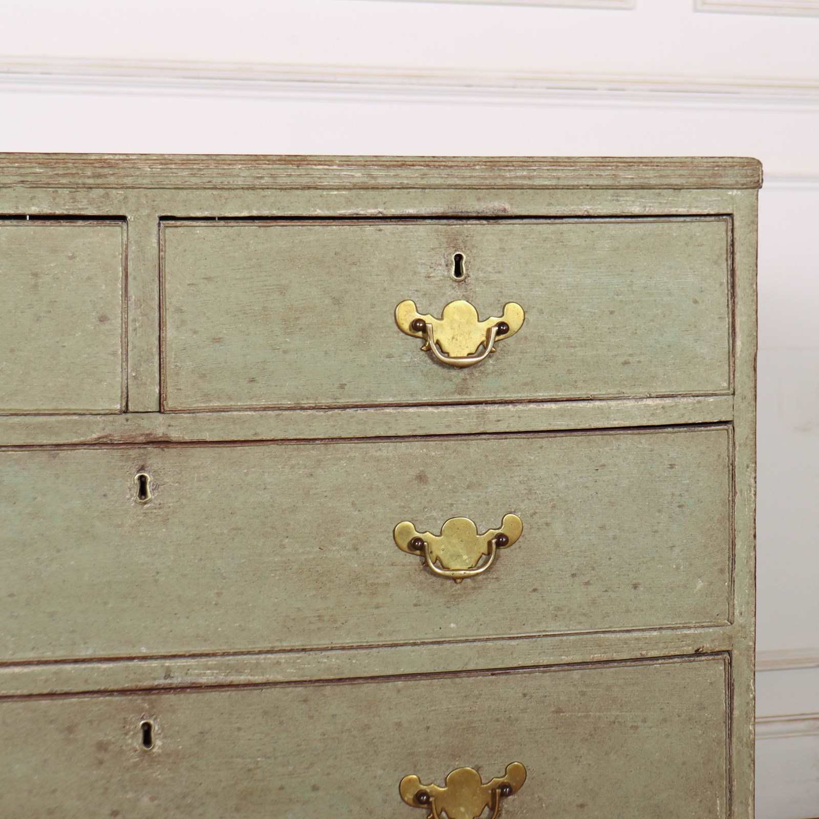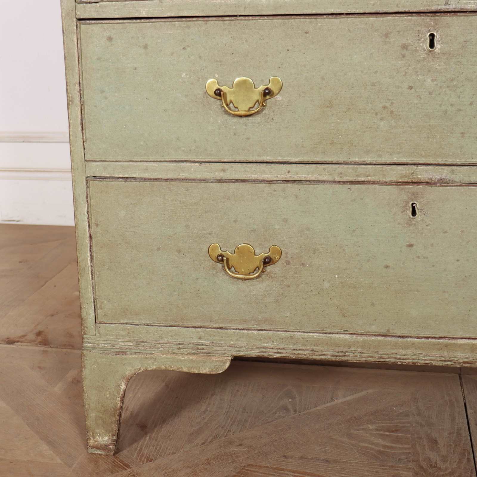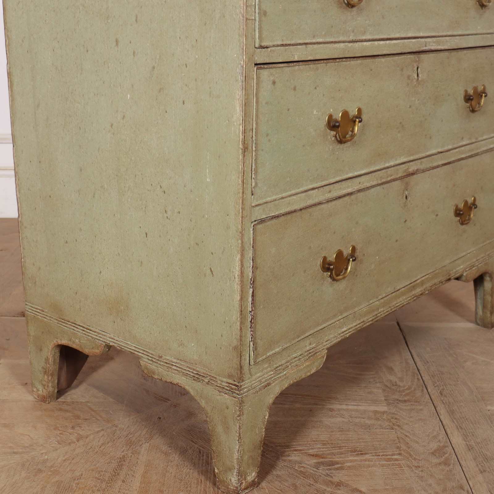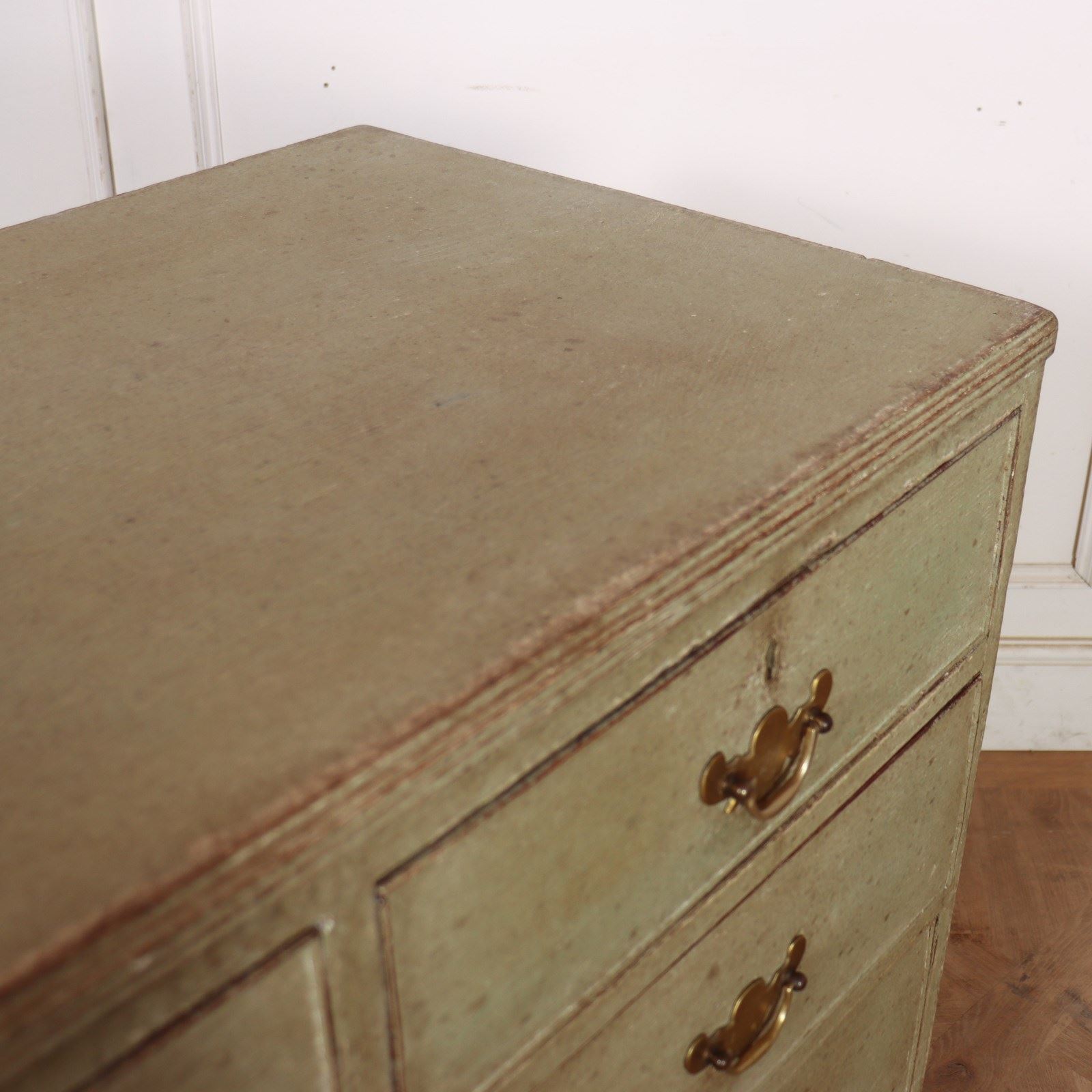 Late 18th Century English painted chest of drawers with original brass handles and later paint.1790
