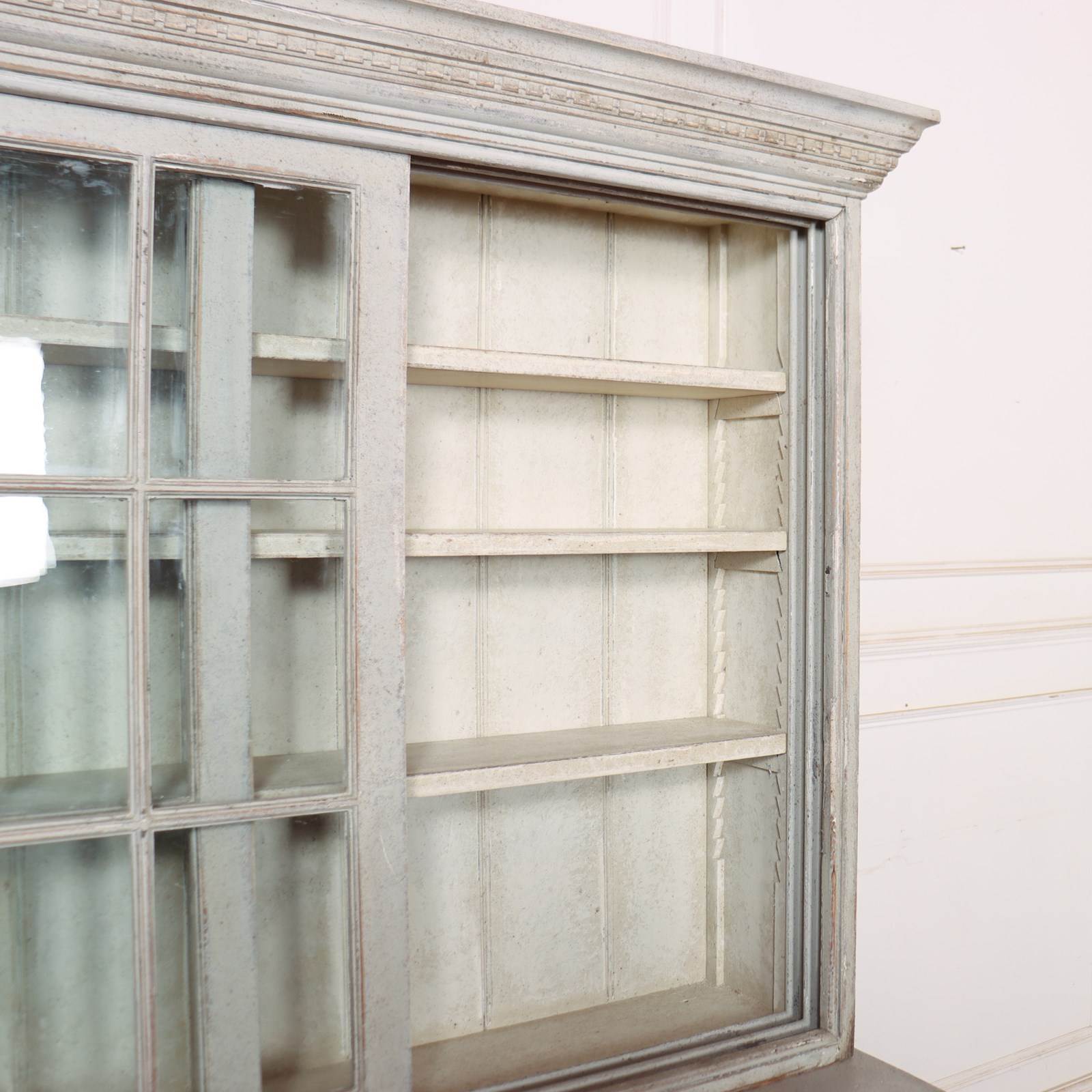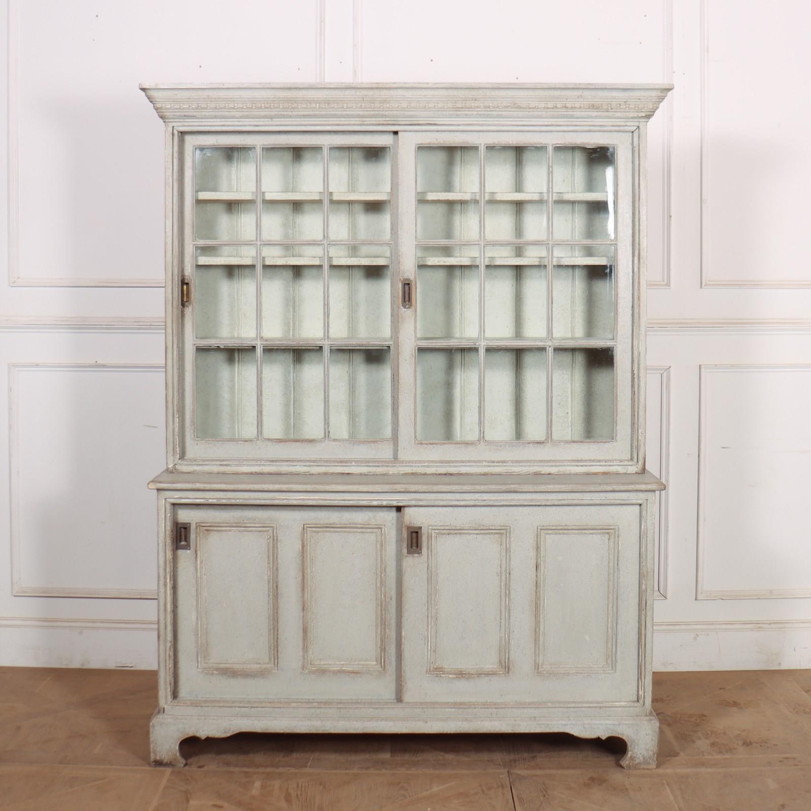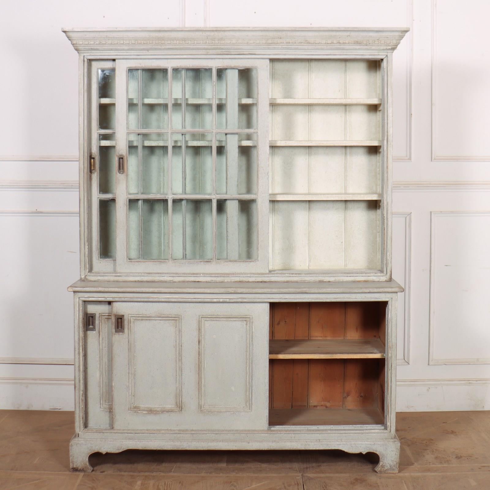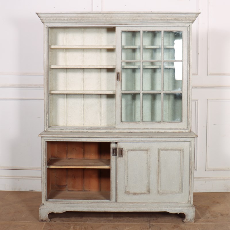 Good 19th Century English painted kitchen dresser with sliding top and bottom doors. 1840
