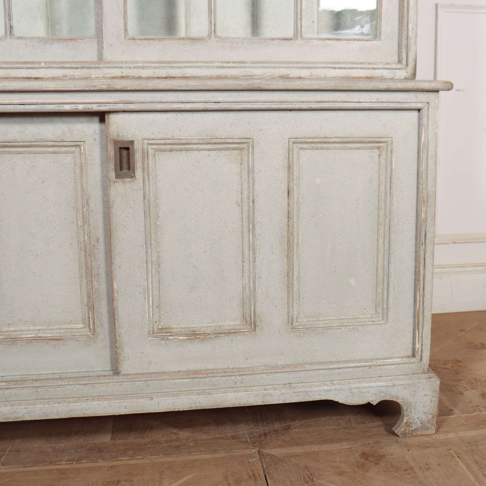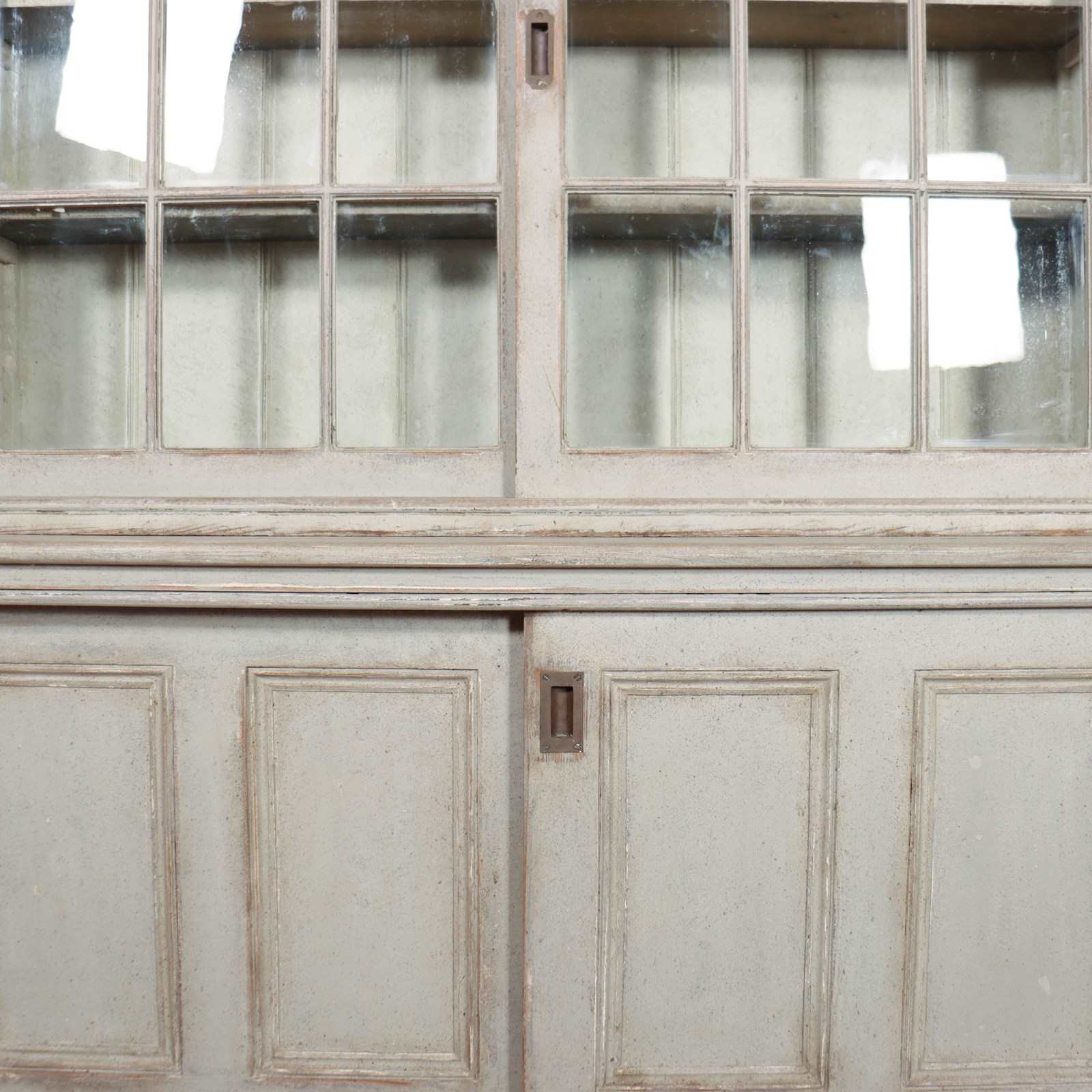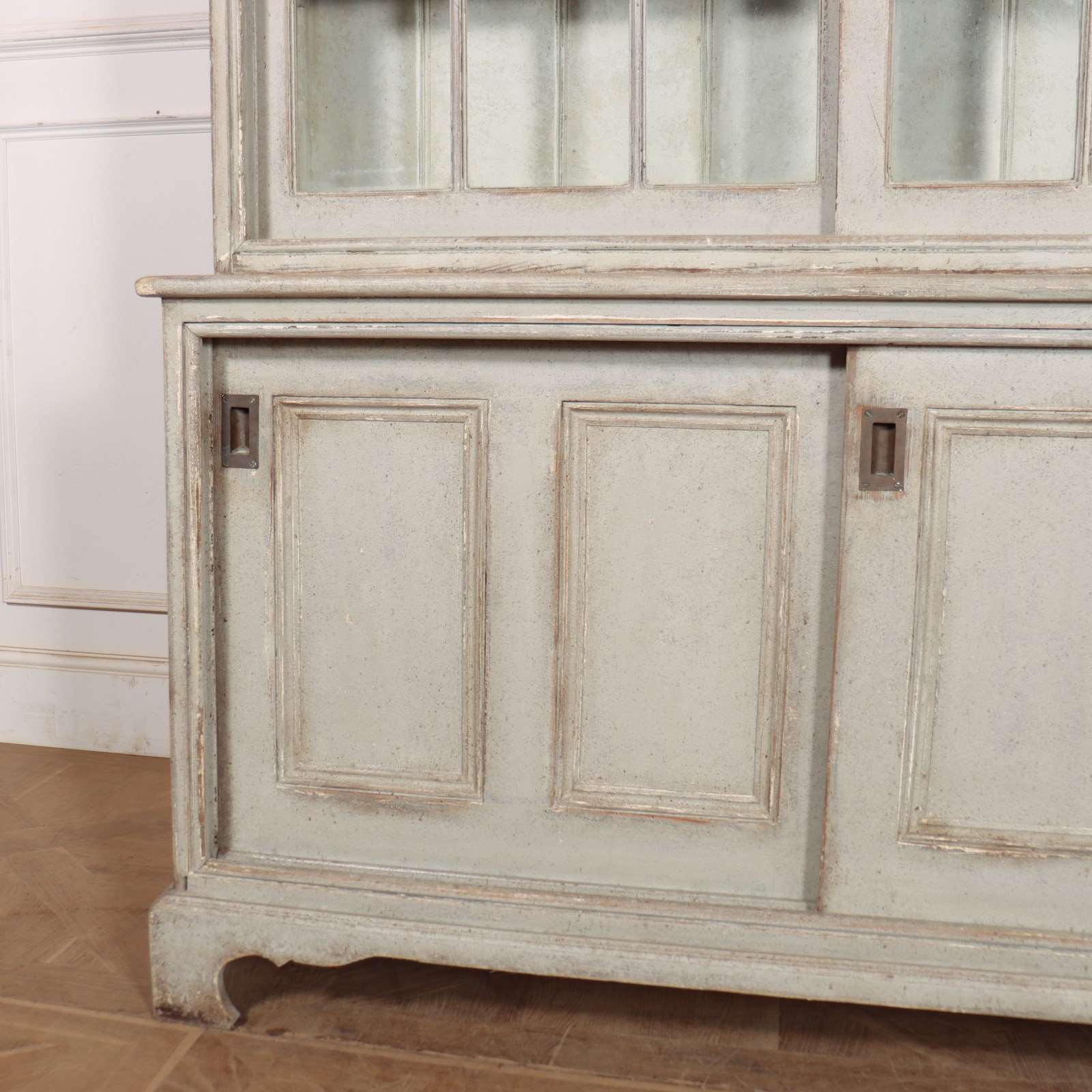 Good 19th Century English painted kitchen dresser with sliding top and bottom doors. 1840