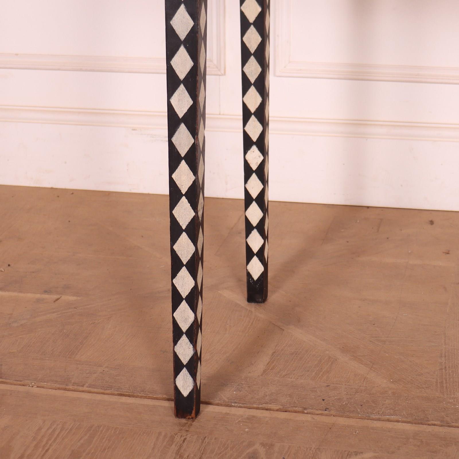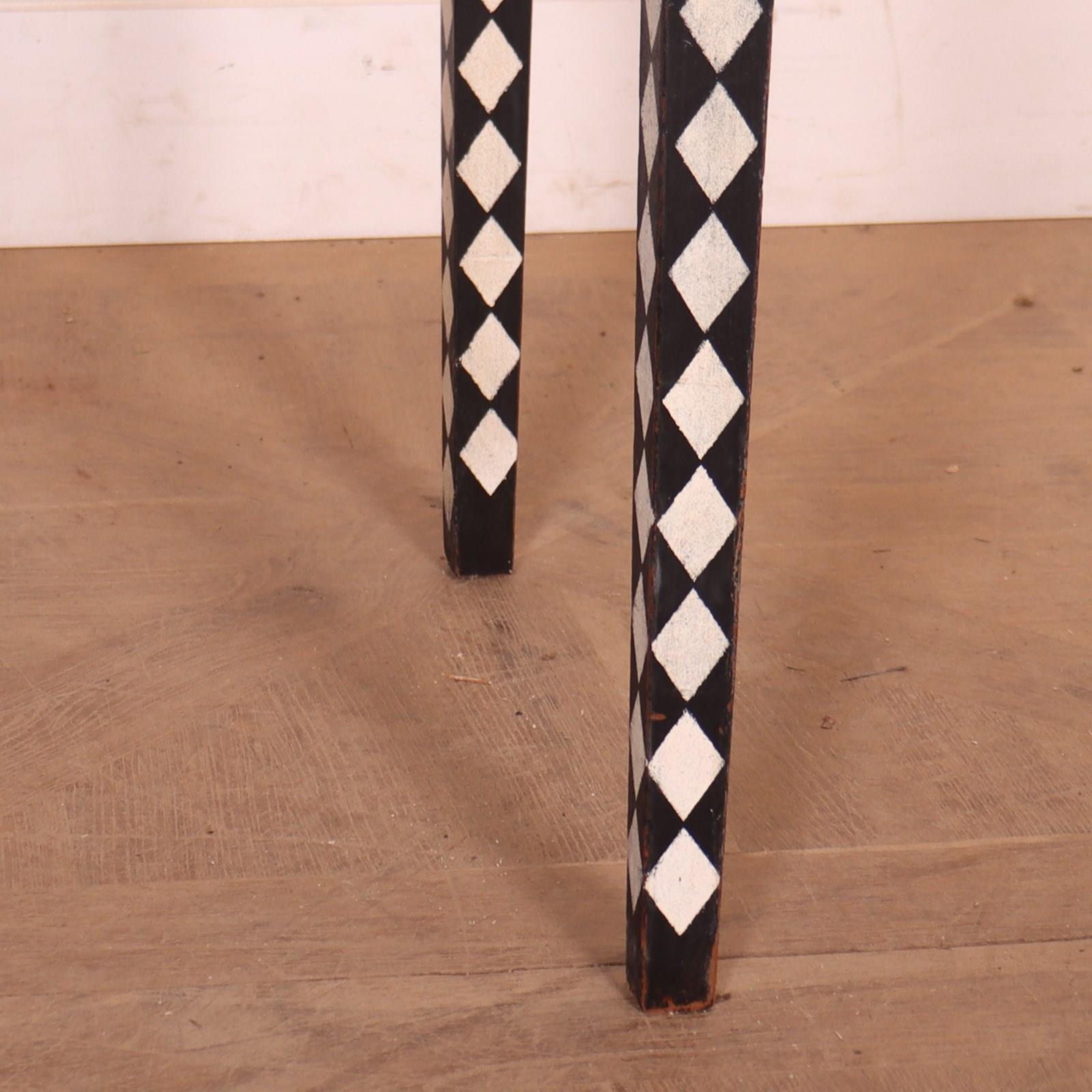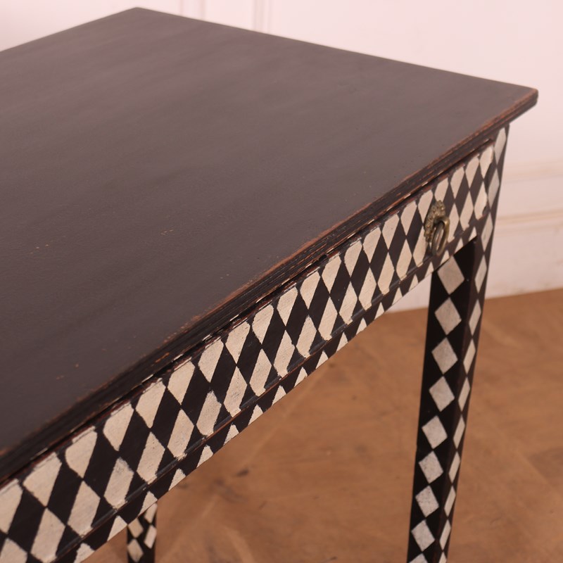 Late 19th C English painted one drawer harlequin decorated pine lamp table. 1890