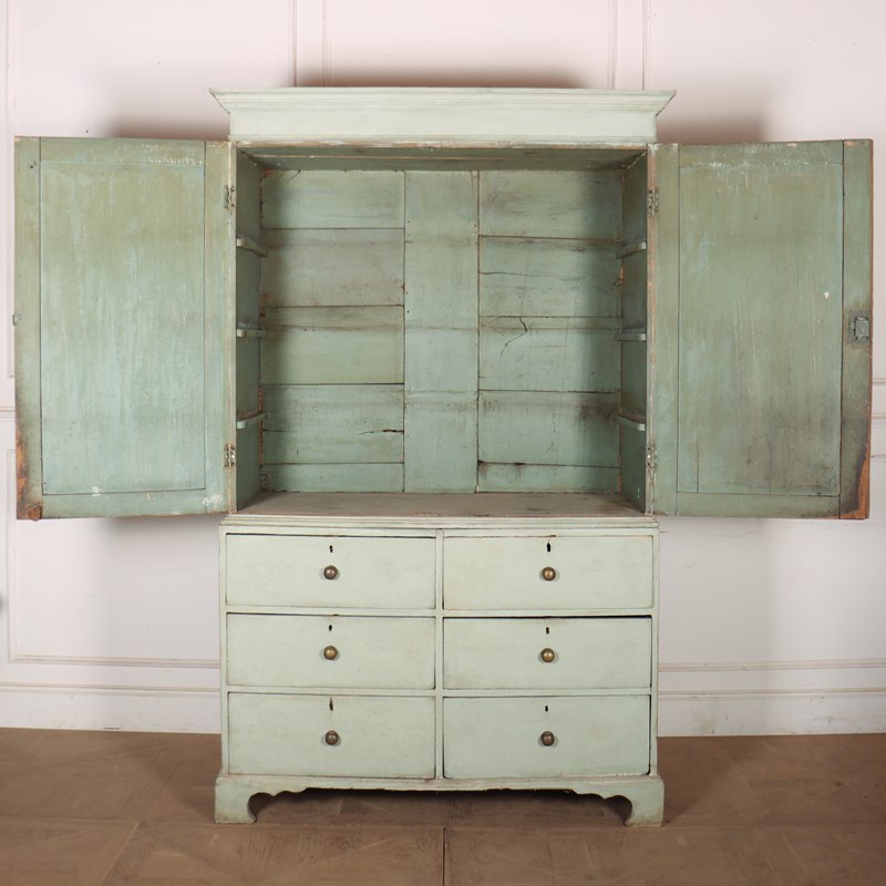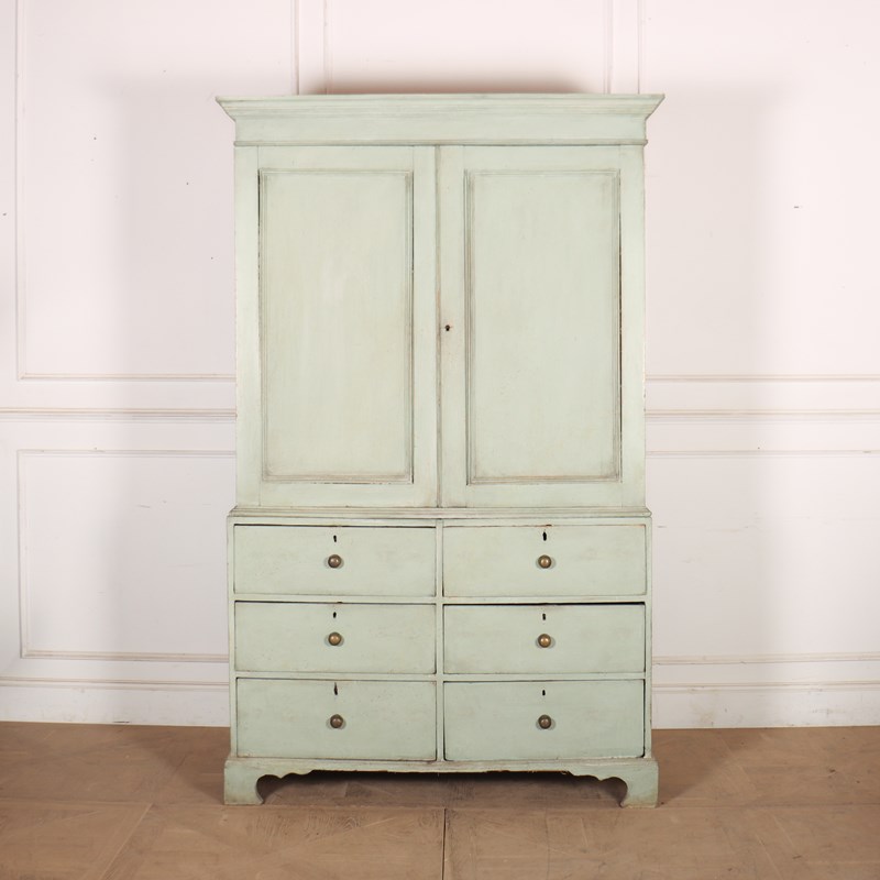 Good early 19th century English painted pine linen cupboard/ housekeepers cupboard. 1830.