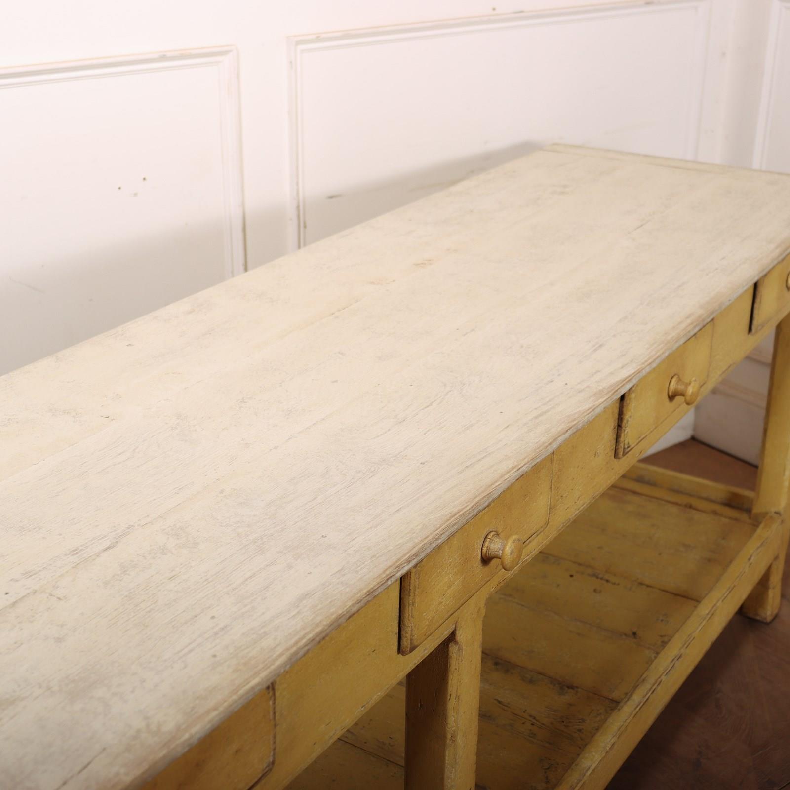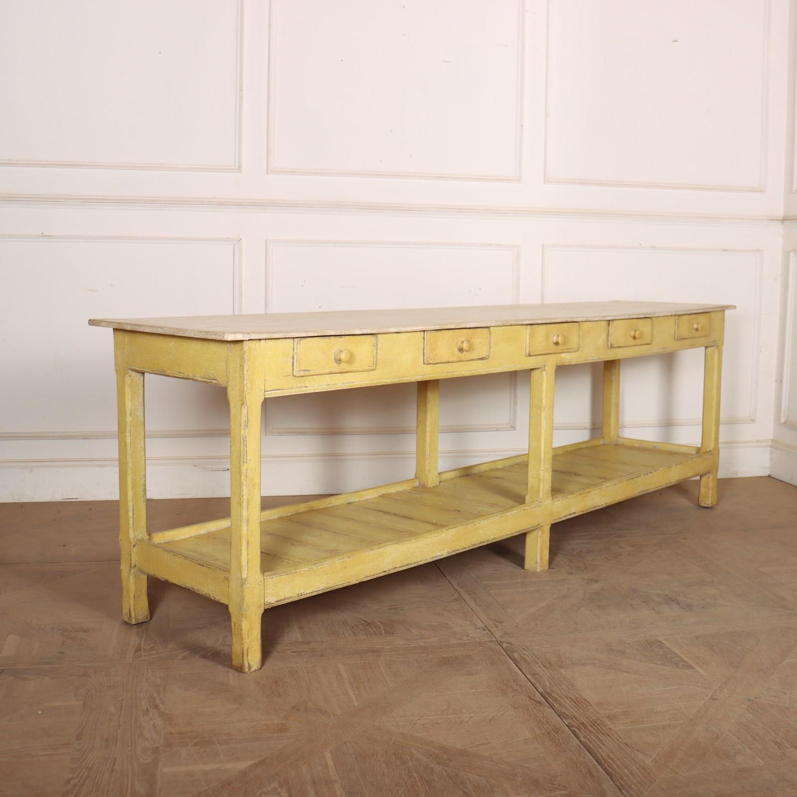 Large 19th Century English painted oak five drawer serving table. 1880.