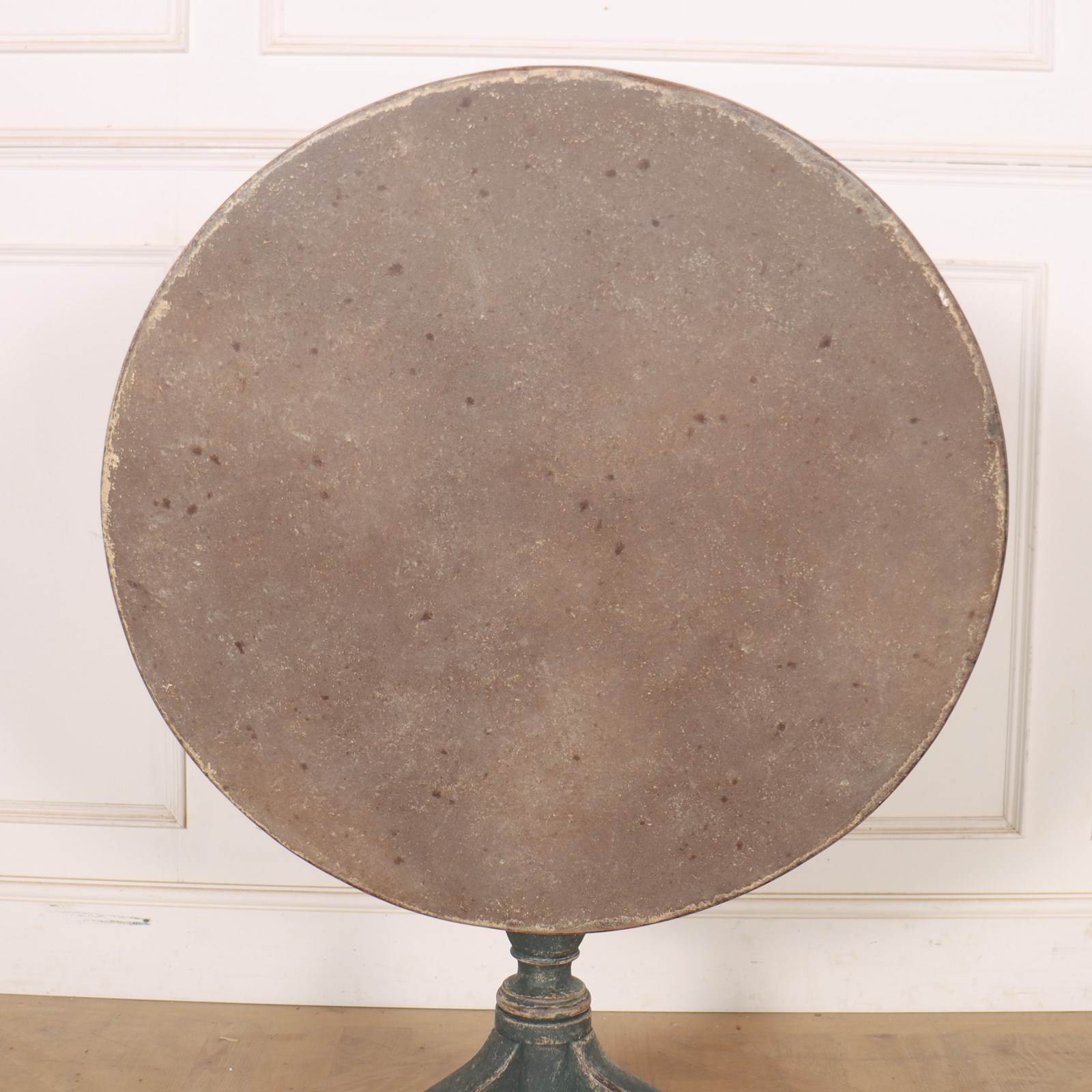 18th century English painted oak tripod table with a faux stone top. 1780.