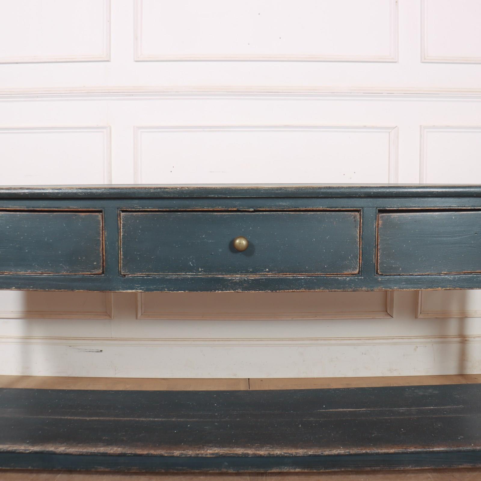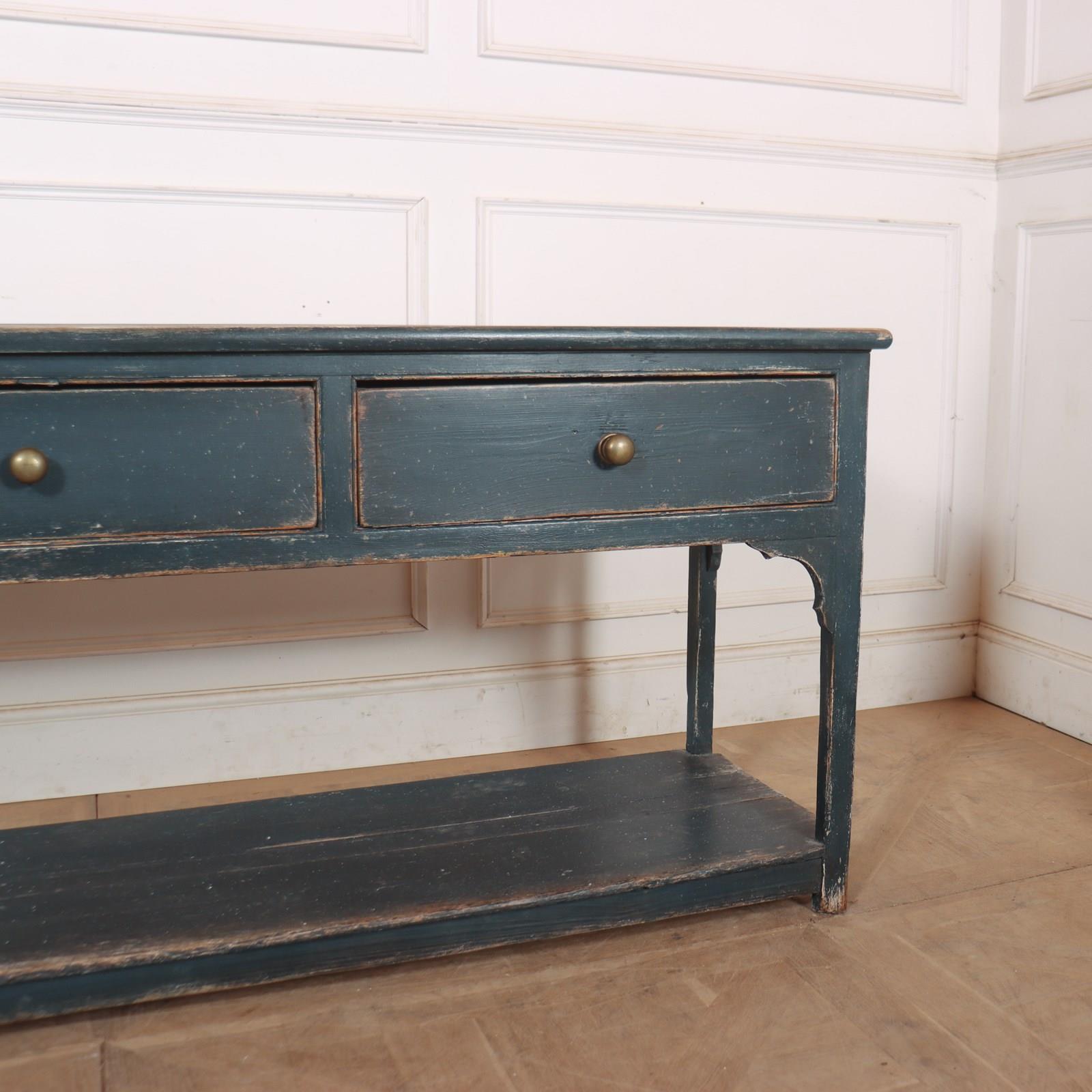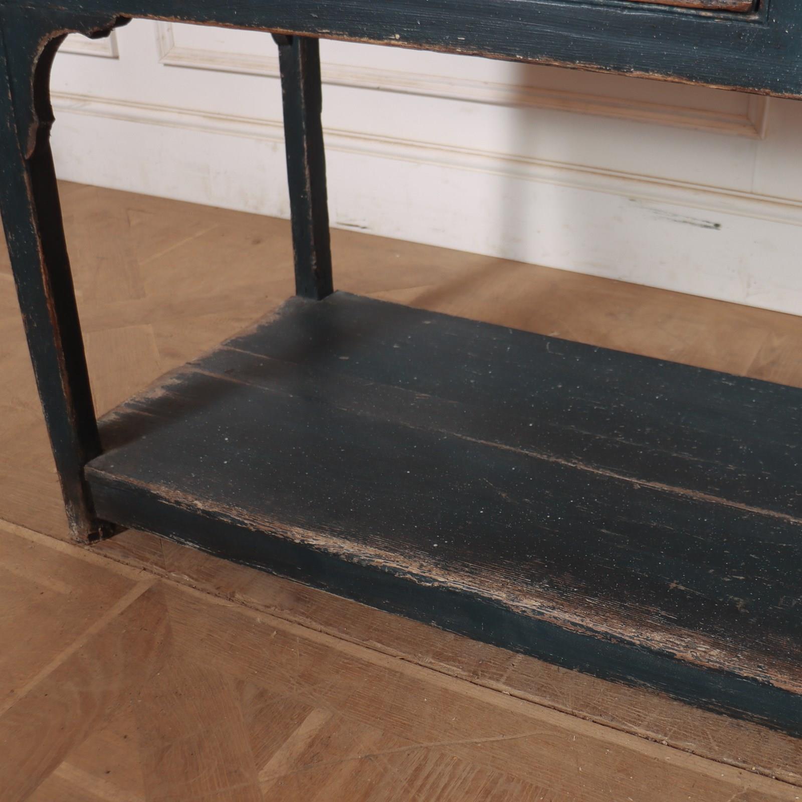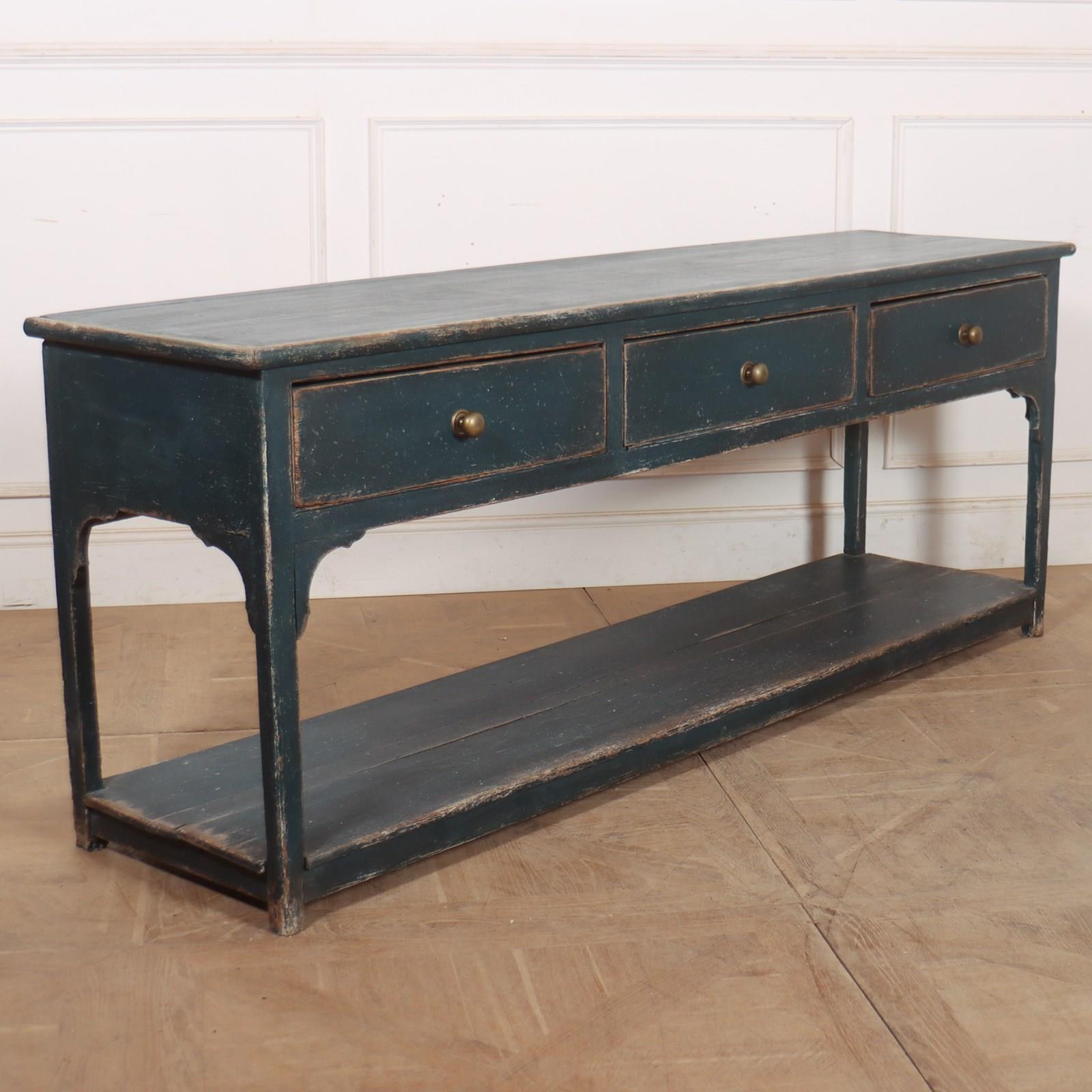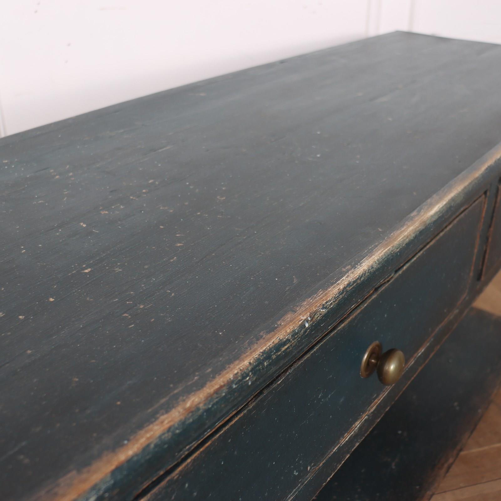Early 19th C English 3 drawer painted pine potboard 3 drawer dresser base. 1820