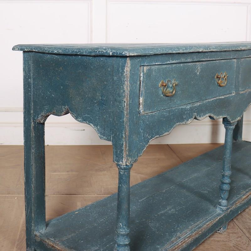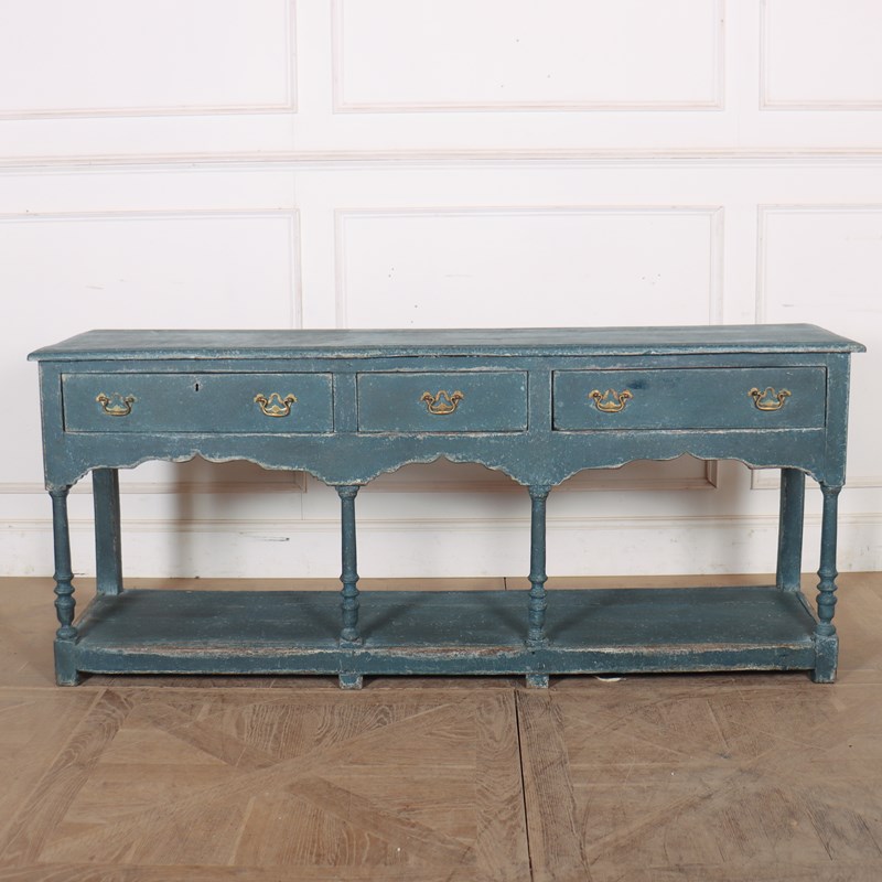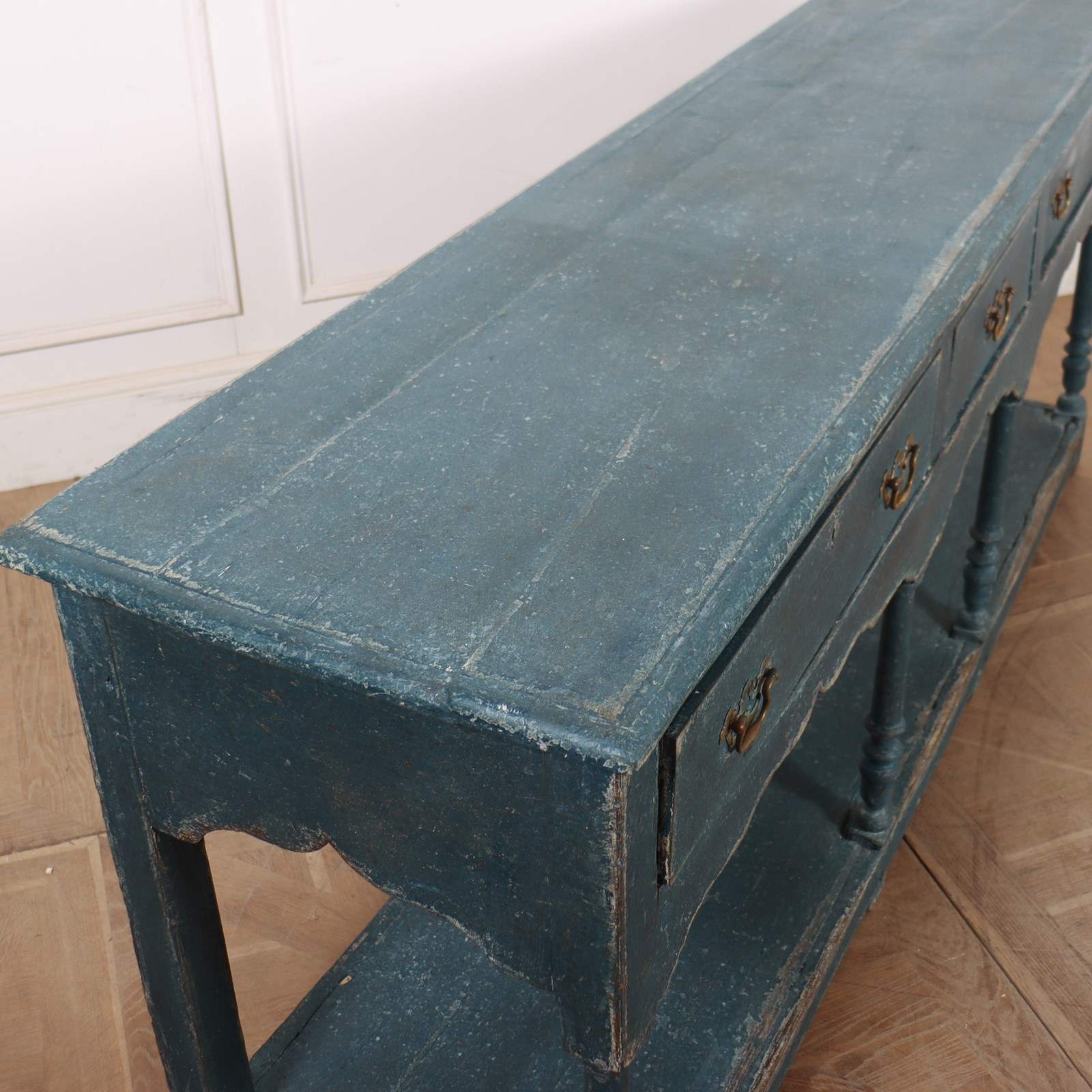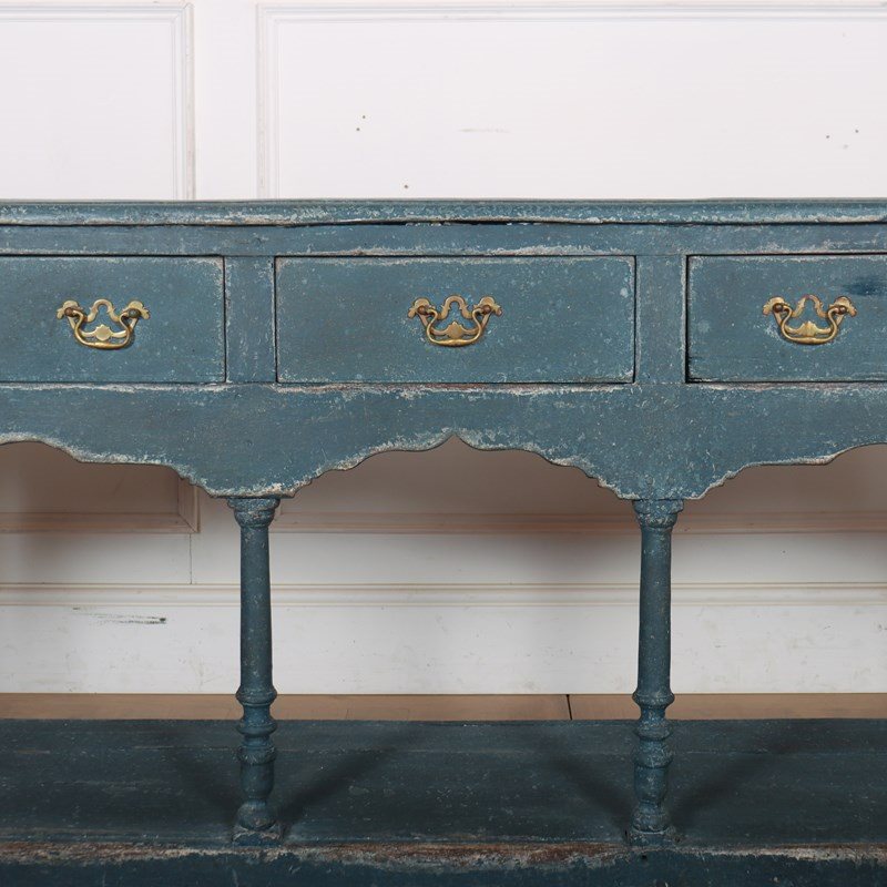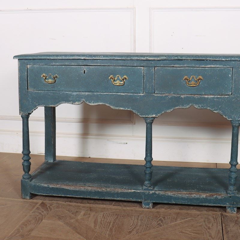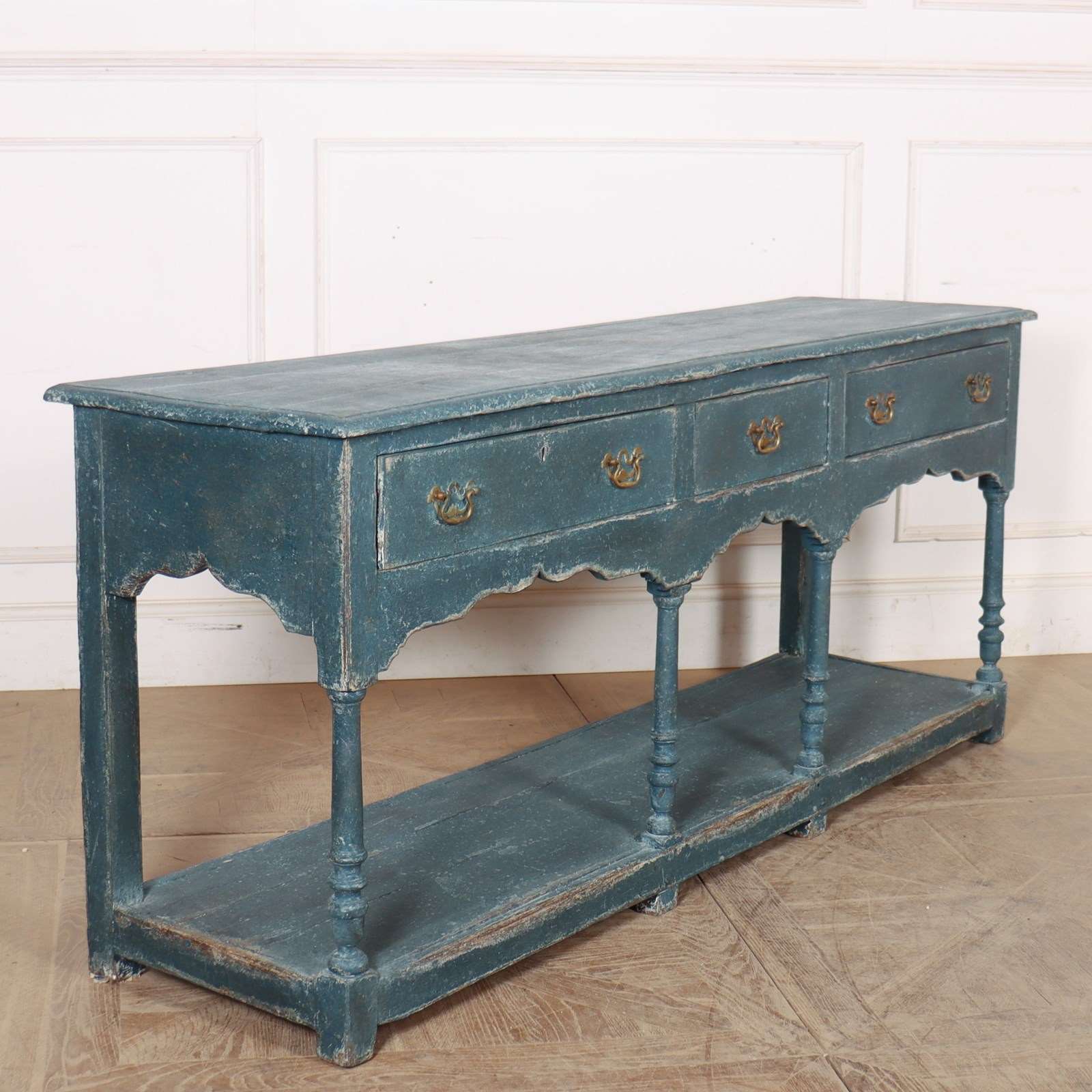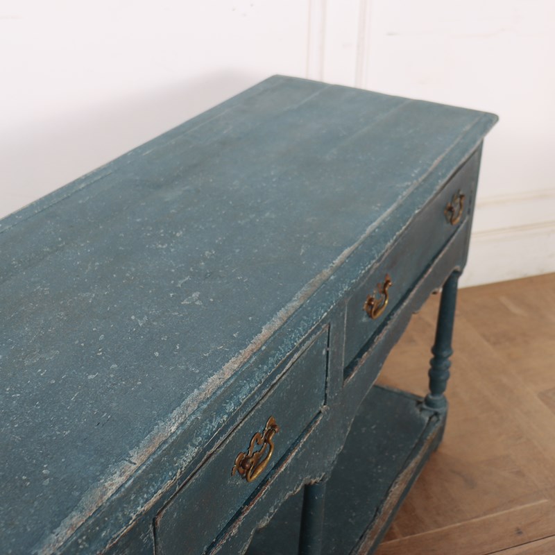 Pretty English 18th C painted 3 drawer oak potboard dresser base. 1760