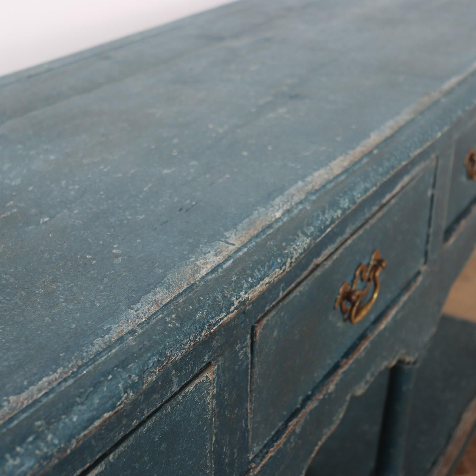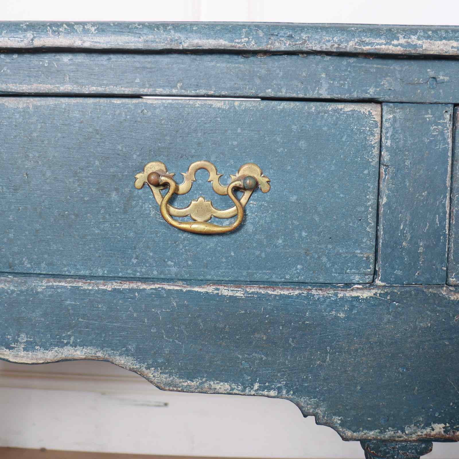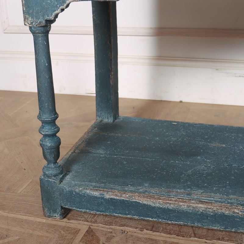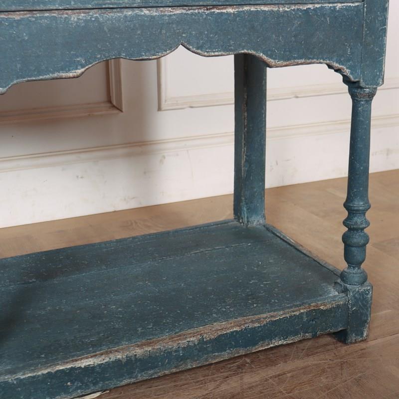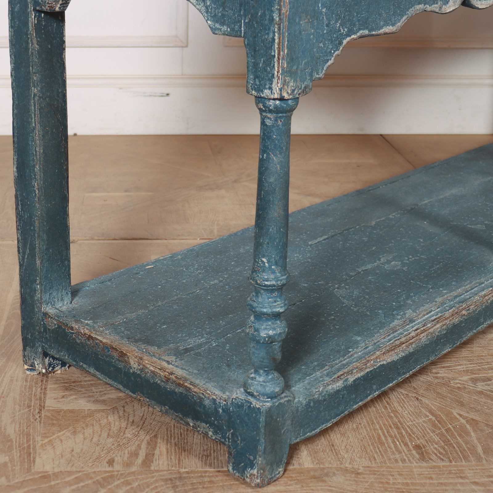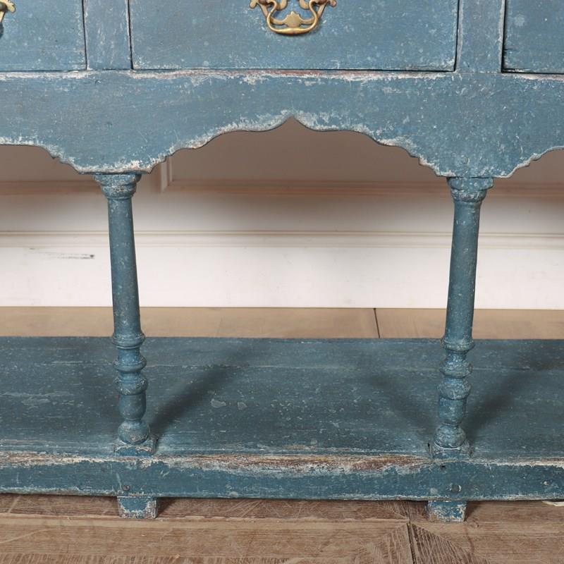 Pretty English 18th C painted 3 drawer oak potboard dresser base. 1760