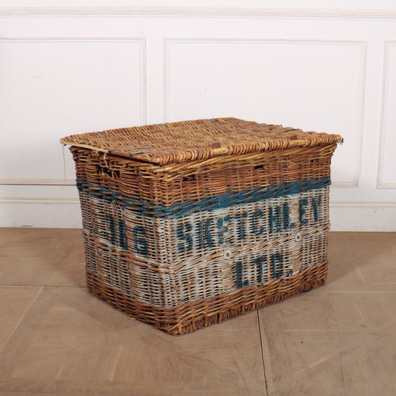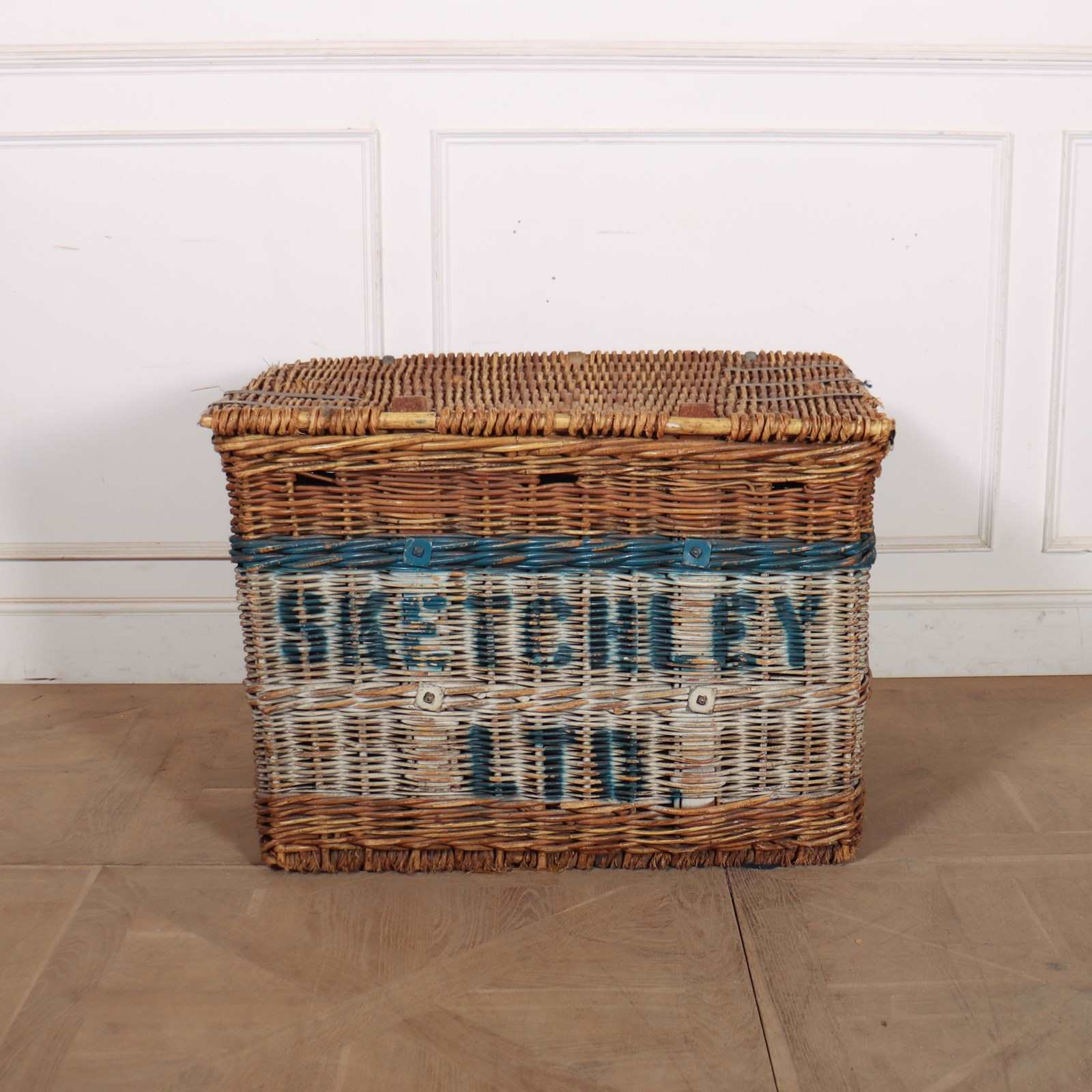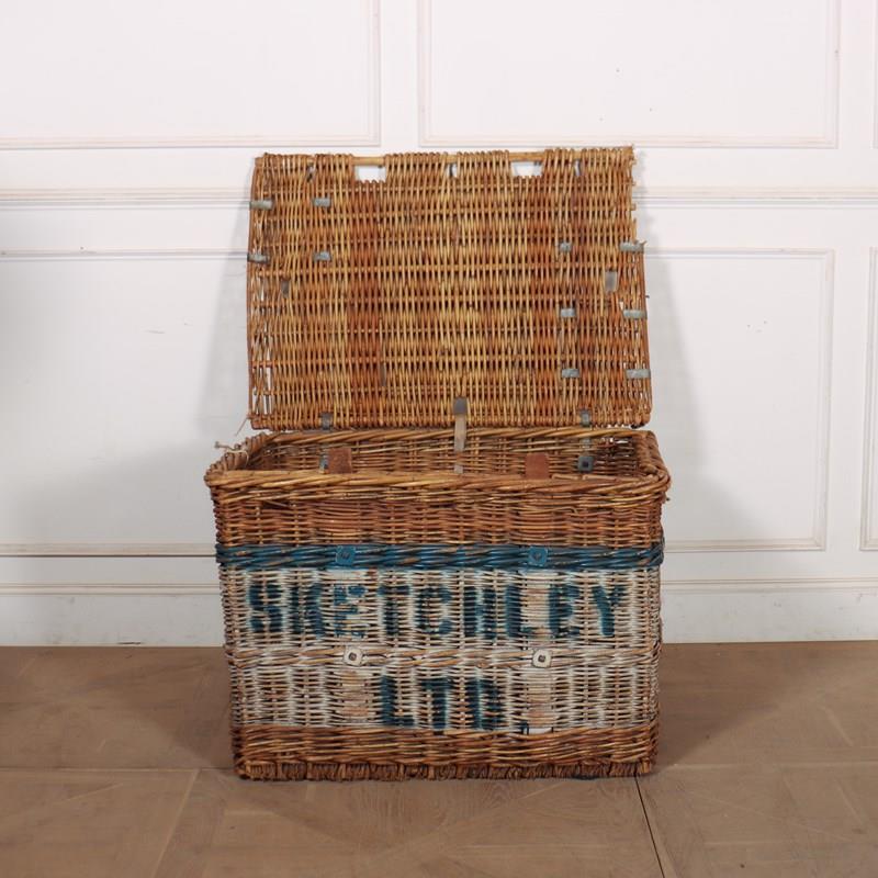 English wicker basket from a fabric mill. Would make a wonderful log basket. 1900.