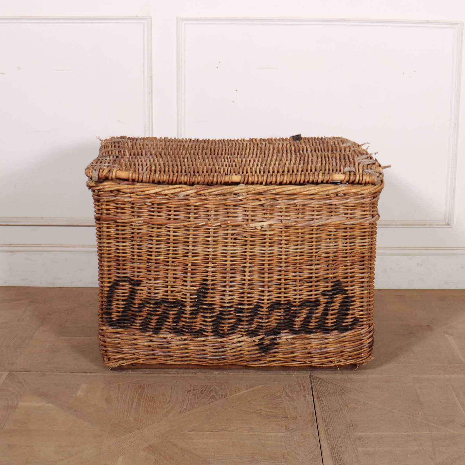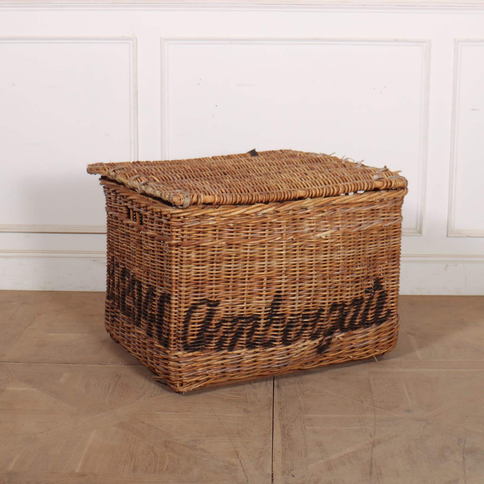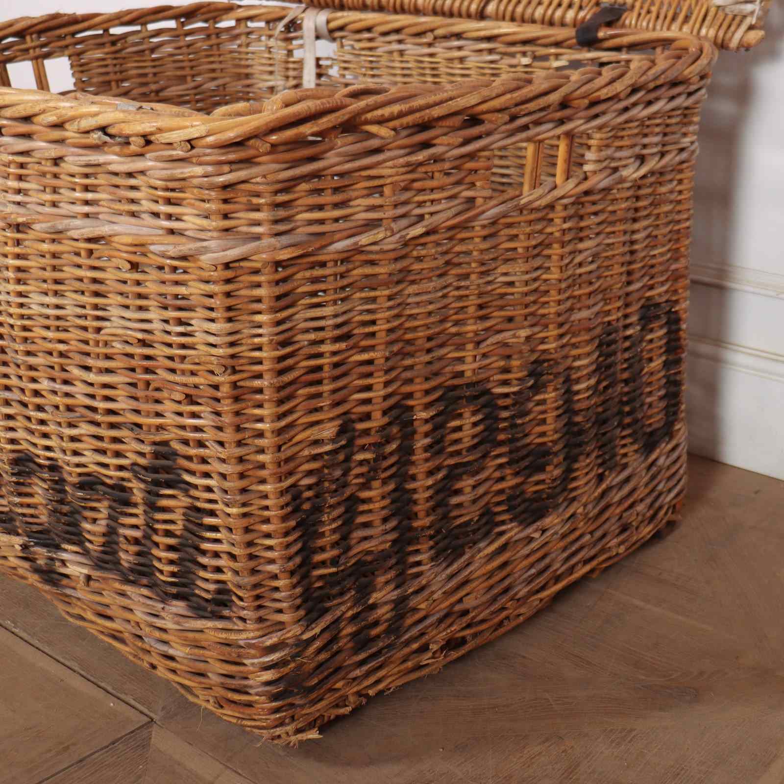 English wicker basket from a fabric mill. Would make a wonderful log basket. 1900.