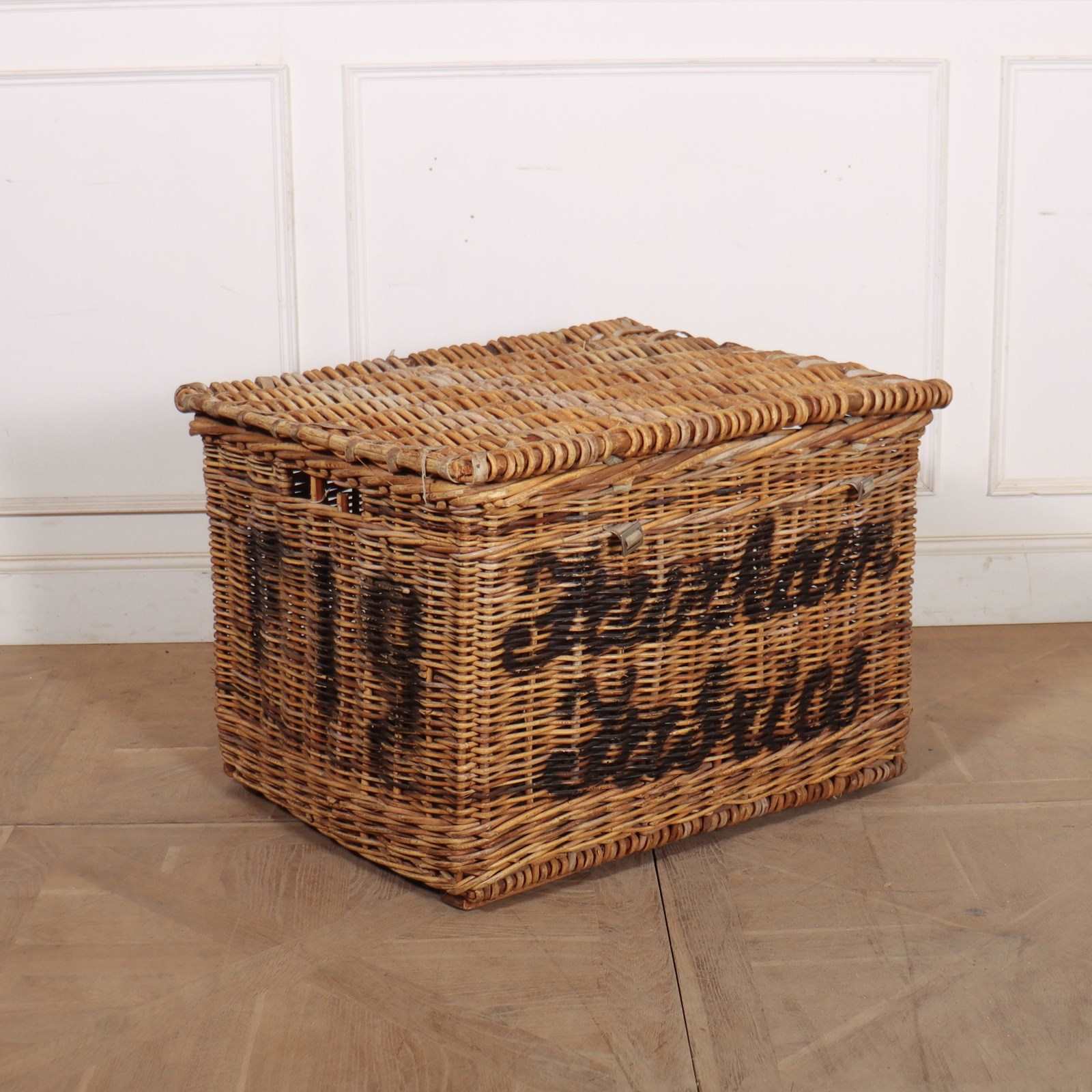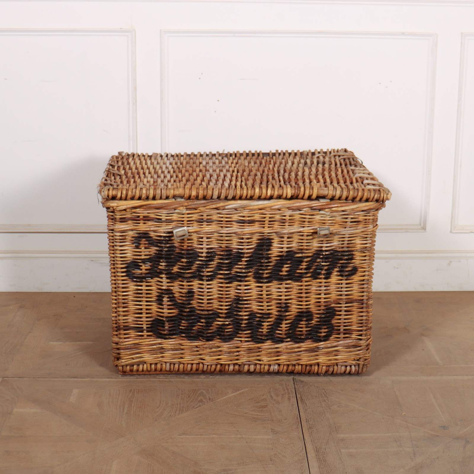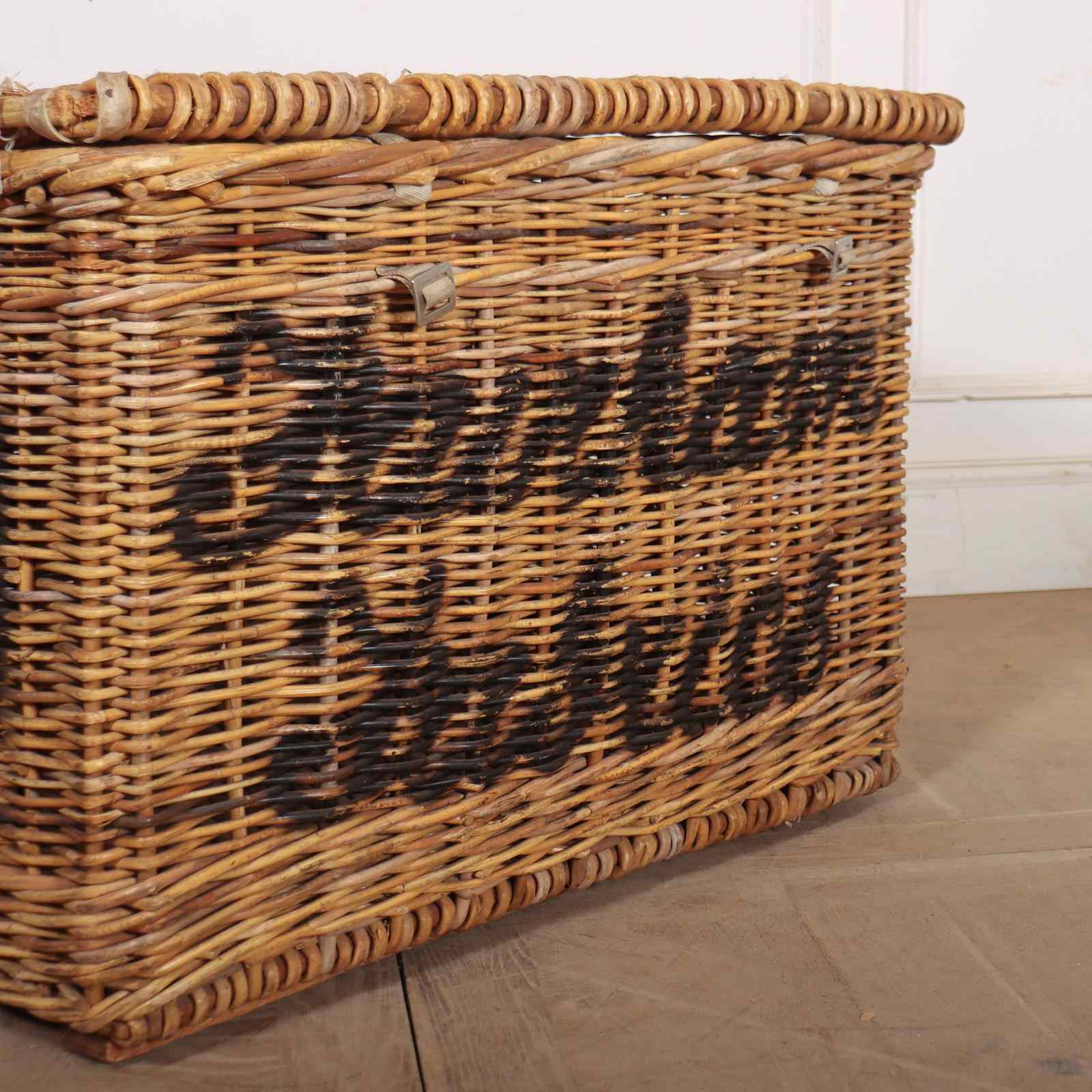 English wicker basket from a fabric mill. Would make a wonderful log basket. 1900.