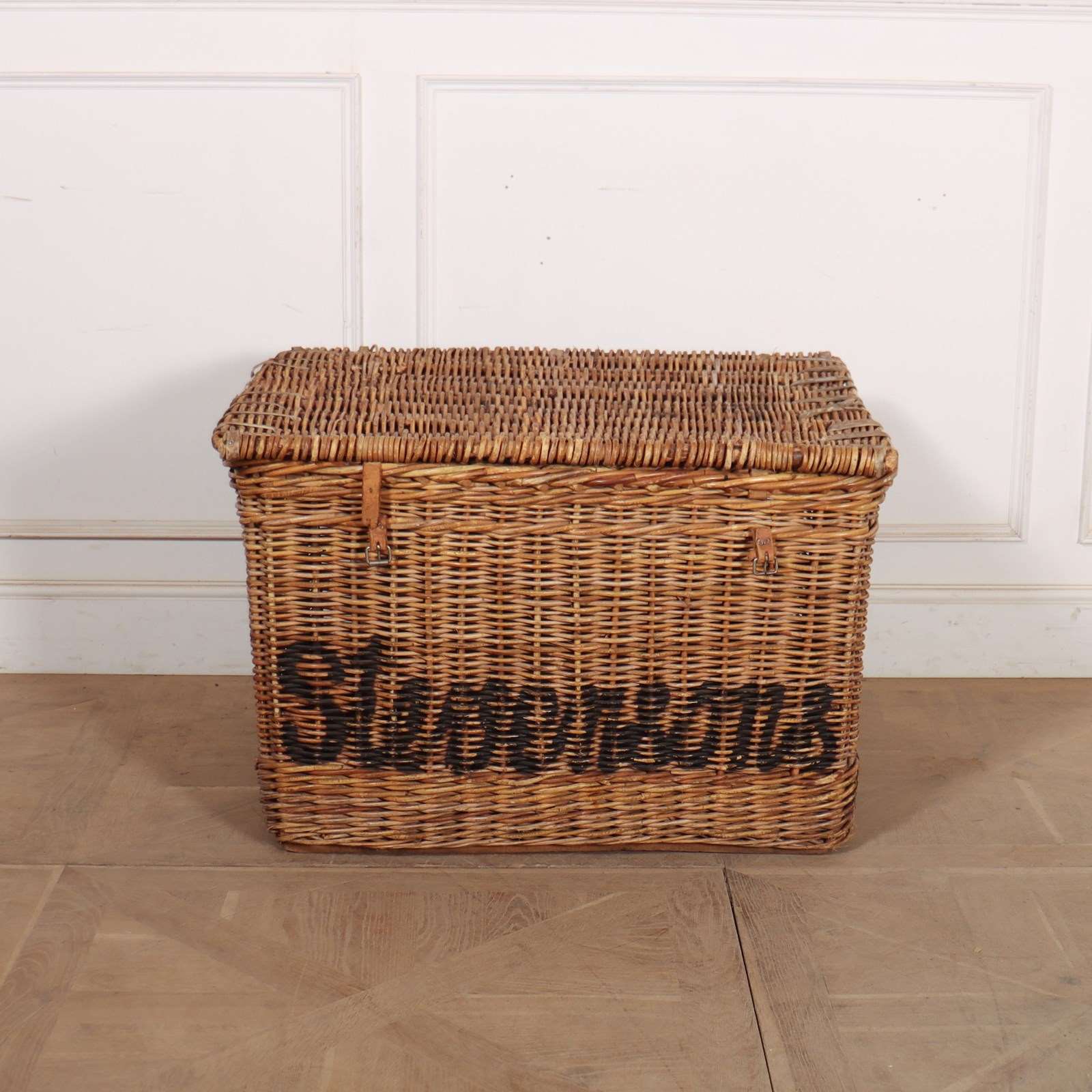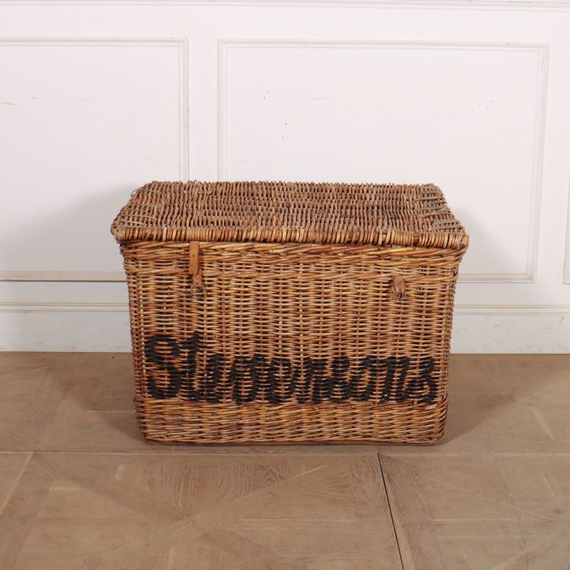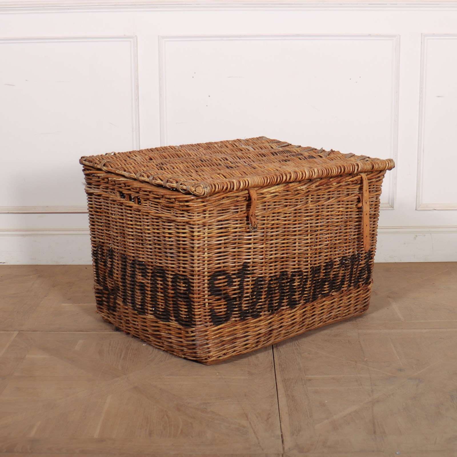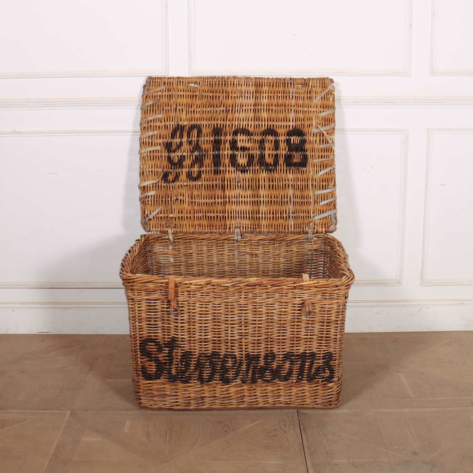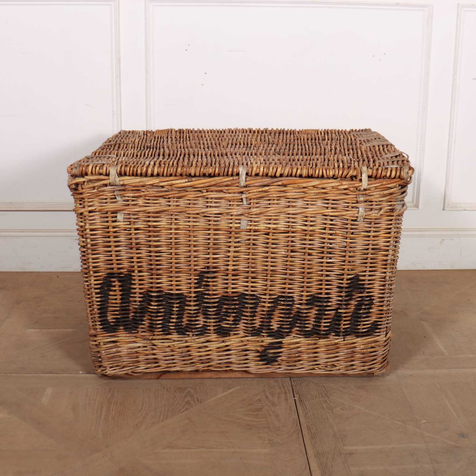 English wicker basket from a fabric mill. Would make a wonderful log basket. 1900.