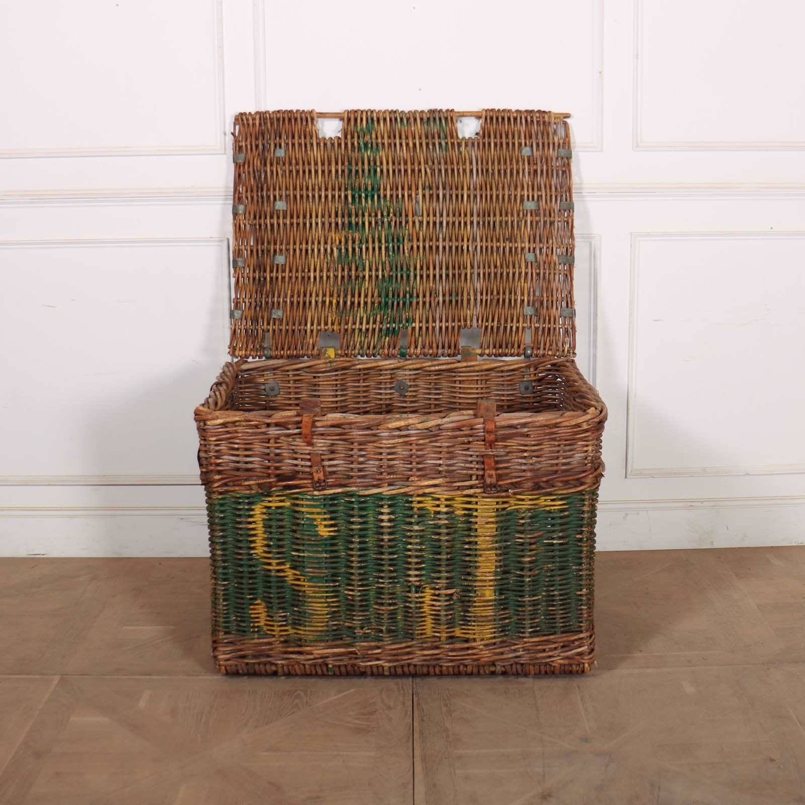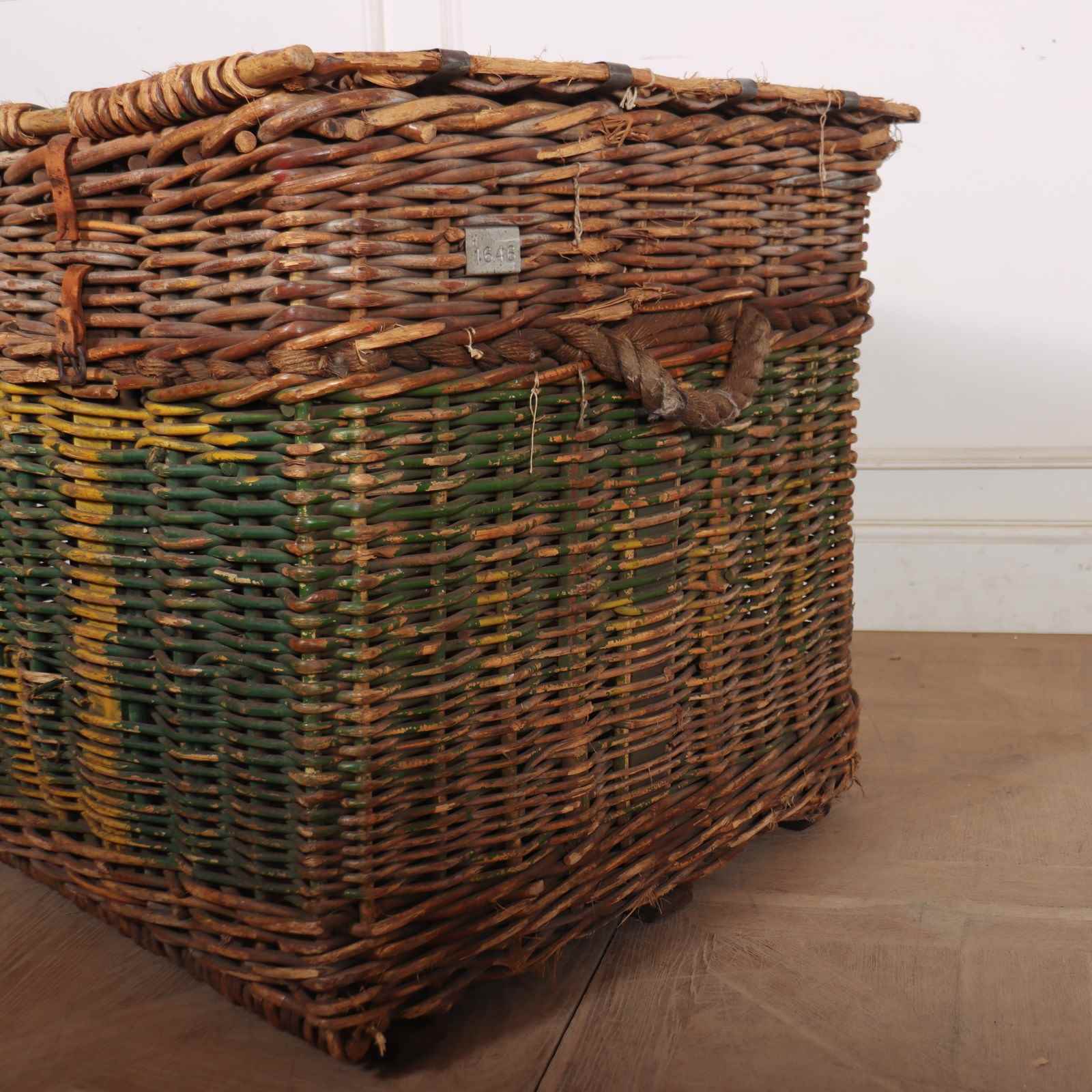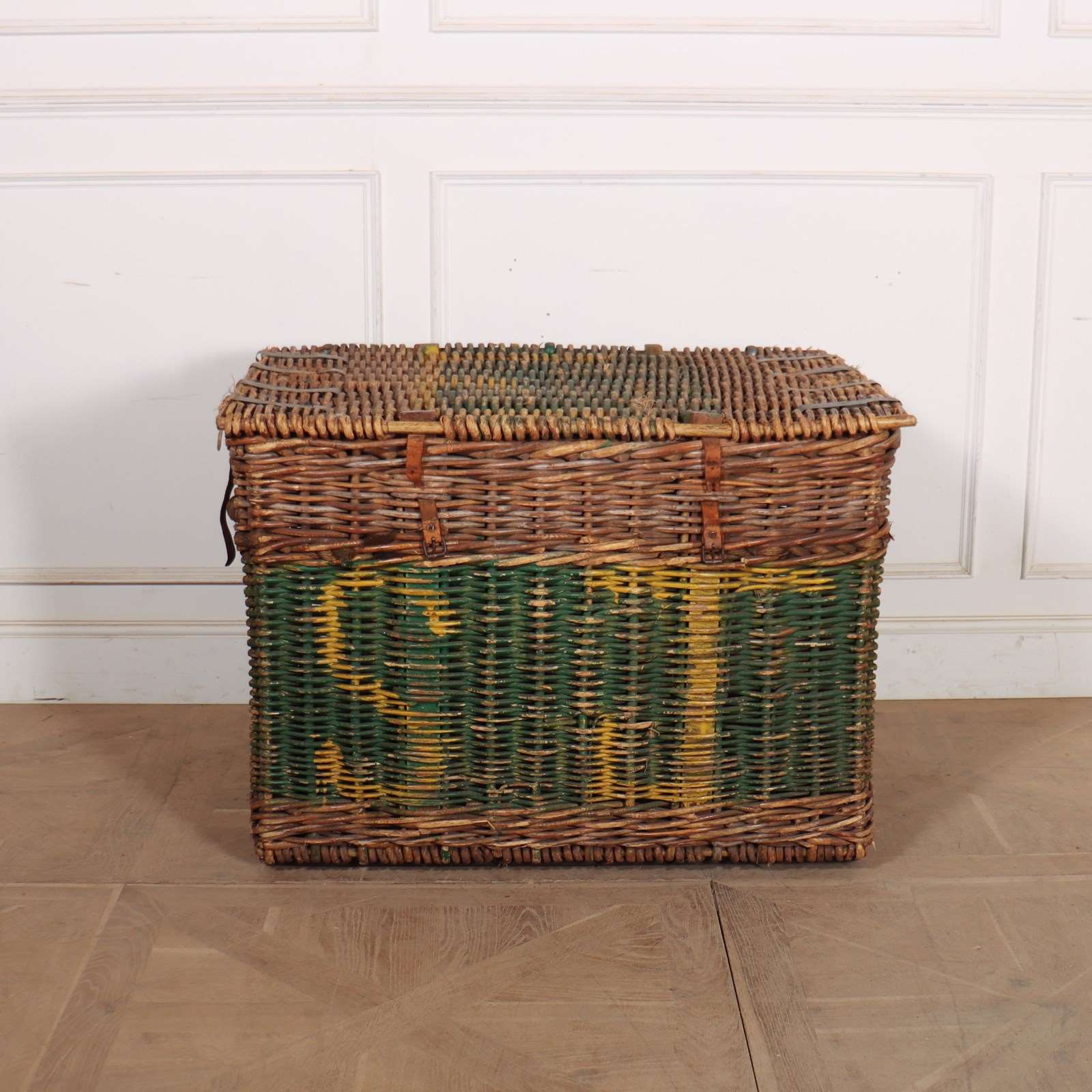 English wicker basket from a fabric mill. Would make a wonderful log basket. 1900.