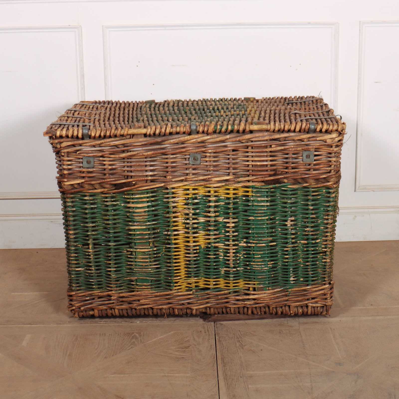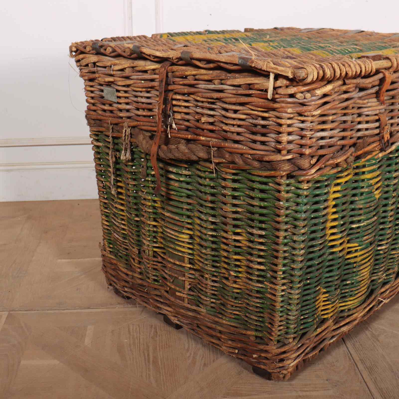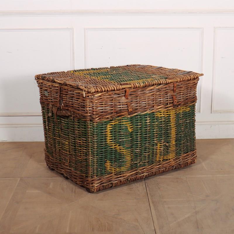 English wicker basket from a fabric mill. Would make a wonderful log basket. 1900.