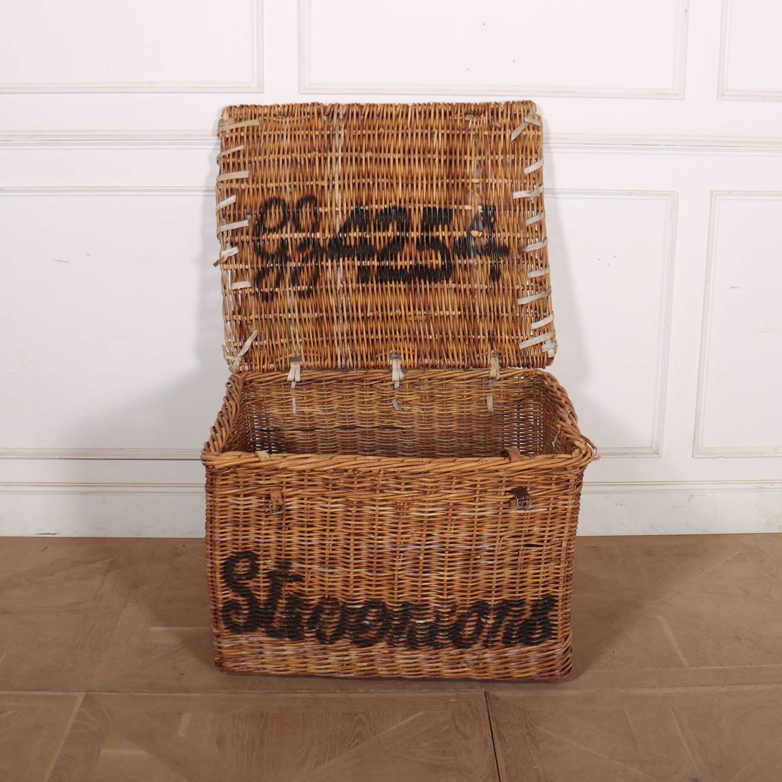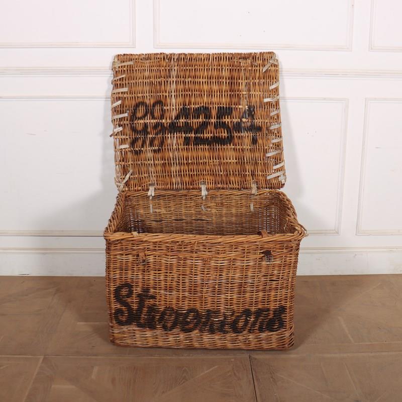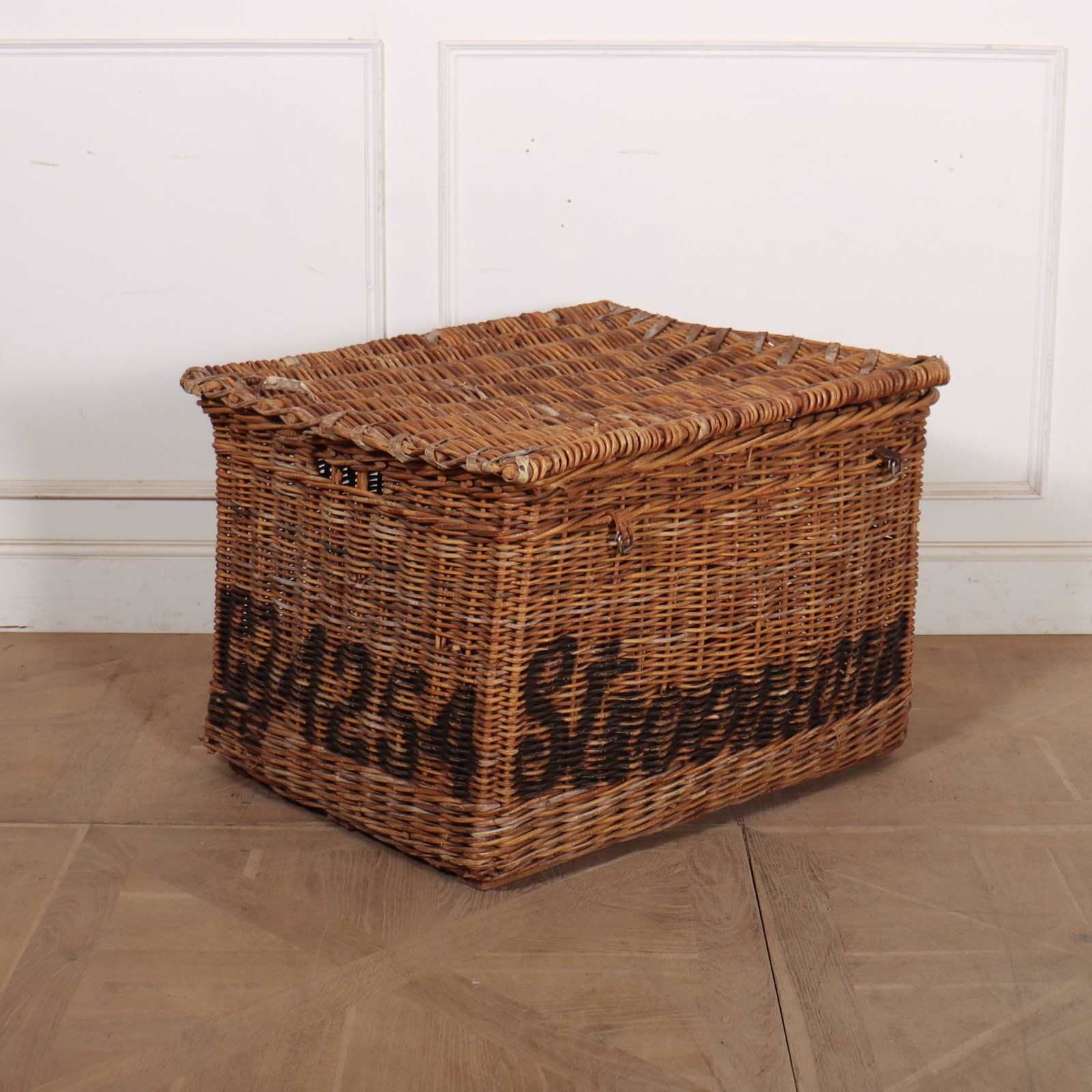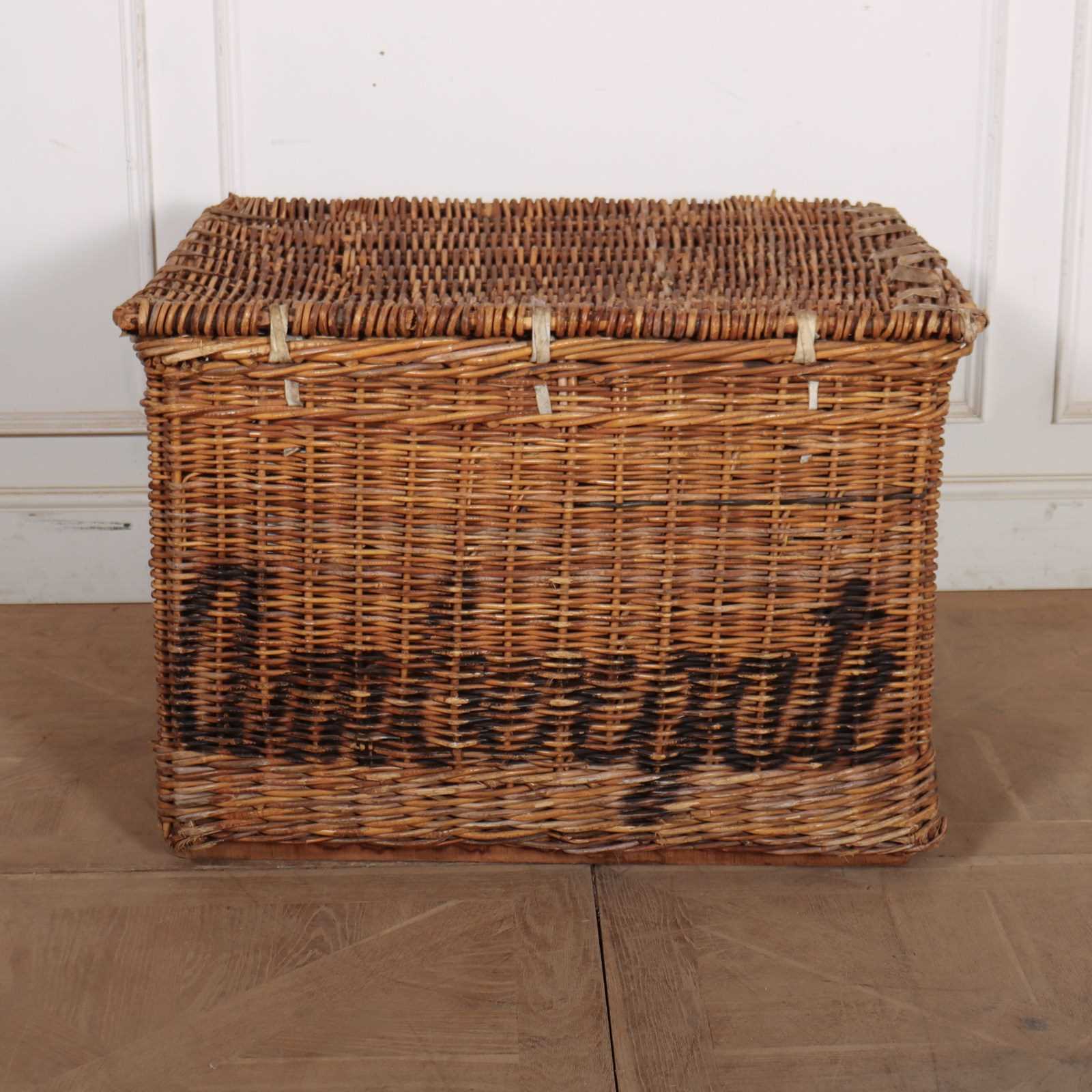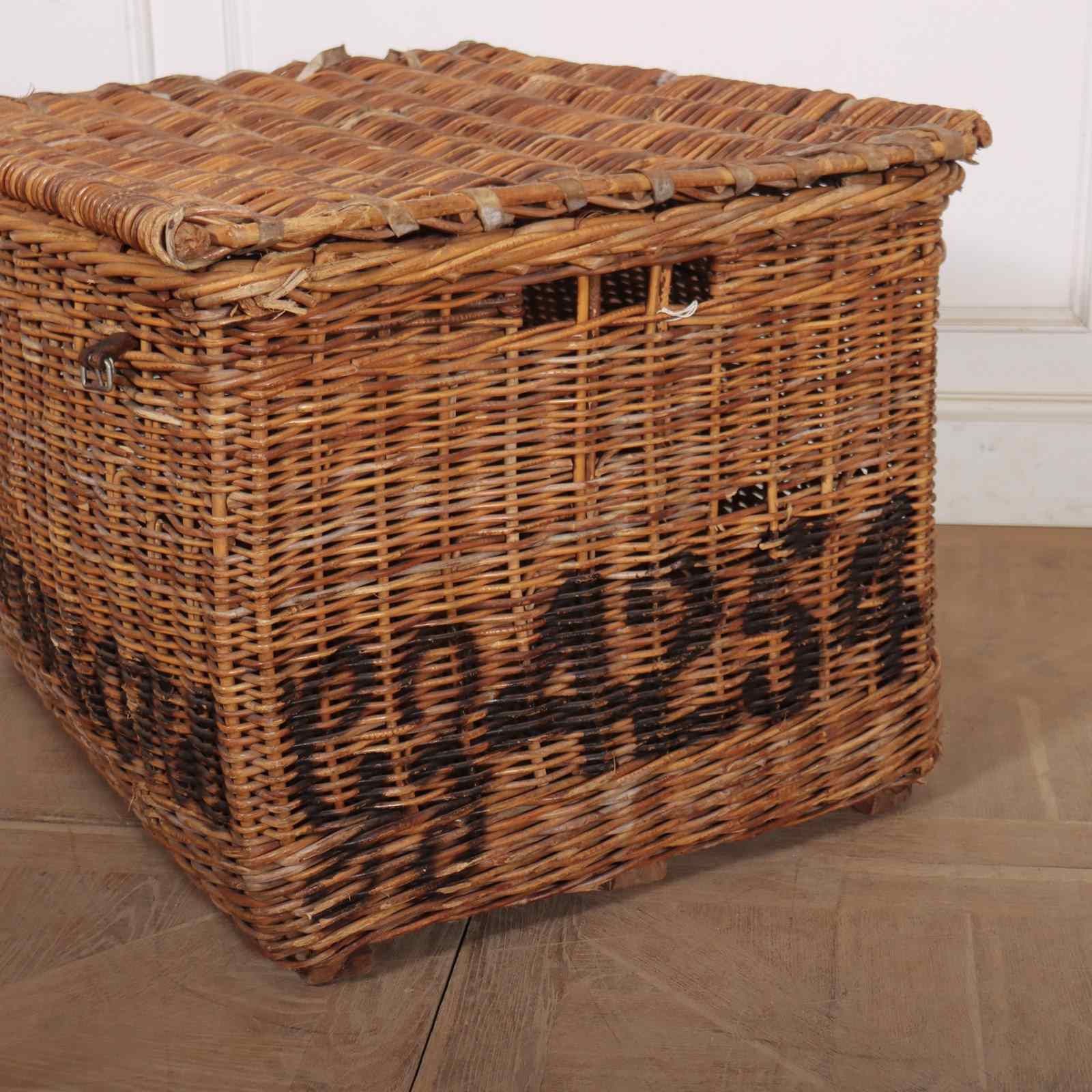 English wicker basket from a fabric mill. Would make a wonderful log basket. 1900.