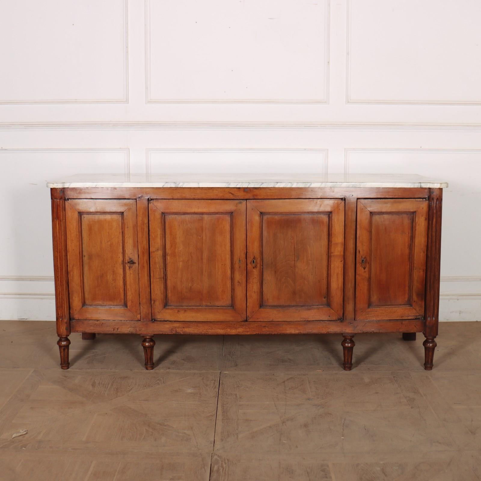 Wonderful 18th century French fruitwood enfilade with a thick marble top and great colour. Would make a great double vanity unit. 1780.