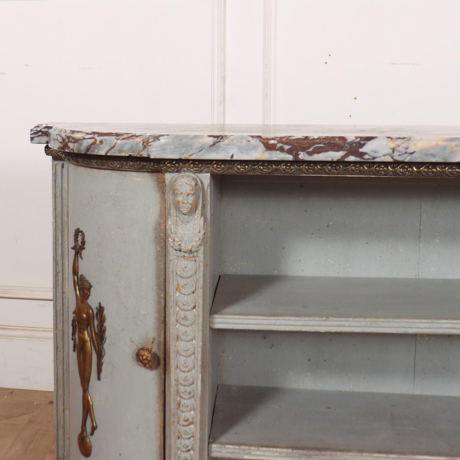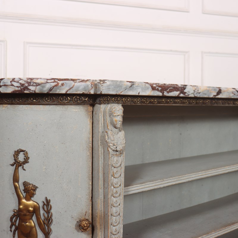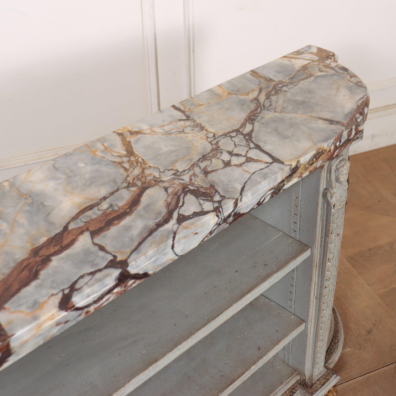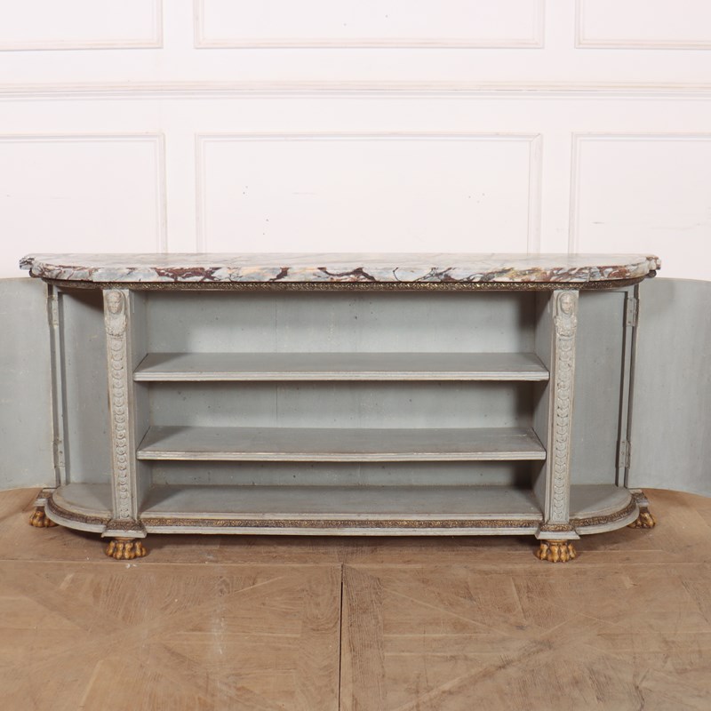 Interesting 19th Century French marble top sidebaord with carved lion paw feet and a 3cm thick marble top. Adjustable shelving to the centre. 1890