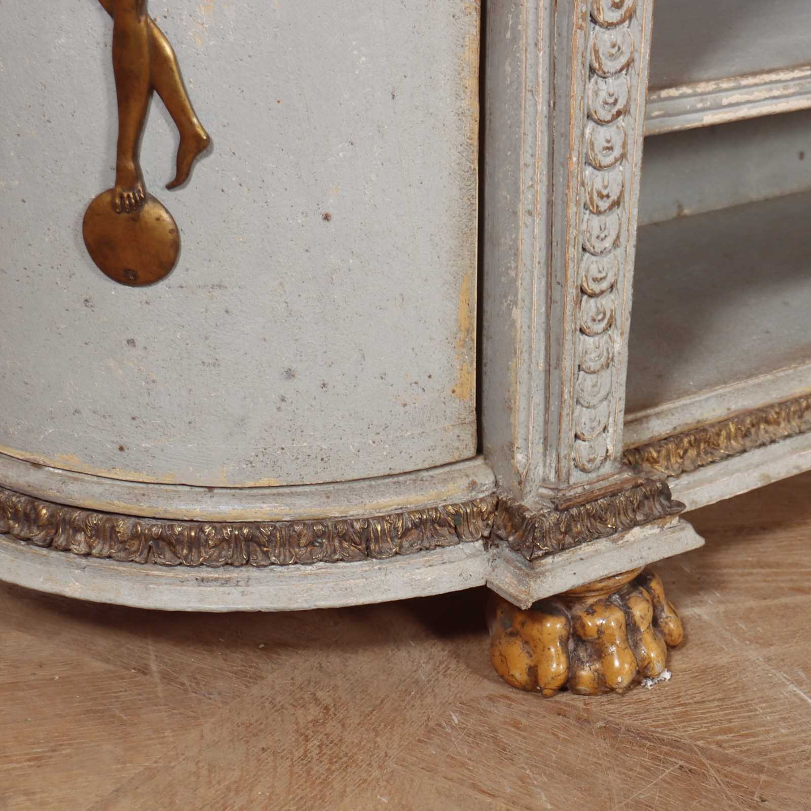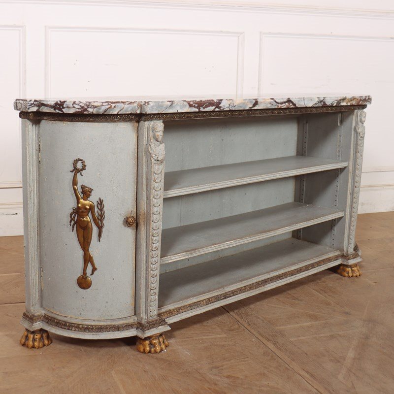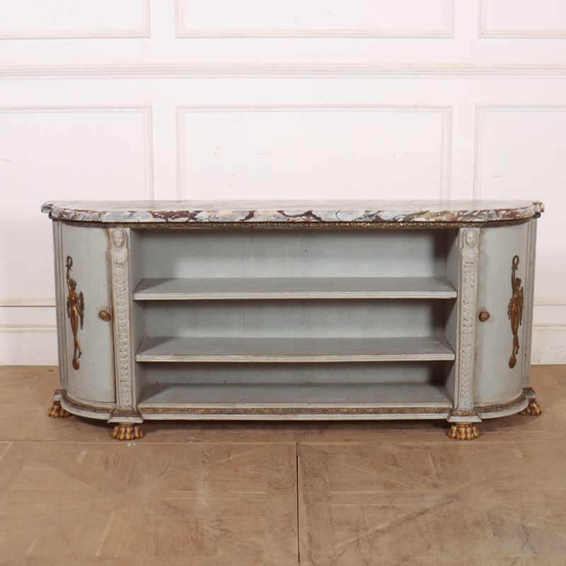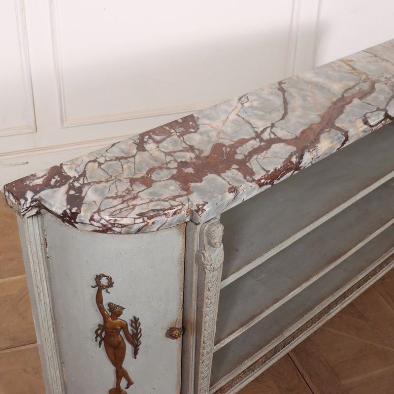 Interesting 19th Century French marble top sidebaord with carved lion paw feet and a 3cm thick marble top. Adjustable shelving to the centre. 1890