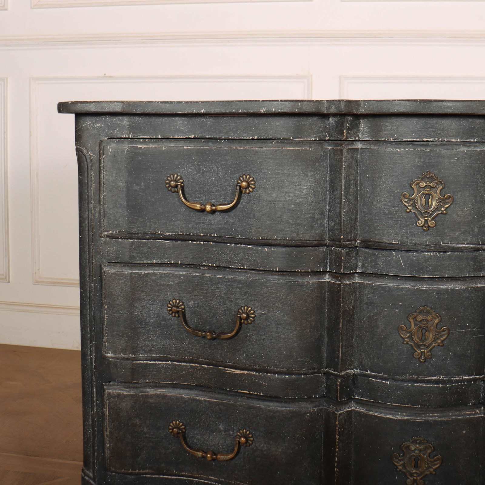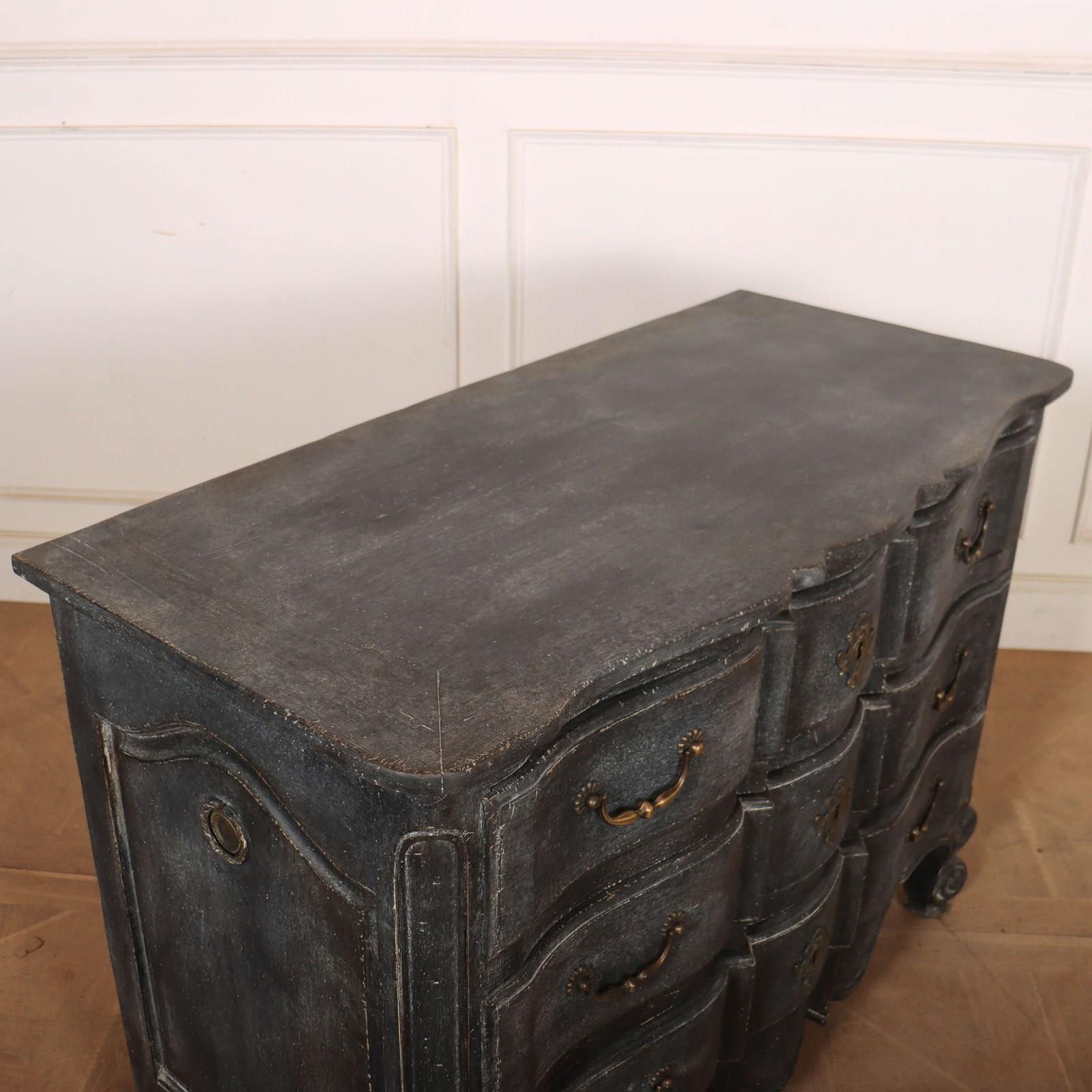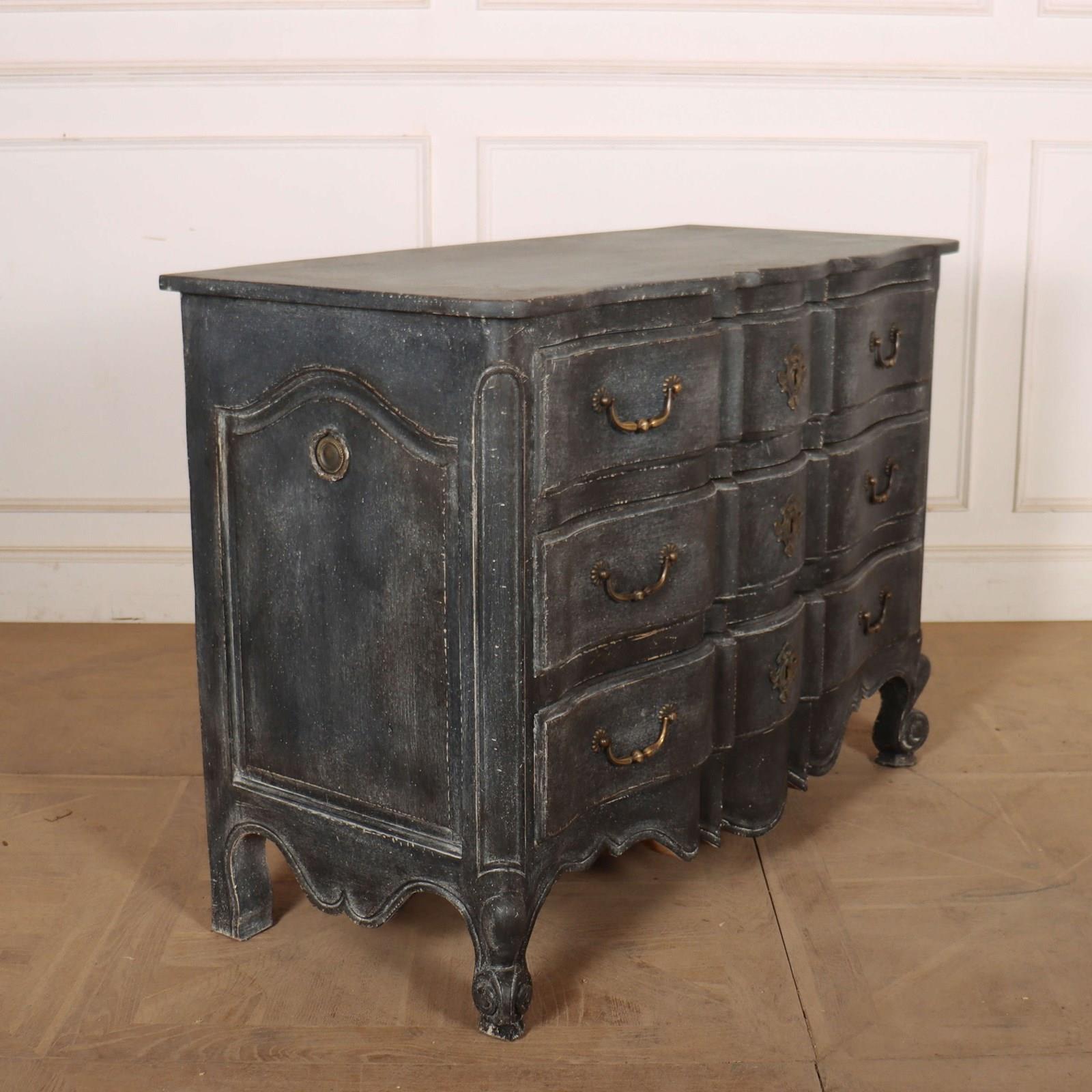 Late 19th century French 3 drawer painted serpentine front commode. 1880.