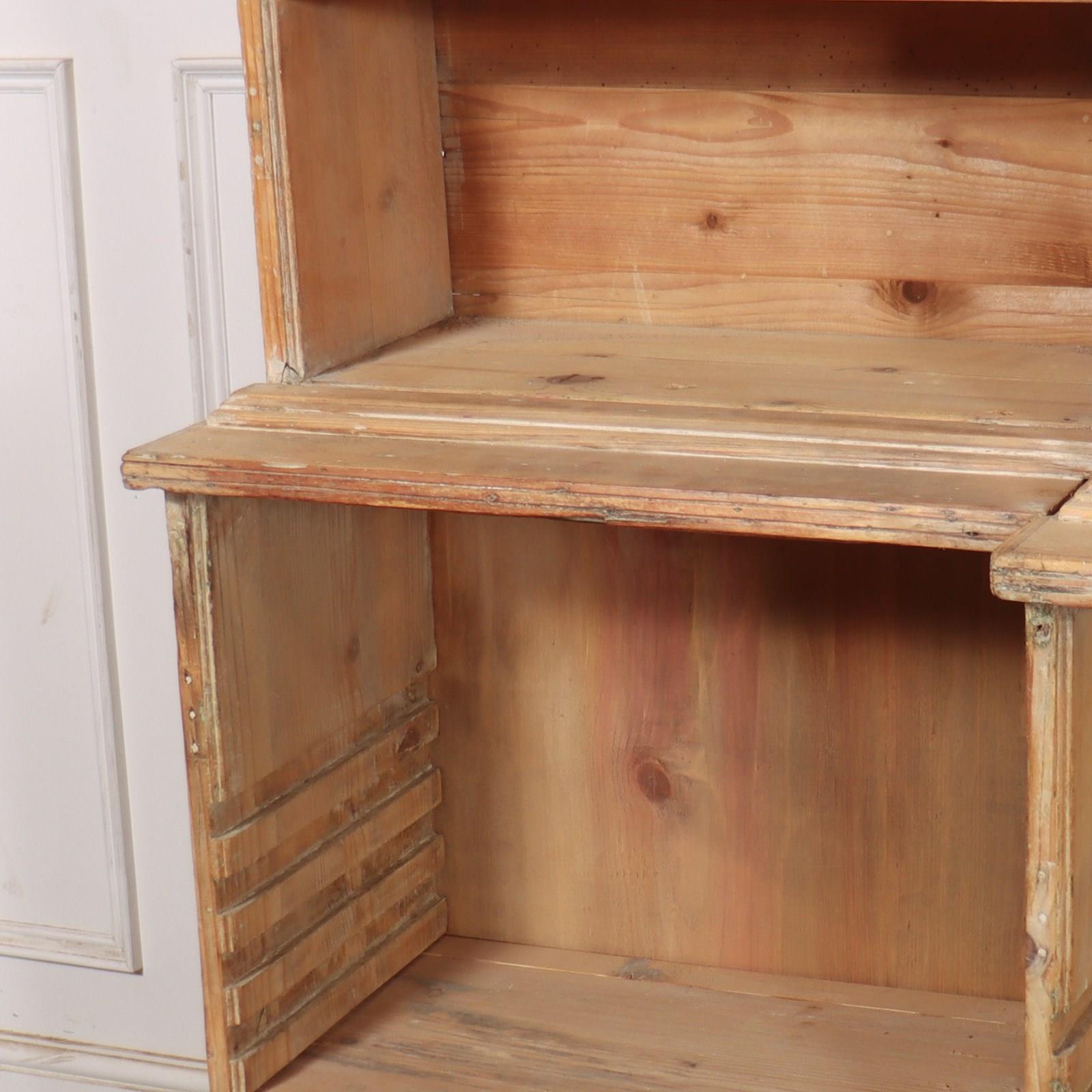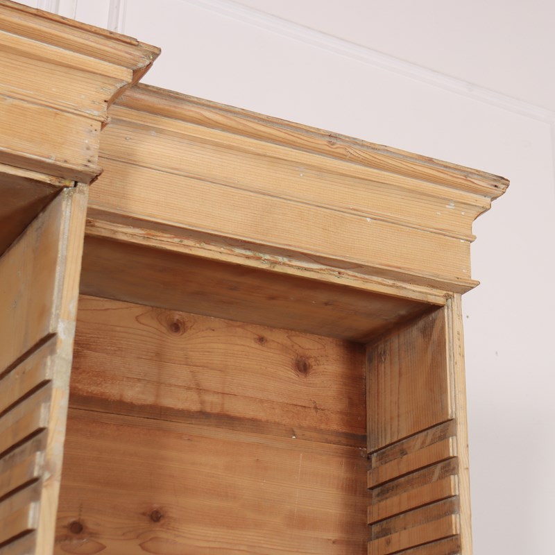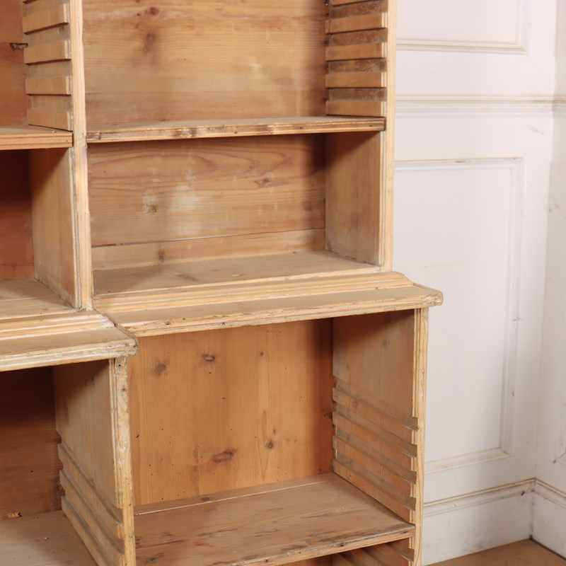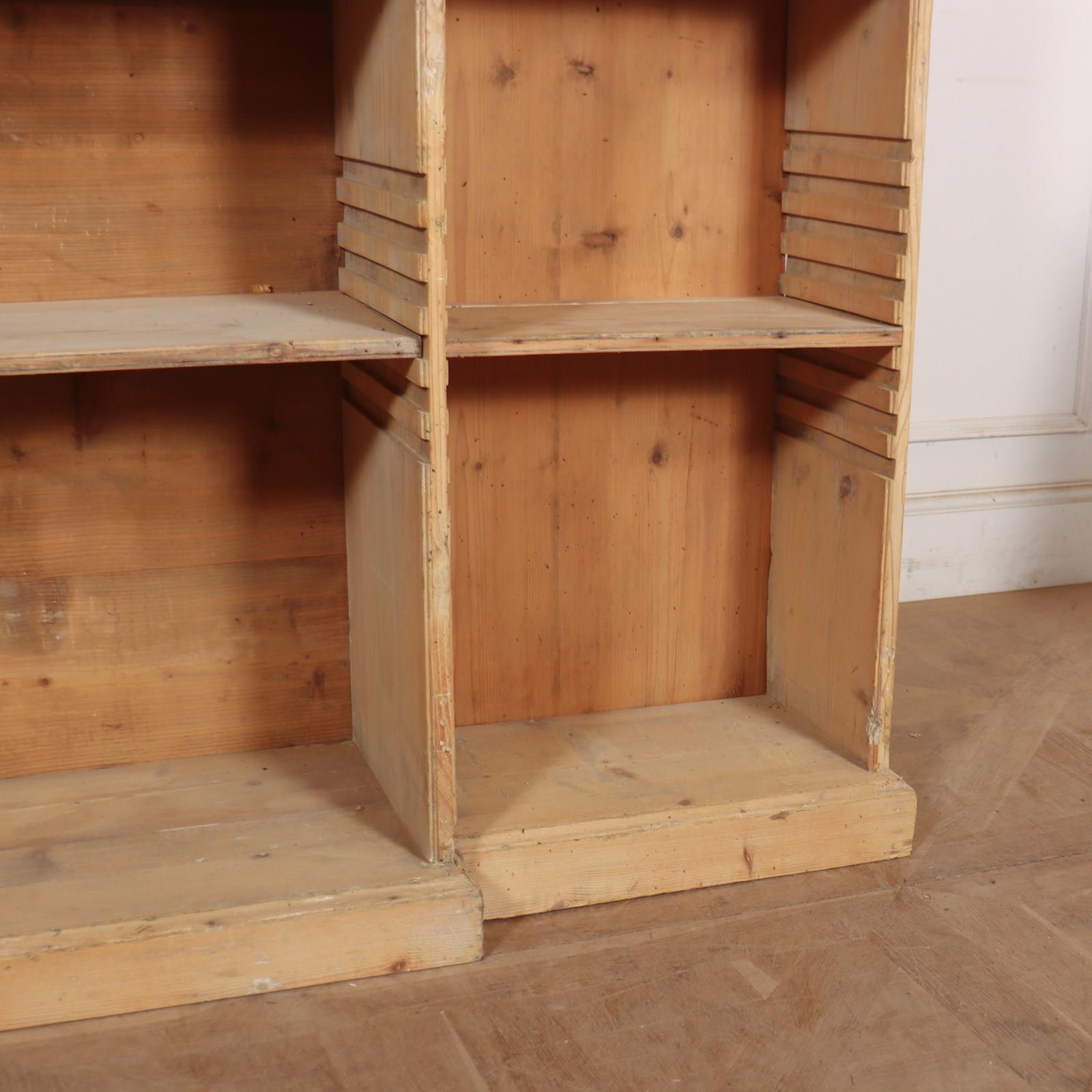 Late 18th Century George III breakfront open bookcase. Lovely dry bleached colour with adjustable shelving in both upper and lower sections. 1780