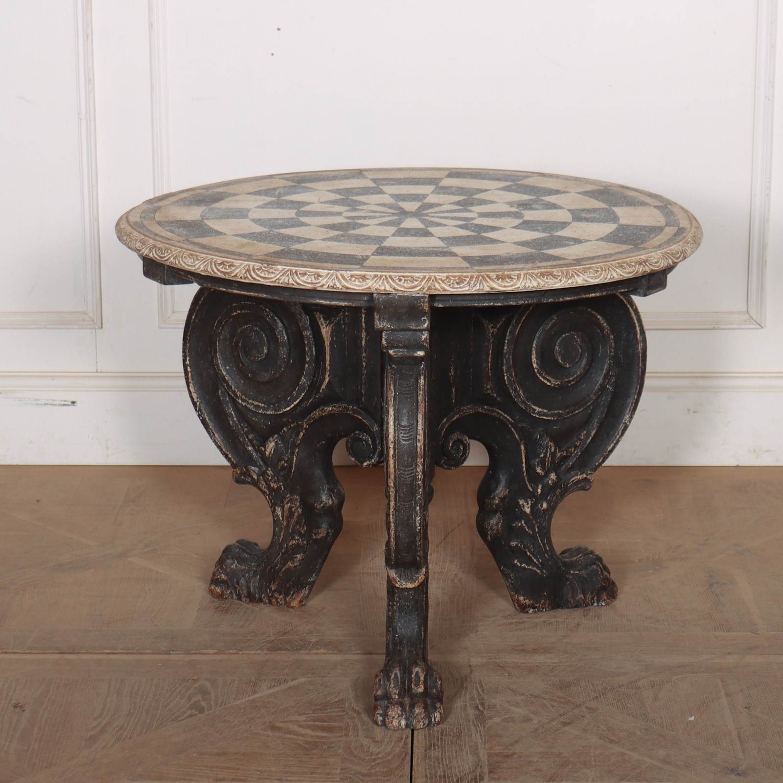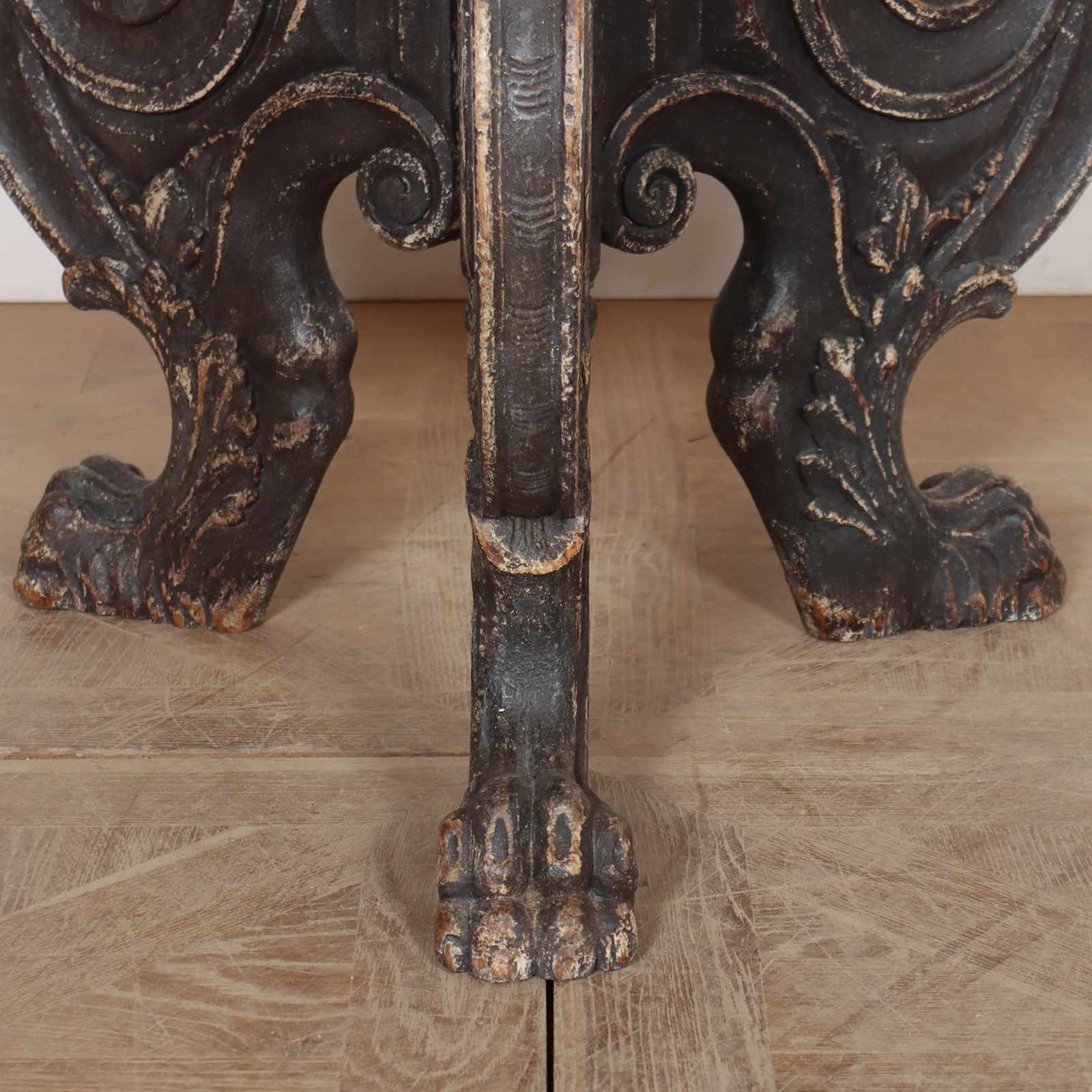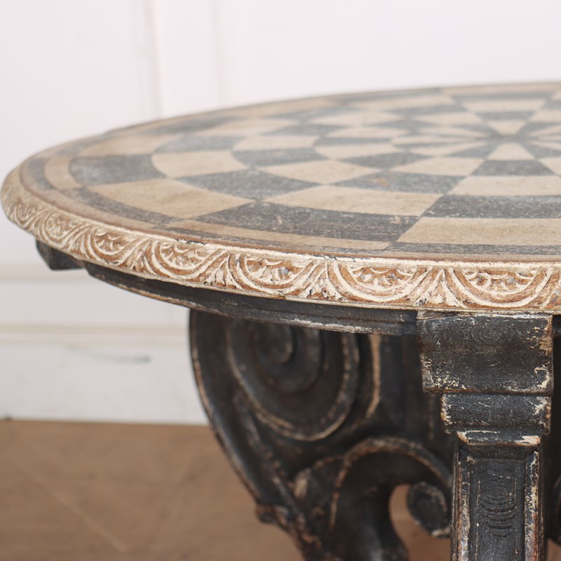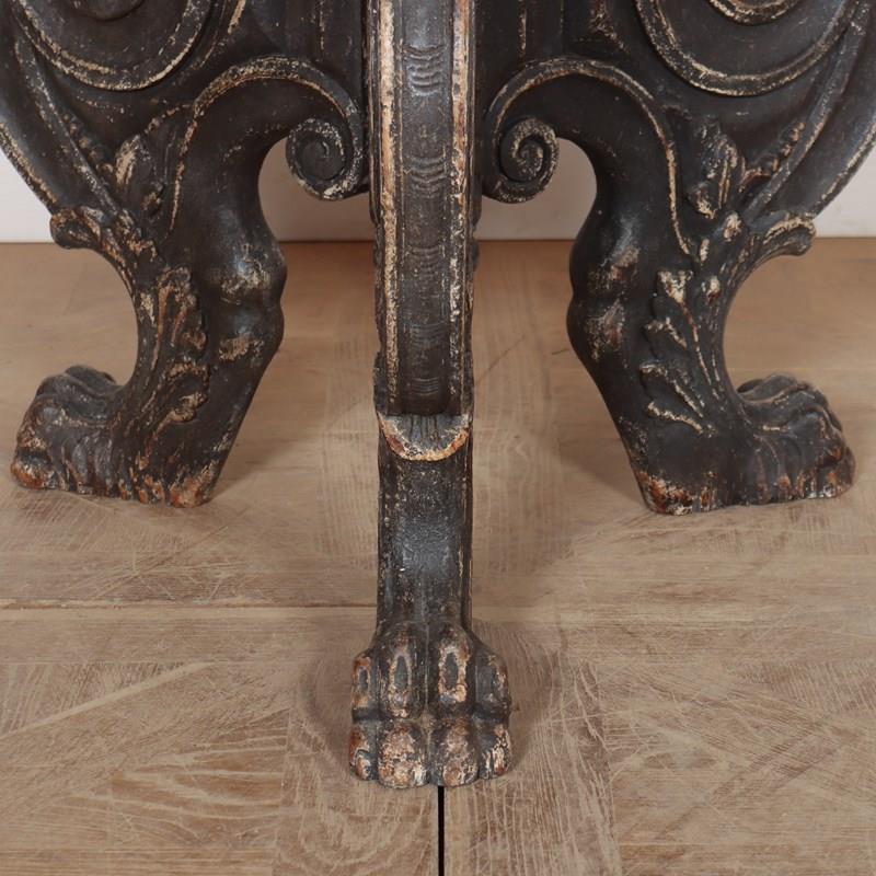 Really quirky German 19th C painted lamp table with a carved base. 1890