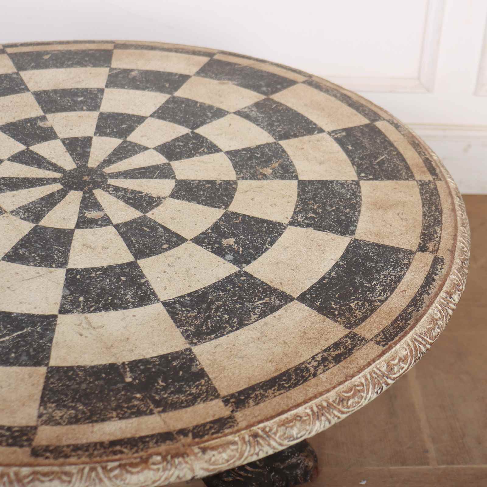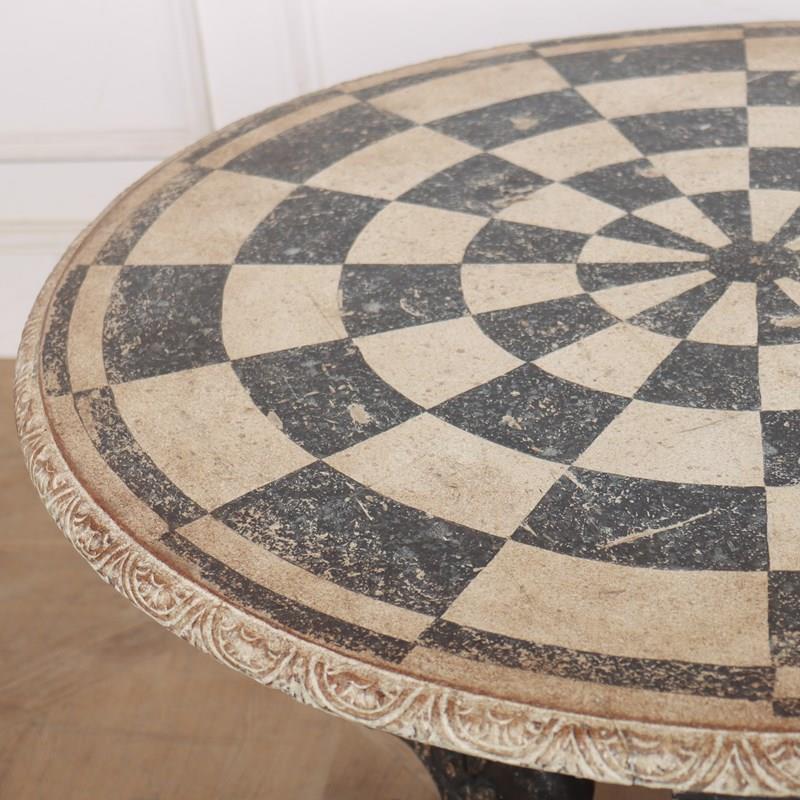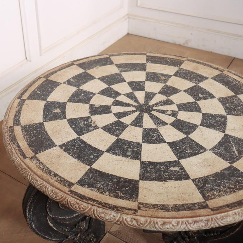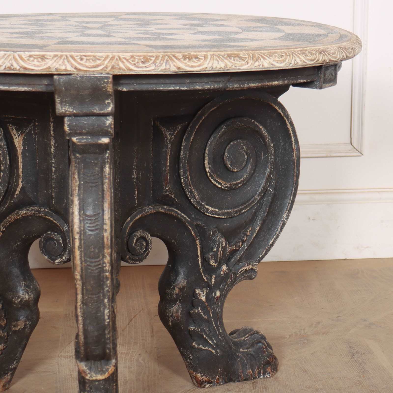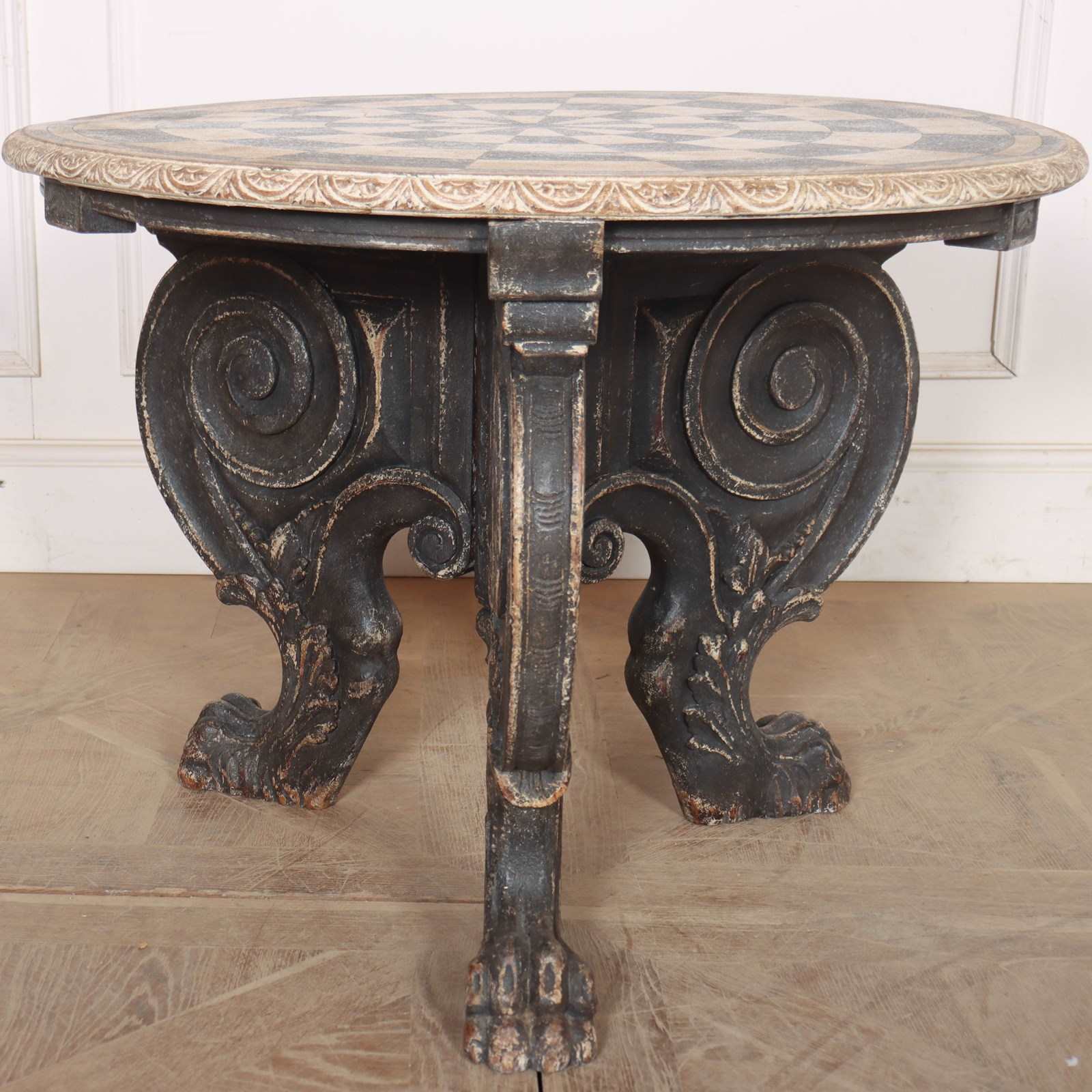 Really quirky German 19th C painted lamp table with a carved base. 1890
