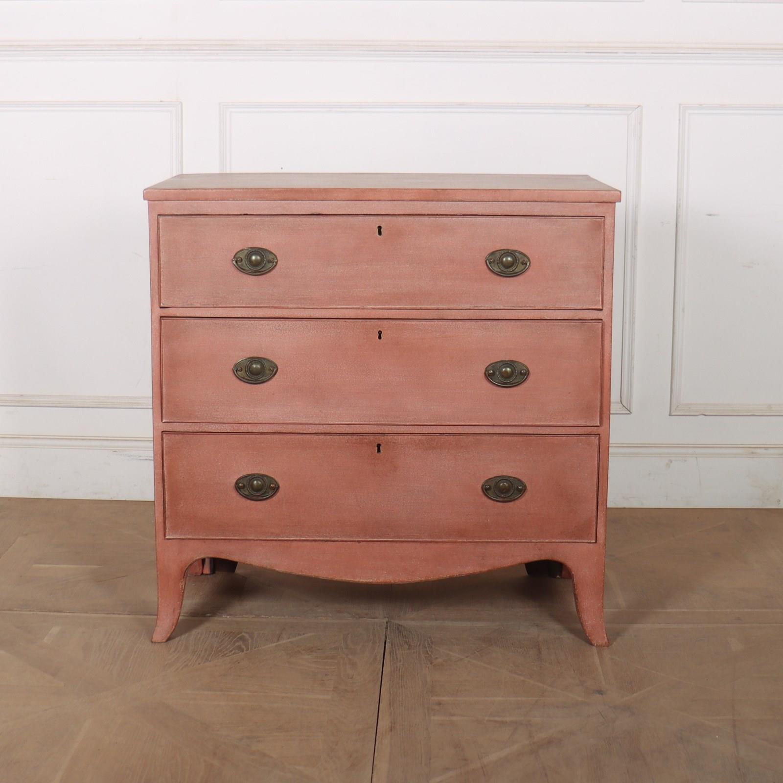 Early 19th Century English painted three drawer chest of drawers with later paint. 1820