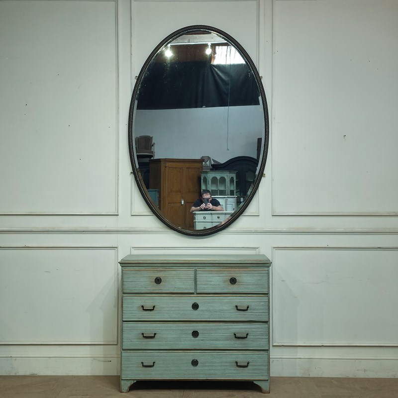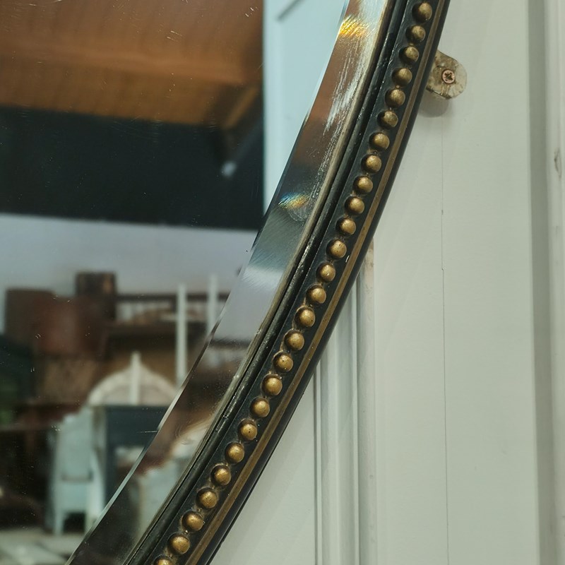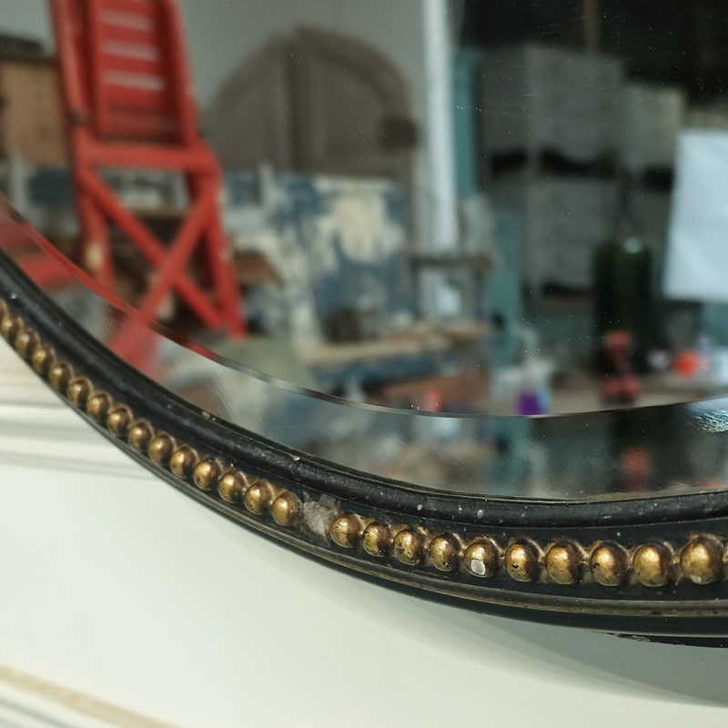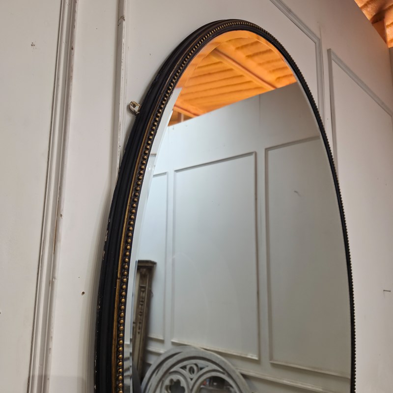 Huge Irish 19th C painted and gilt oval hall mirror, good bevelled plate. 1880