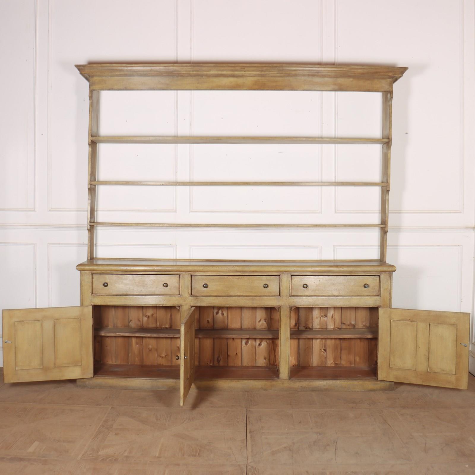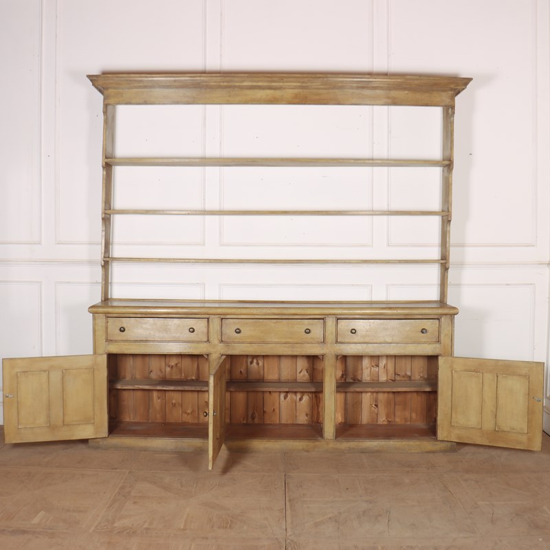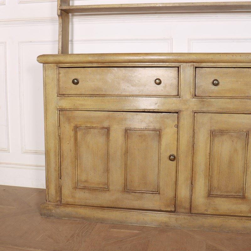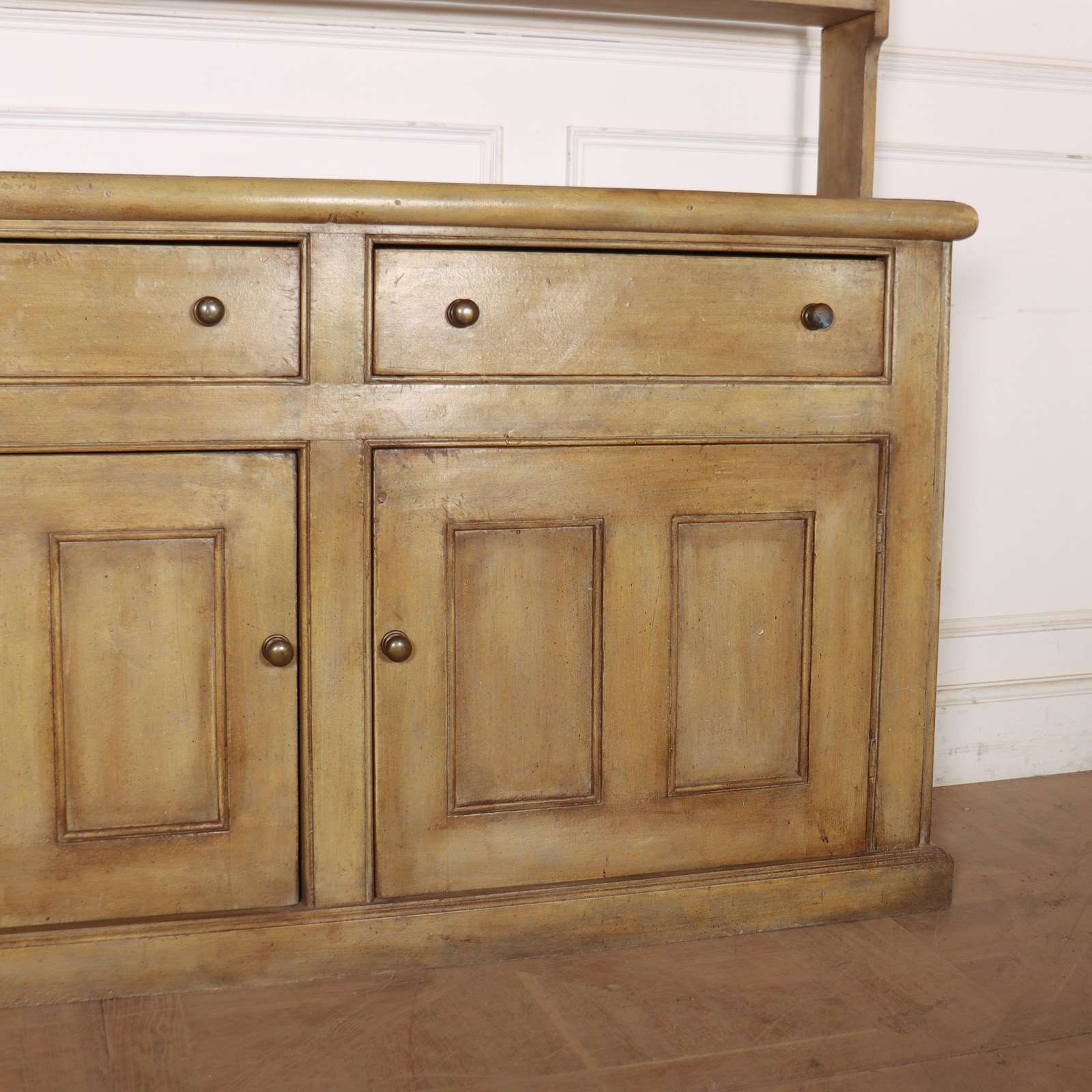 Large 19th century English painted country house pine dresser and rack. 1840.