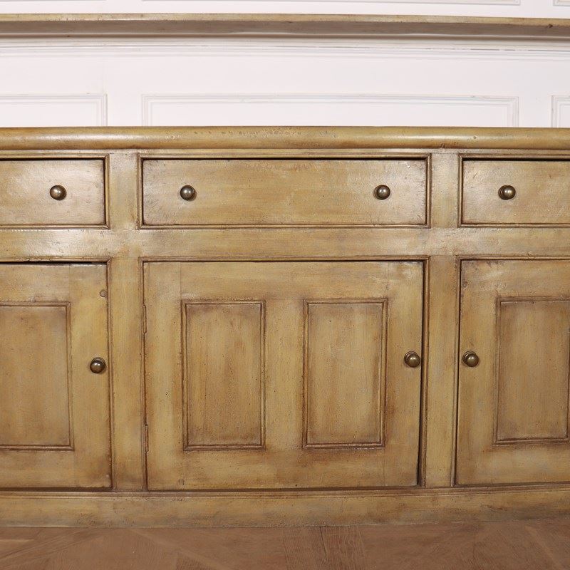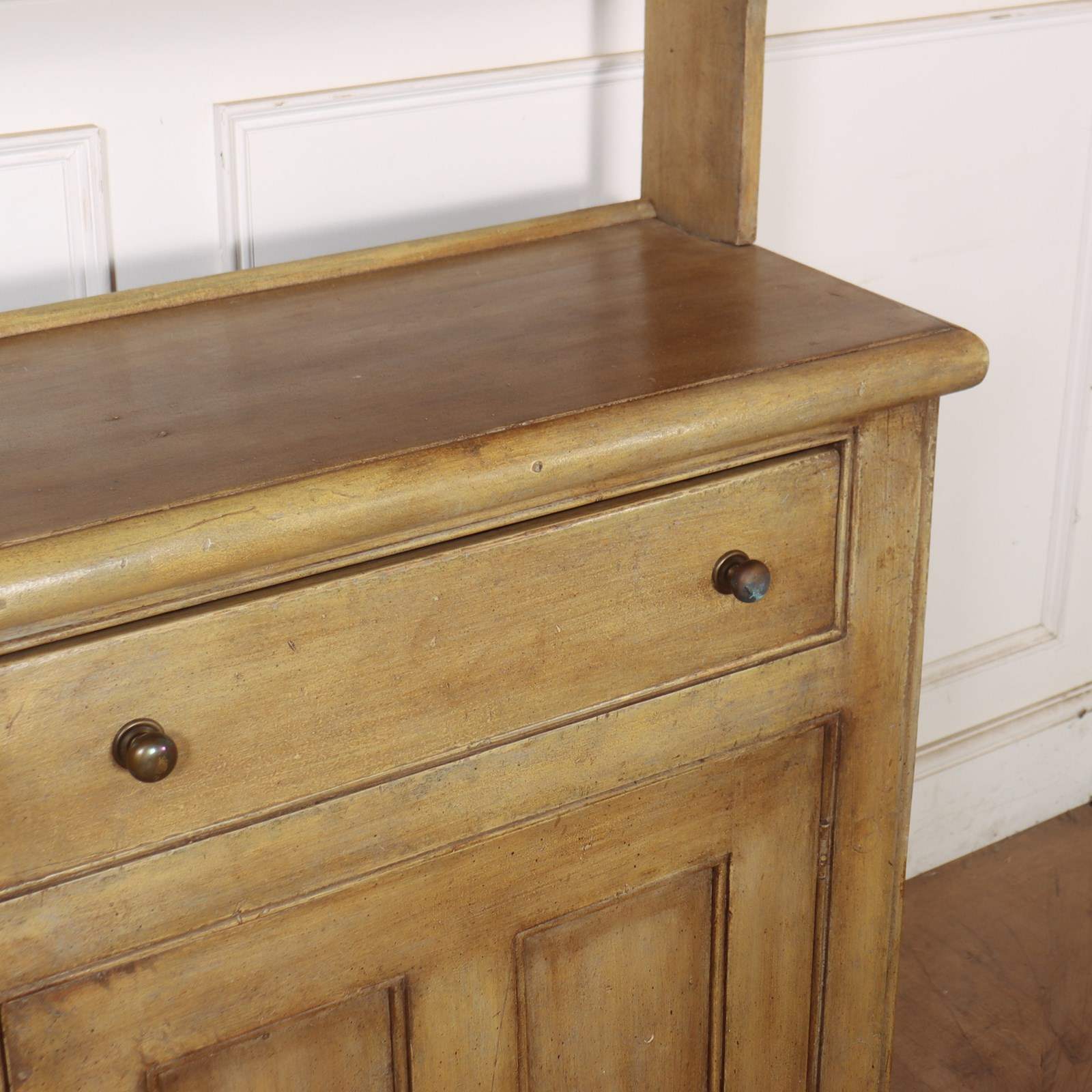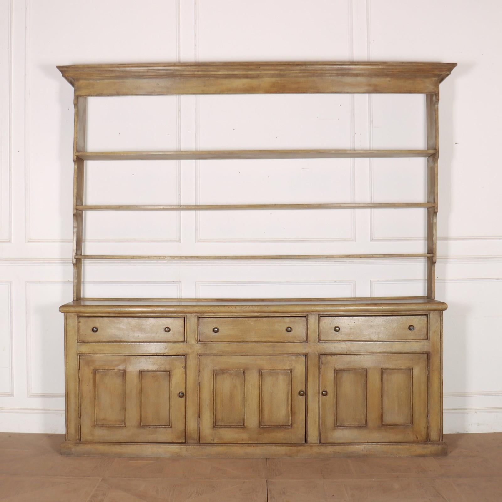 Large 19th century English painted country house pine dresser and rack. 1840.