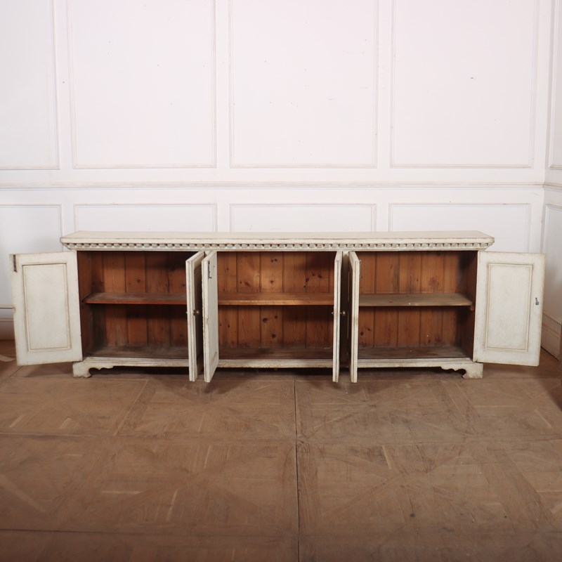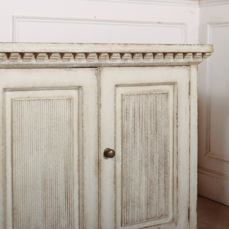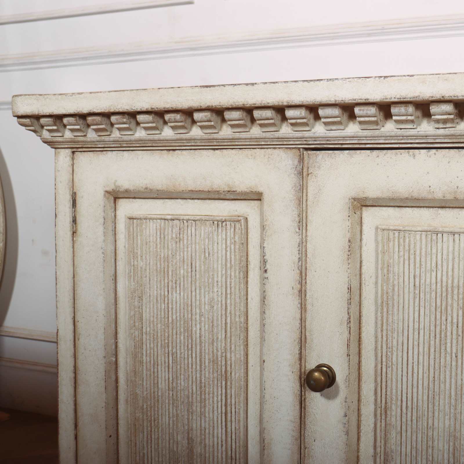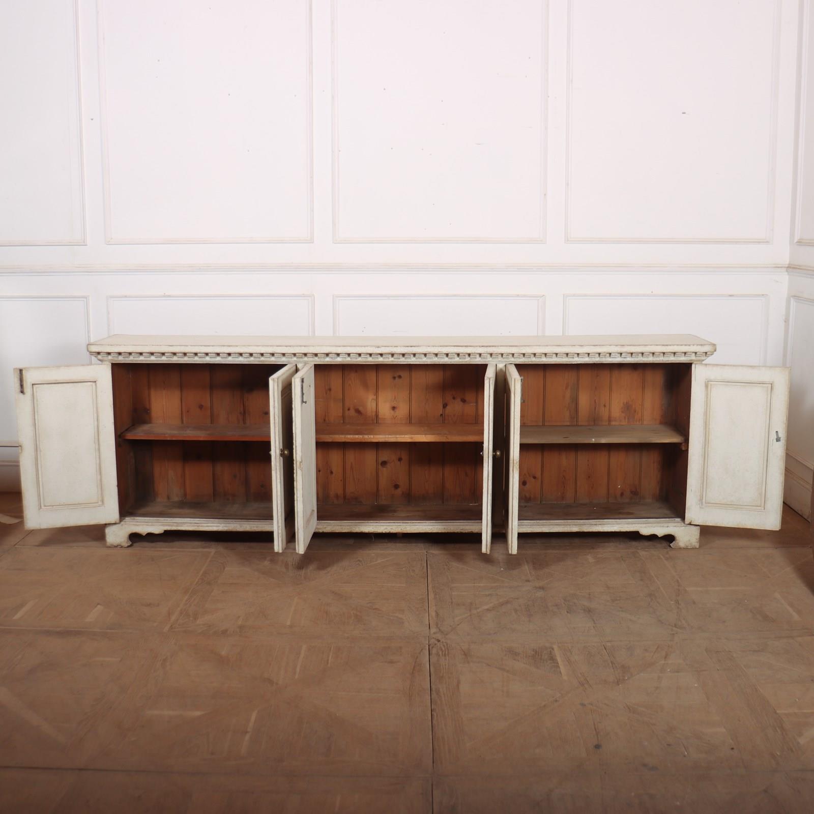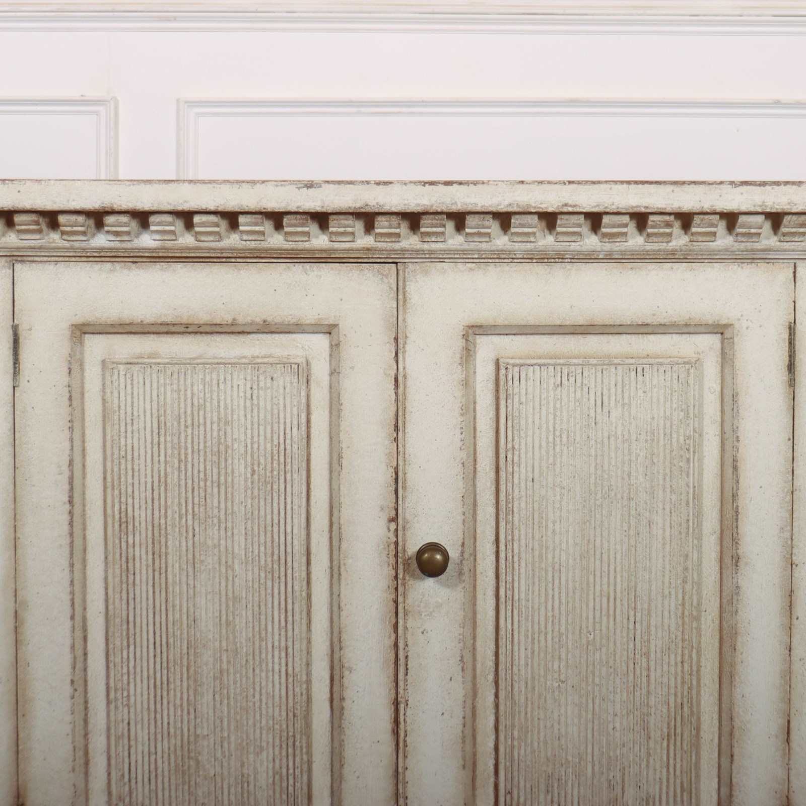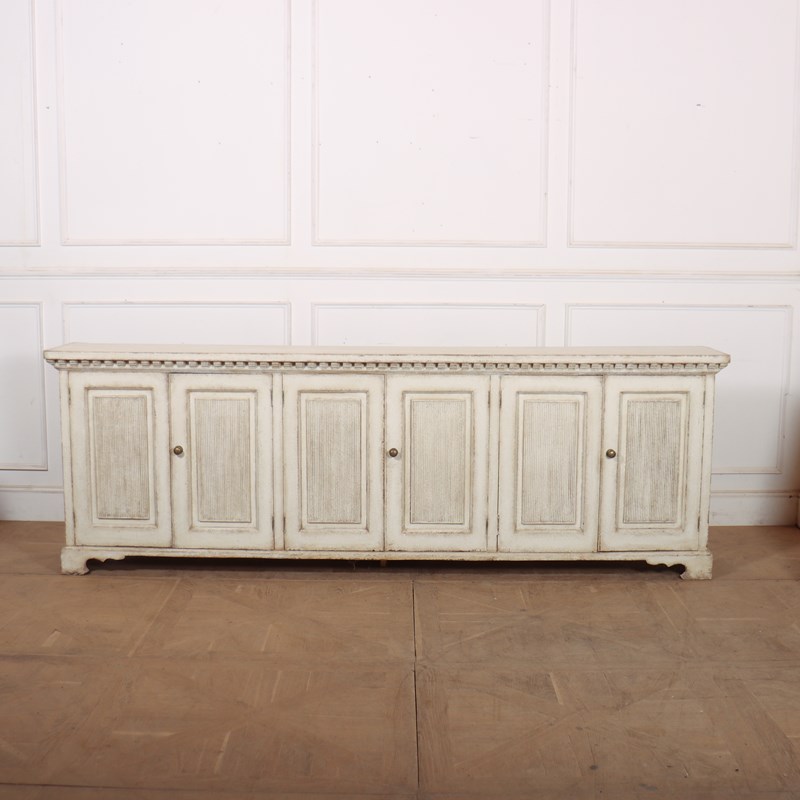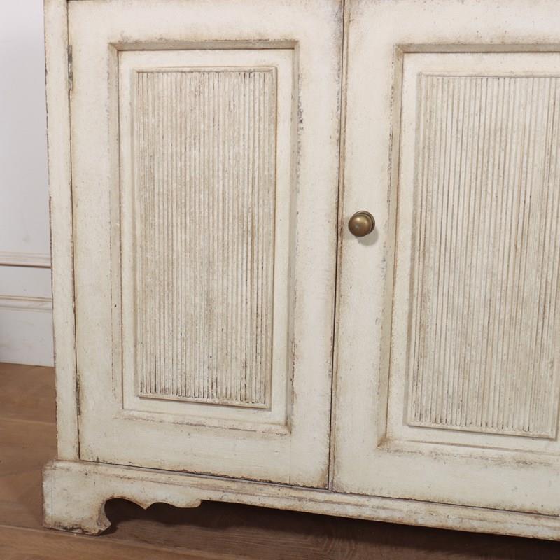 Long 19th Century Swedish style painted pine sideboard with reeded doors and decoration. 1840