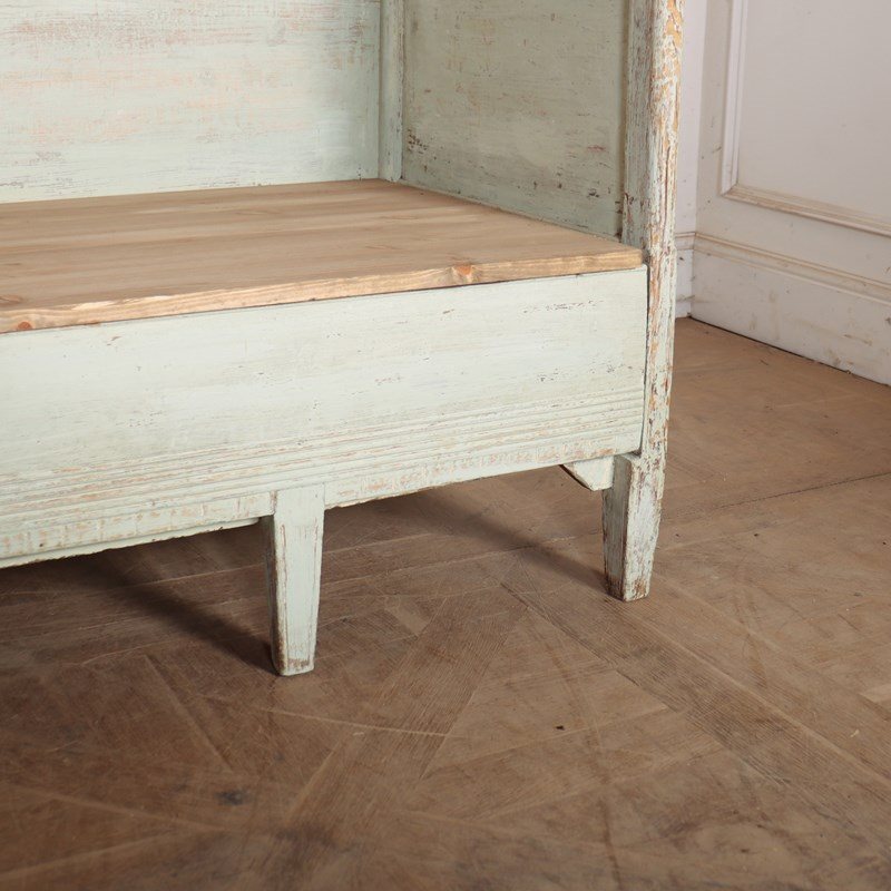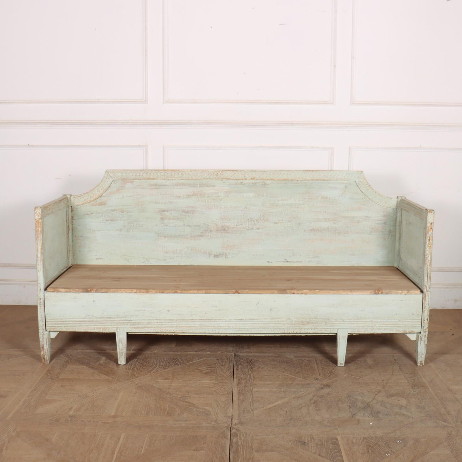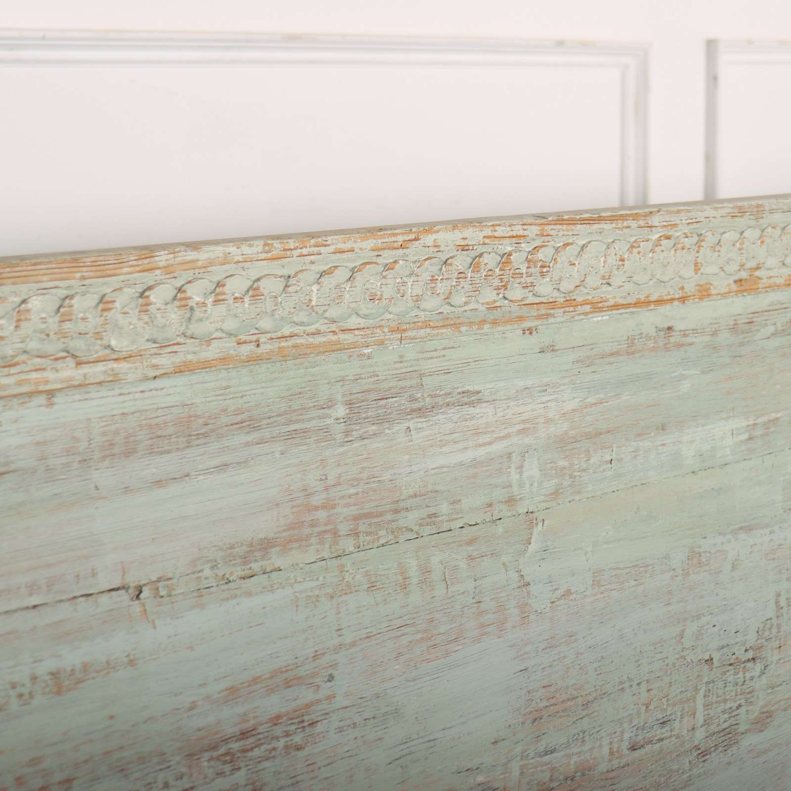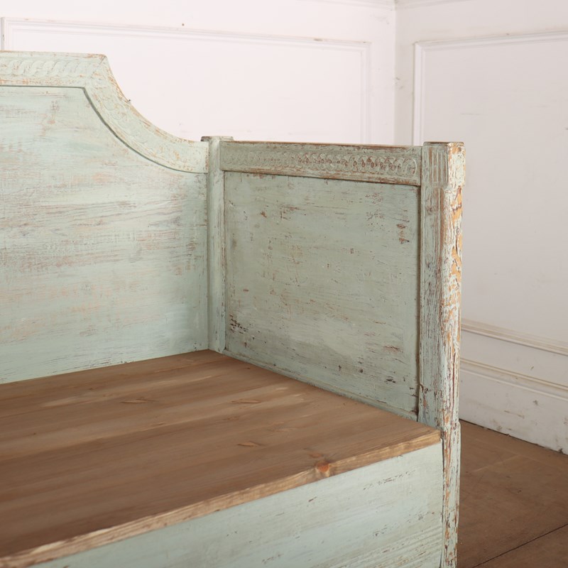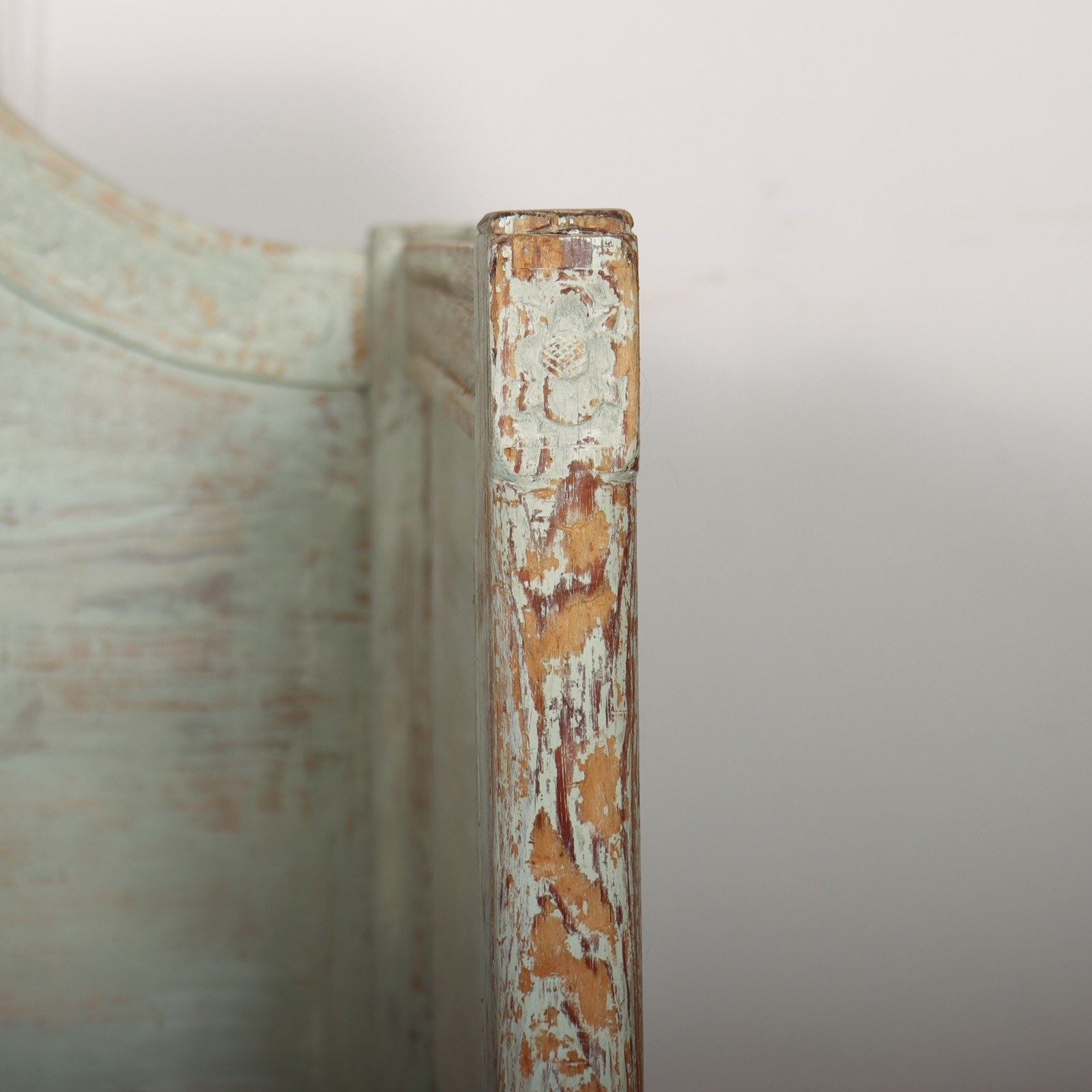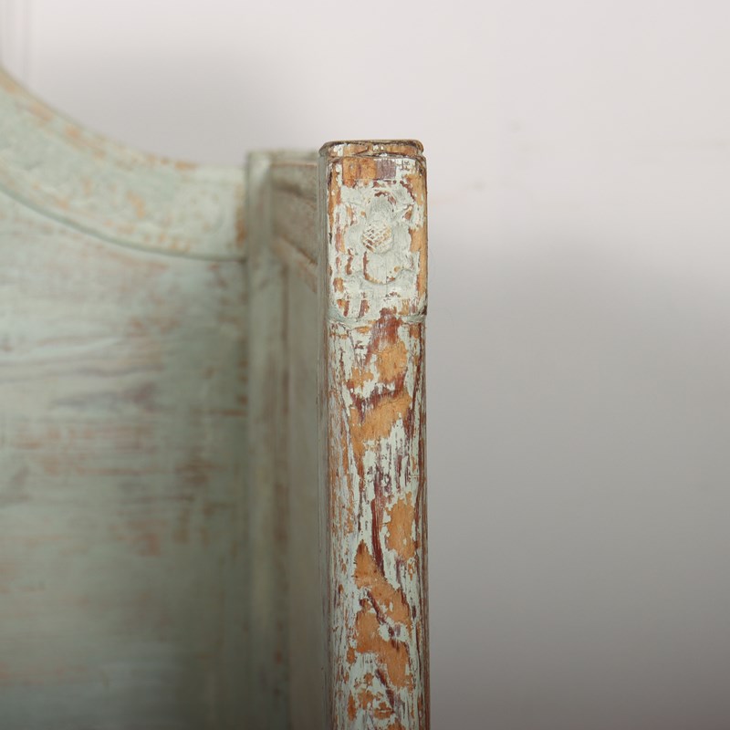 Early 19th century original painted Swedish pine bench with carved decoration. Waiting for an upholstered seat. 1820.