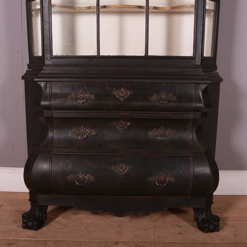 Late 19th C painted Dutch bombe display cupboard. 1890.