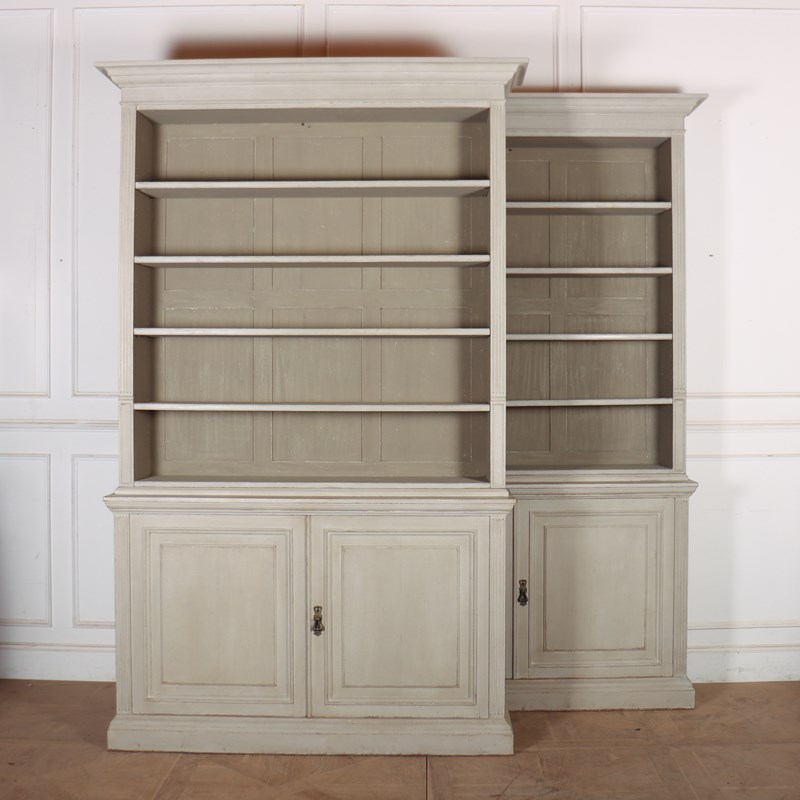 Good pair of 19th century English country house bookcases with adjustable shelves. 1860.