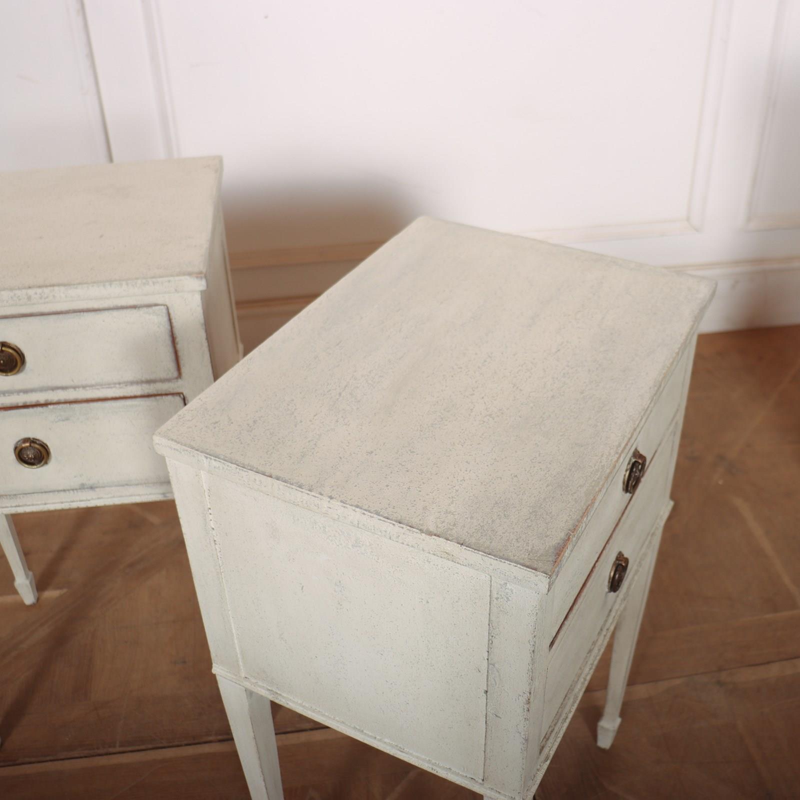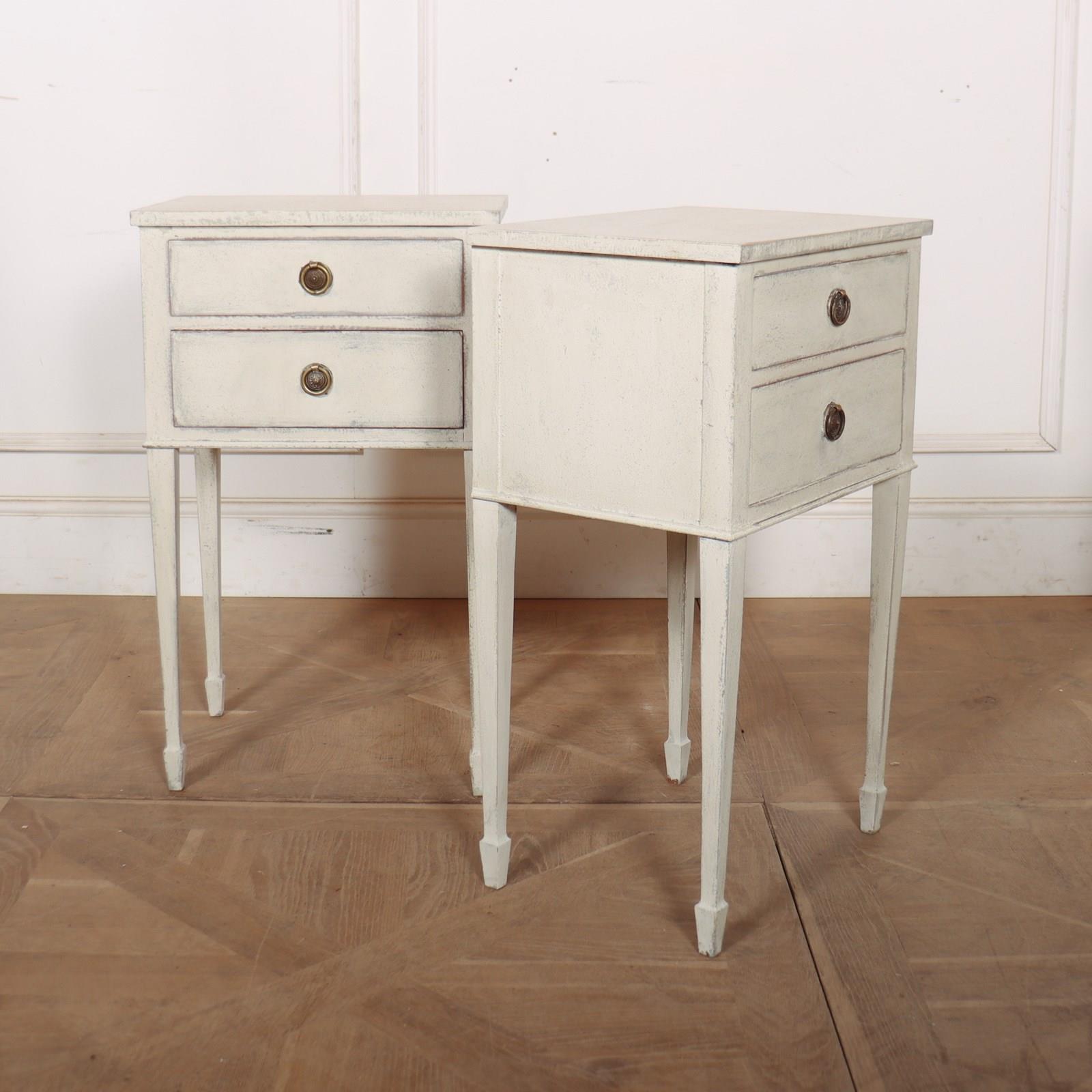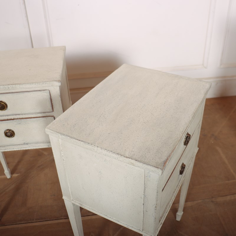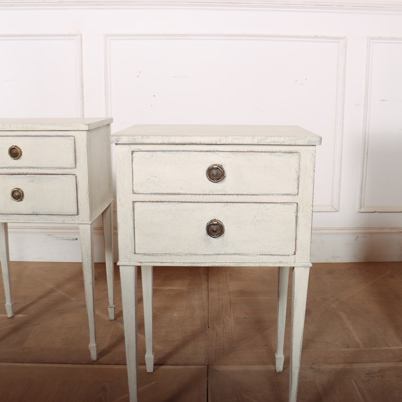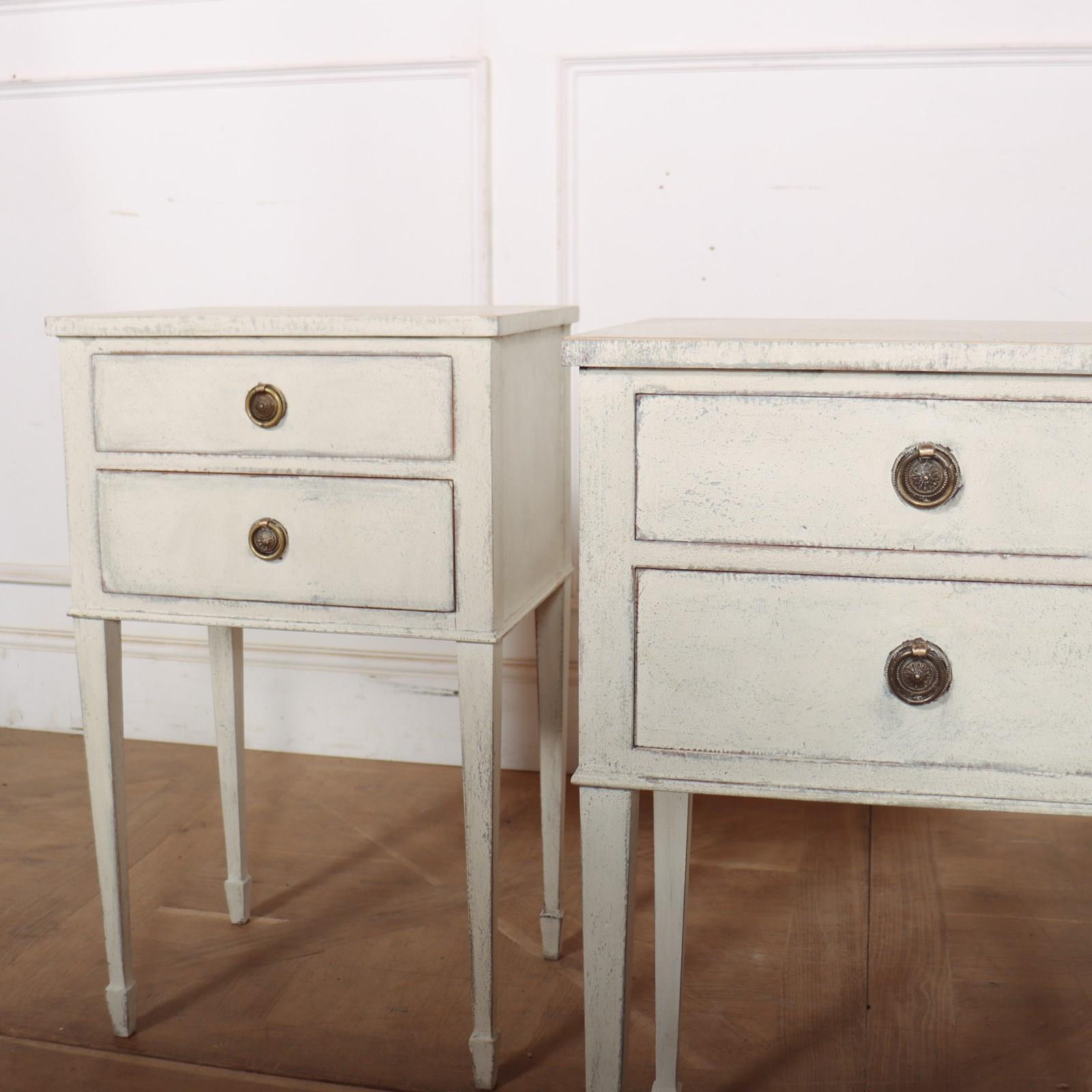 Pair of early 20th Century Swedish two drawer bedside tables with later paint.