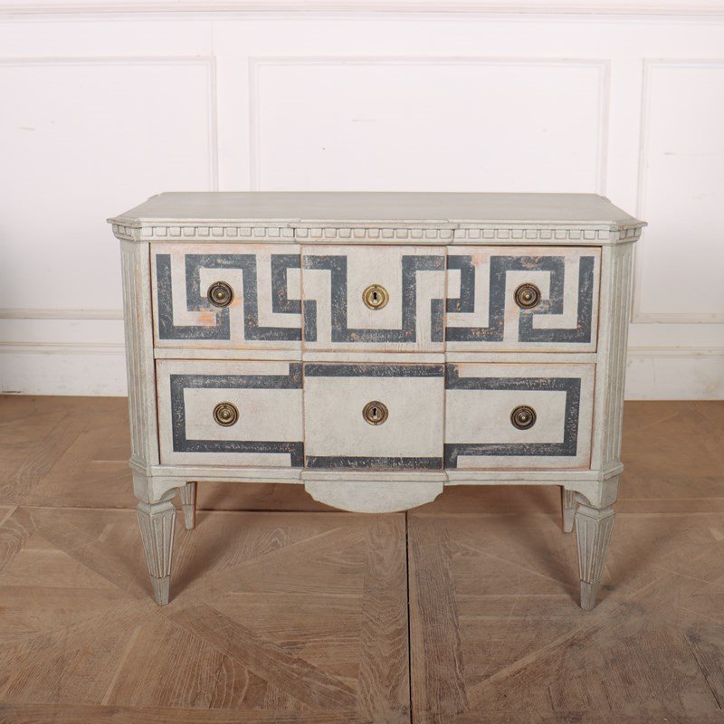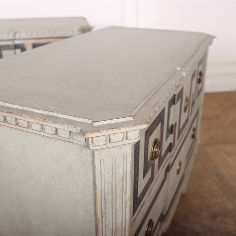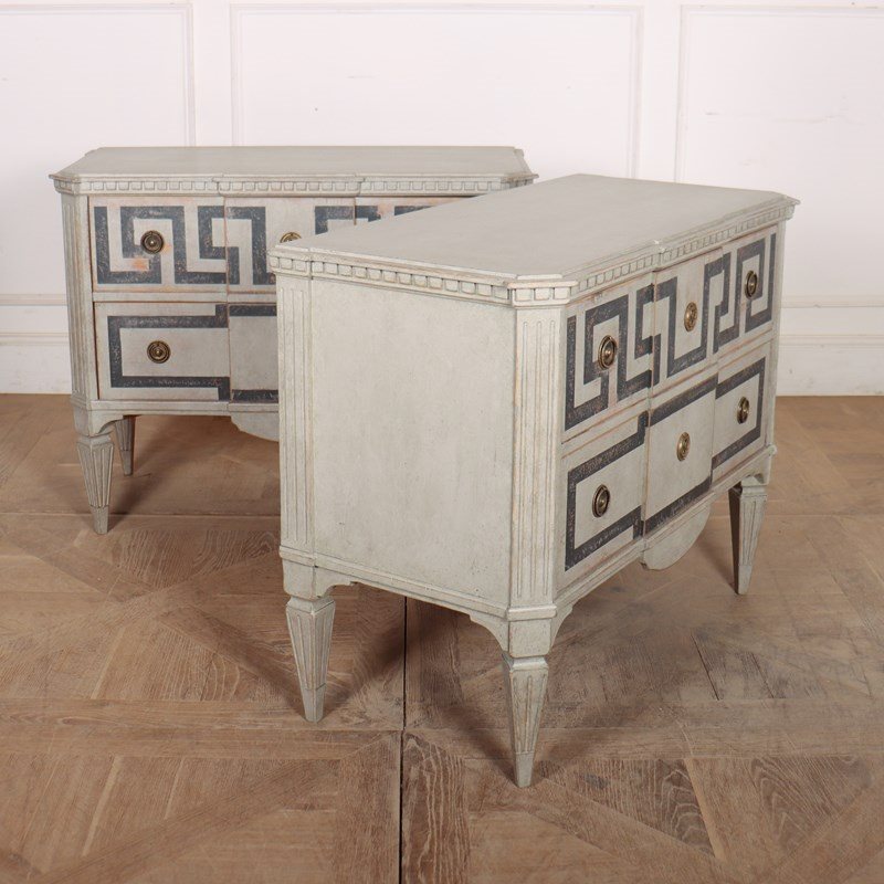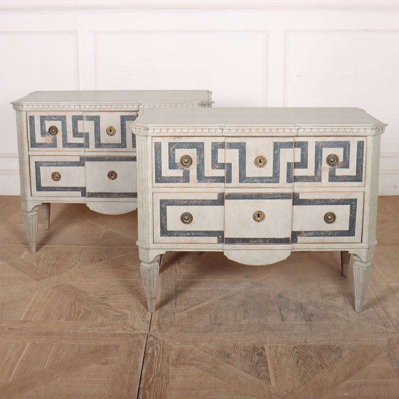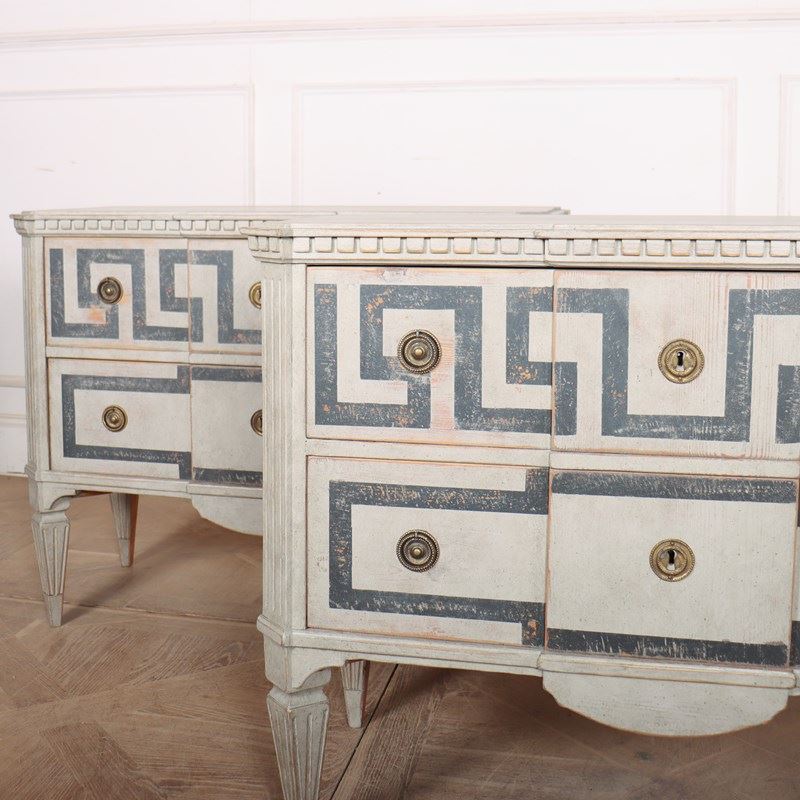 Pair of 19th Century Swedish painted and decorated pine commodes. 1890