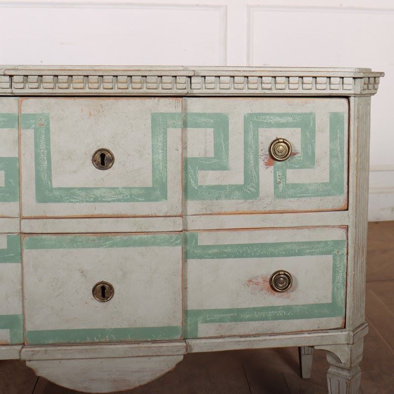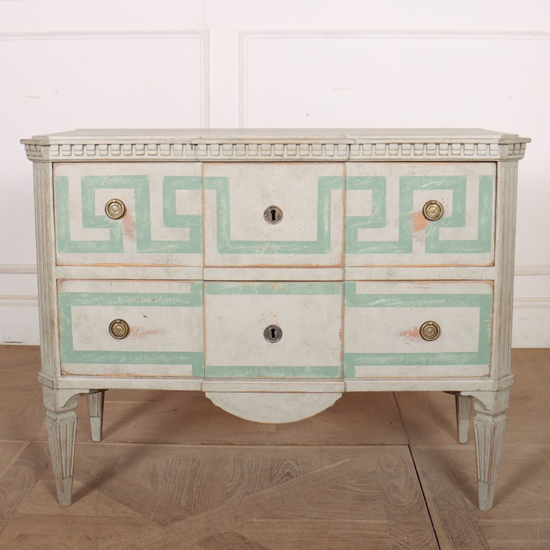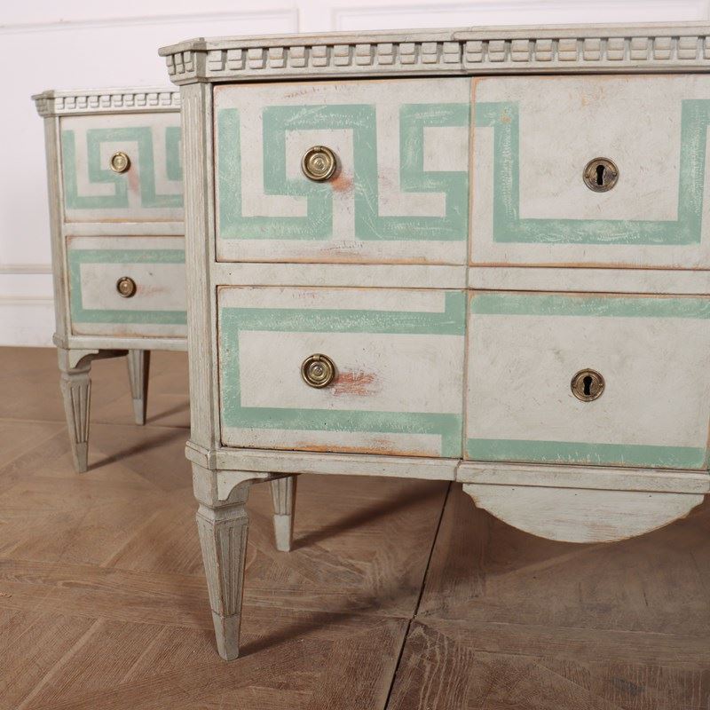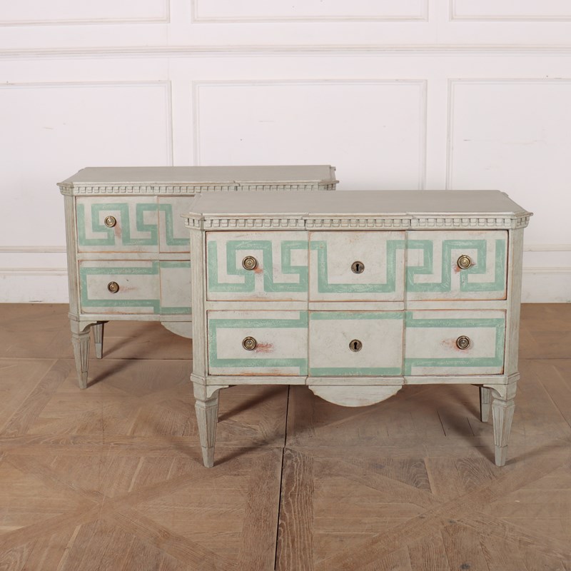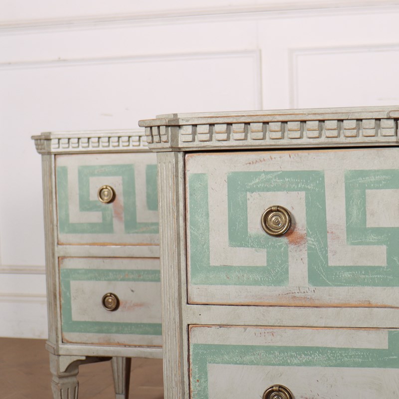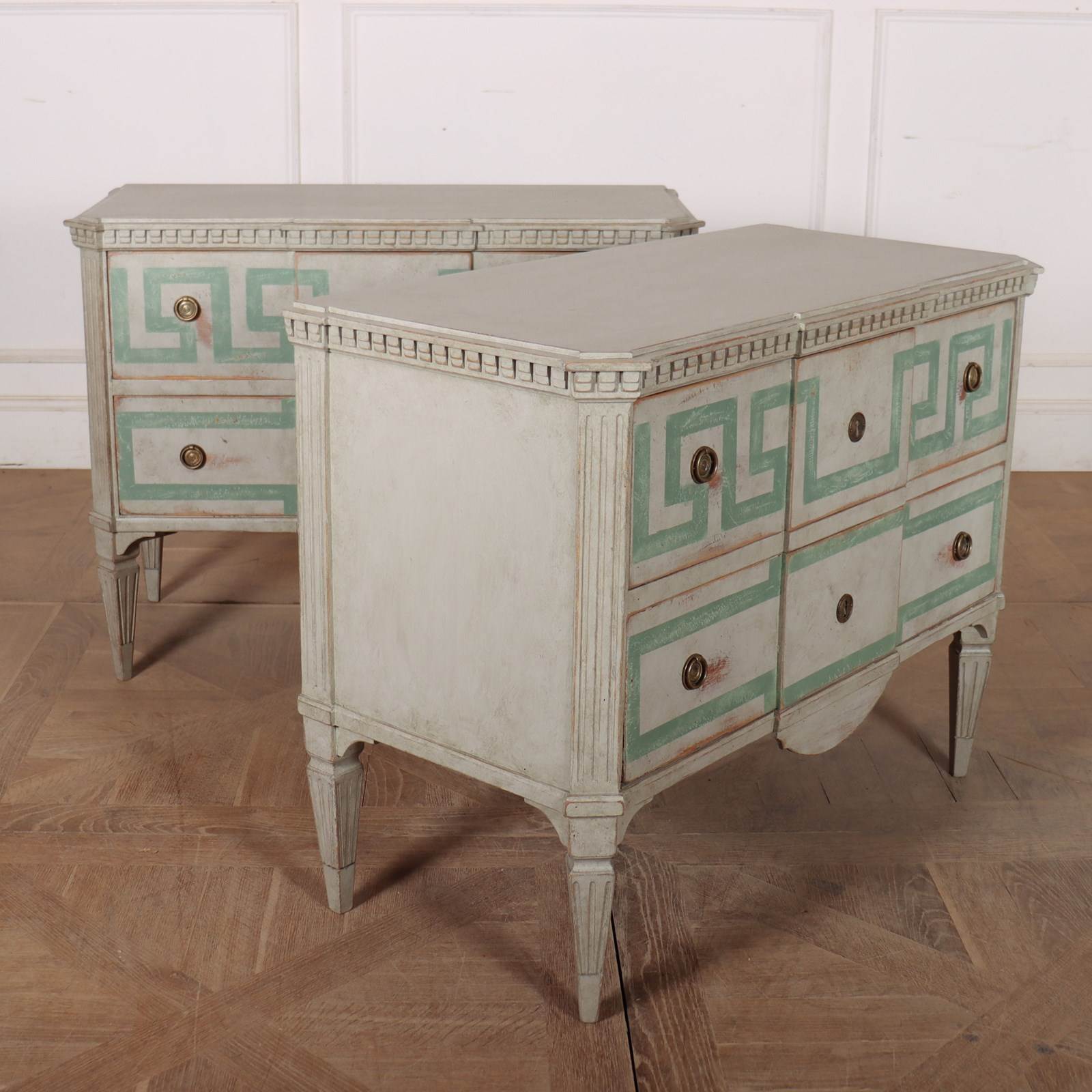 Pair of 19th Century Swedish 3 drawer commodes with Greek Key decoration. 1890