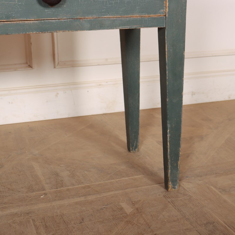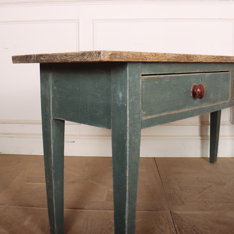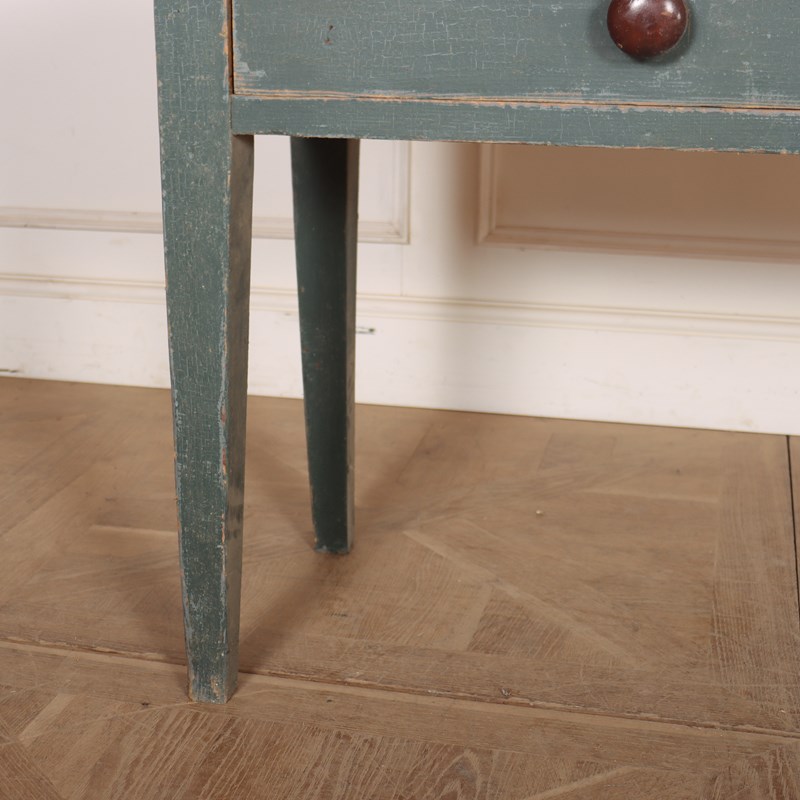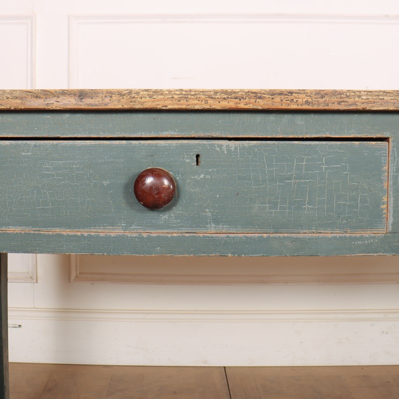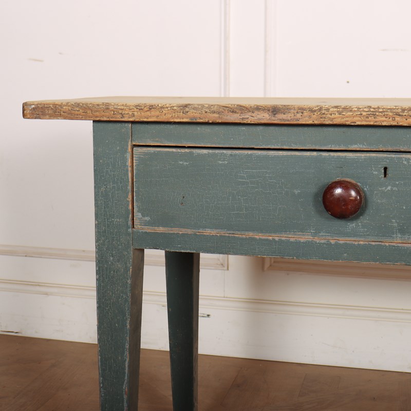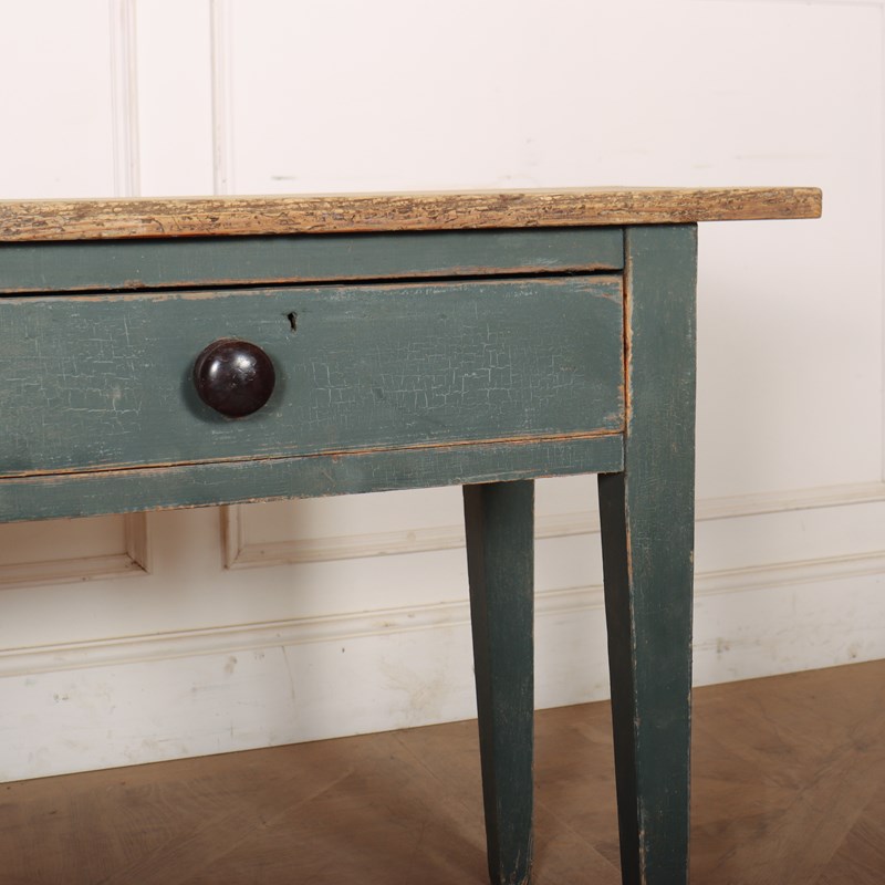 Early 19th century Scottish two drawer painted console table with a scrubbed pine top. 1860.